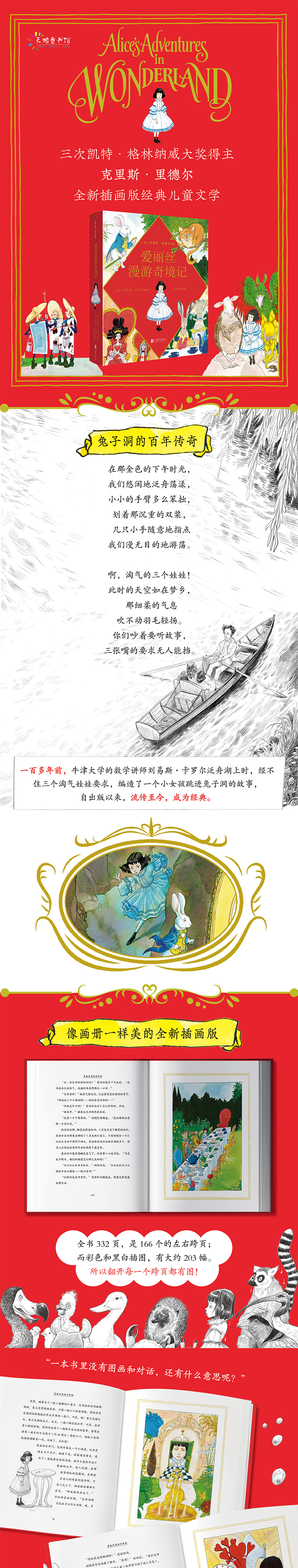 ★两书版本源自英国著名的麦克米伦出版社150周年纪念版。在1866和1872年,就是当时的麦克米伦首次出版了《爱丽丝漫游奇境记》和《爱丽丝镜中奇遇记》。