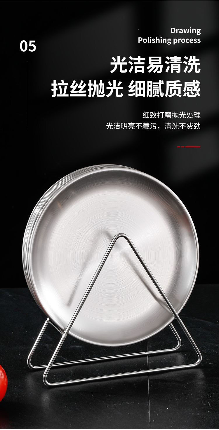 | 【品名】:不锈钢骨碟 【材质】:食品级不锈钢 【颜色】:钢本色 【尺寸】:不锈钢骨碟17*17cm / 不锈钢架子16*5.7*14 【规格】:6个不锈钢骨碟+1个架子 |