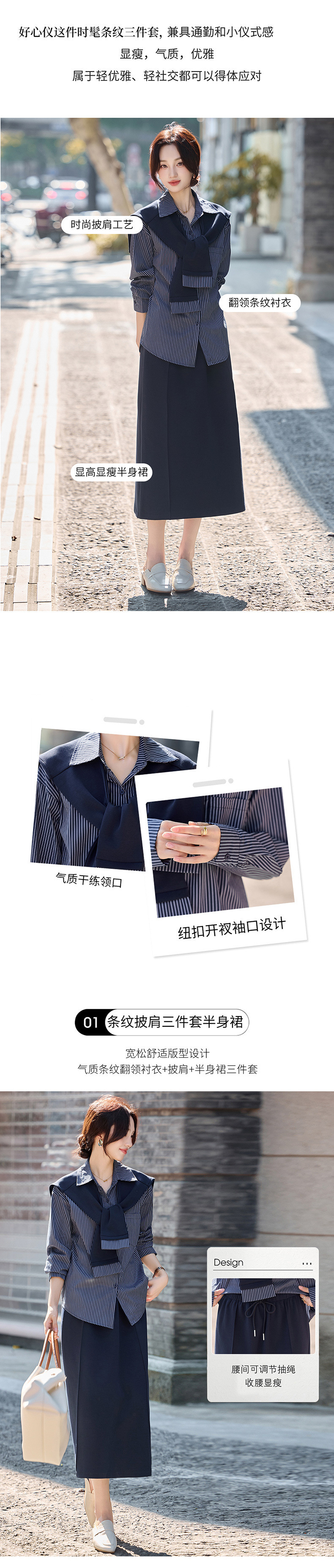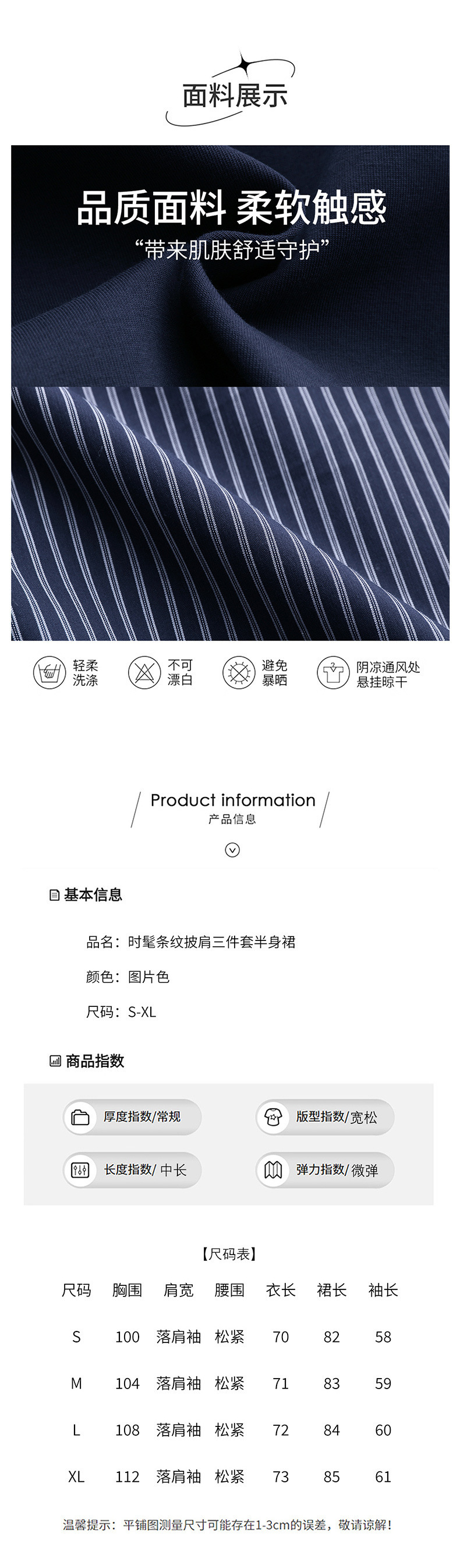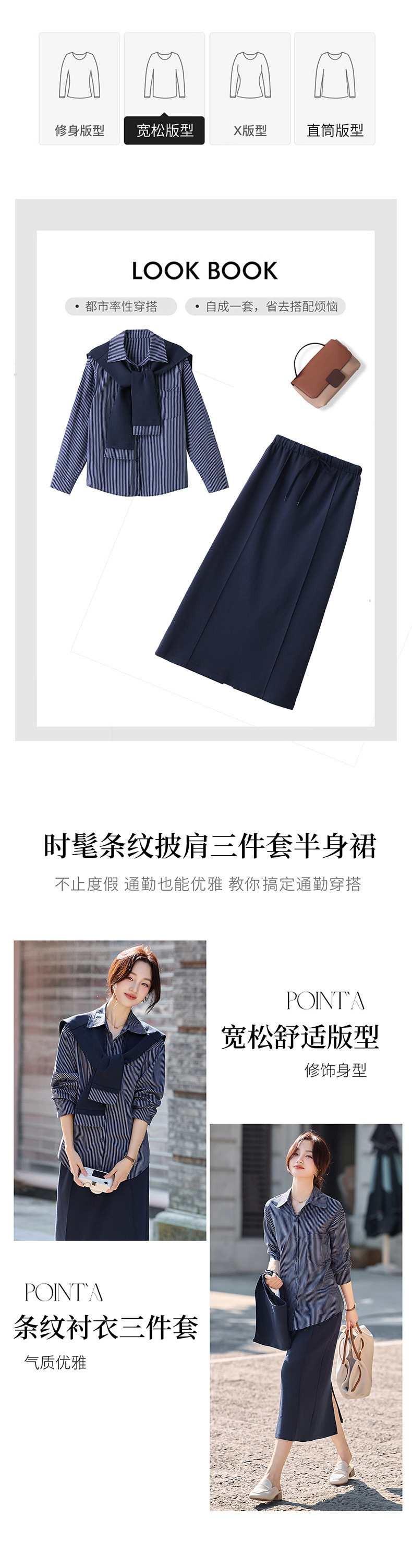 新款年宽松舒适秋季条纹披肩半身裙三件套LNS9768