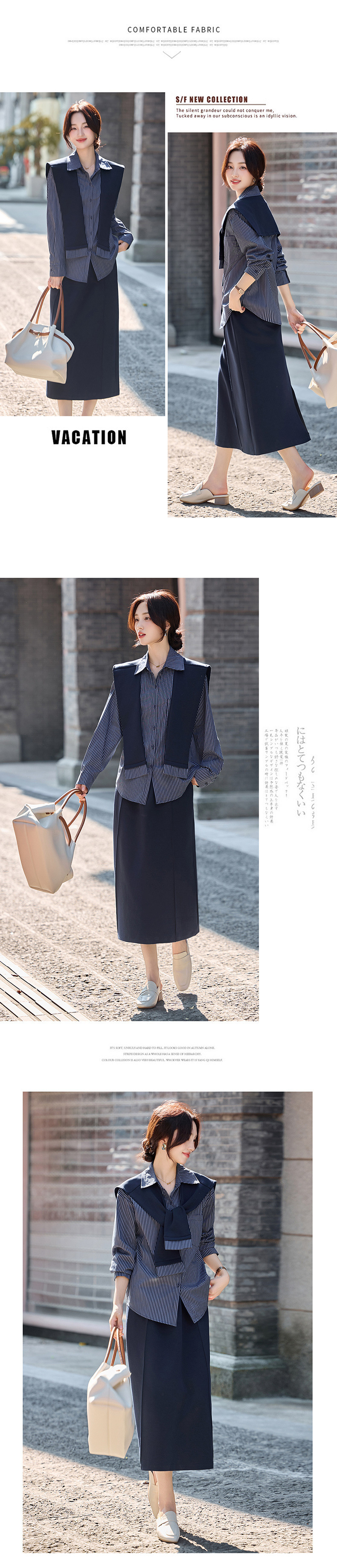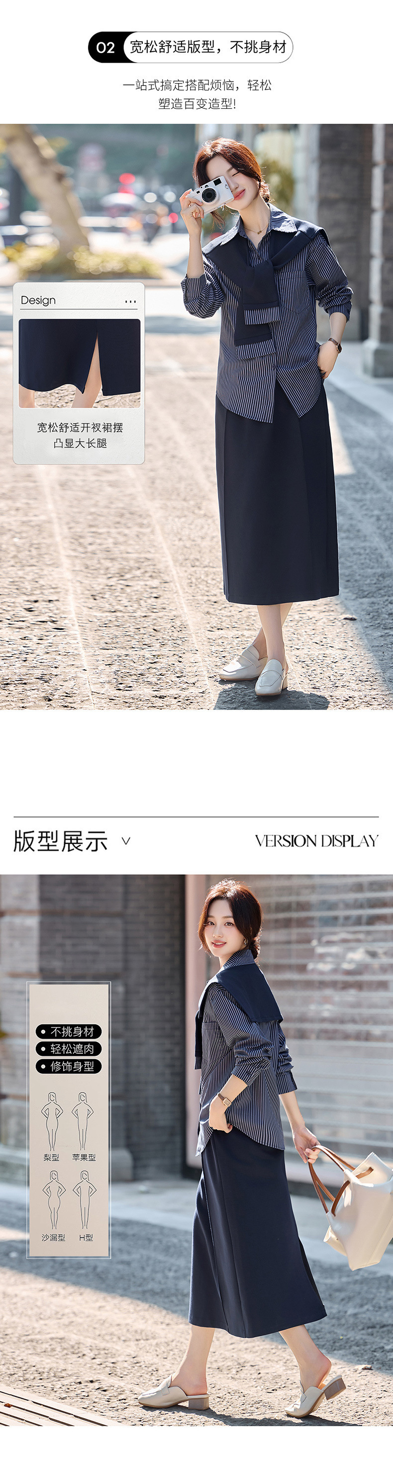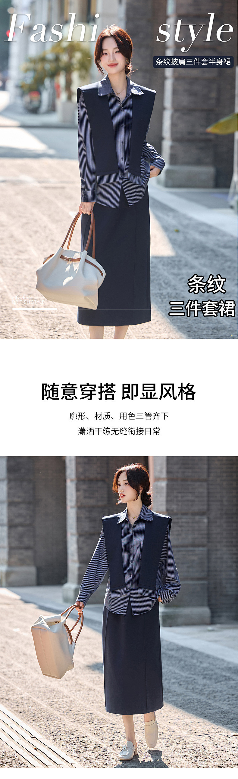 新款年宽松舒适秋季条纹披肩半身裙三件套LNS9768