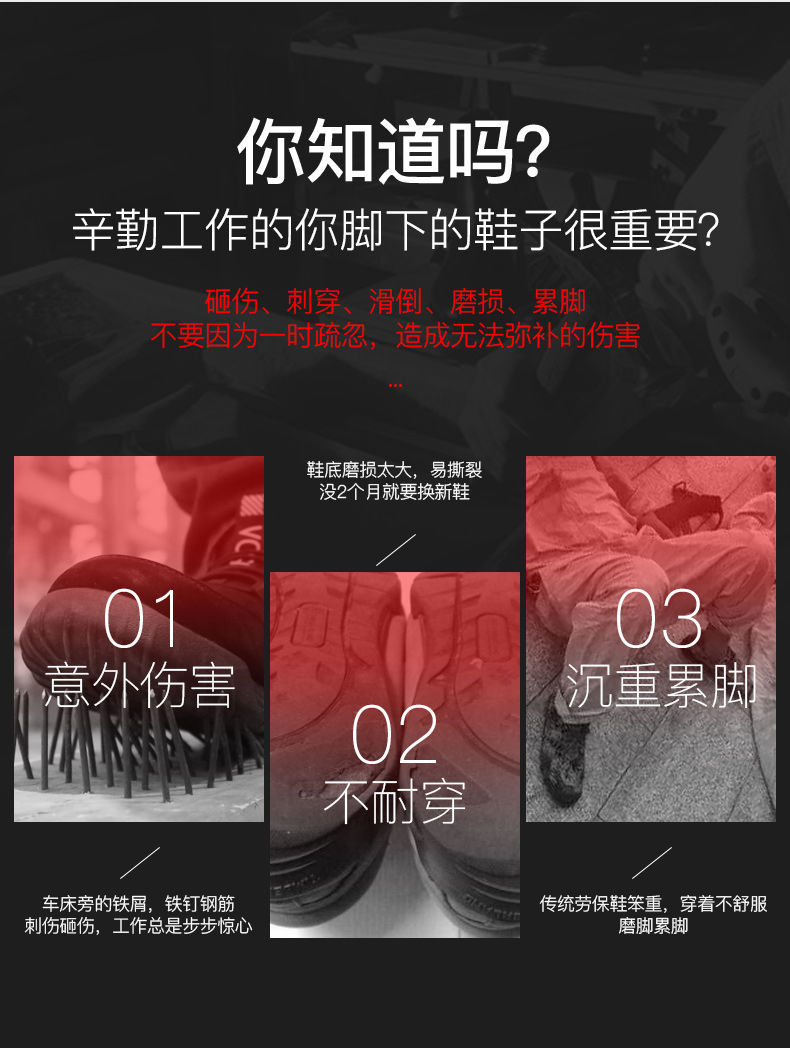 劳保鞋钢包头防砸防刺穿透气实心底耐磨防臭工作鞋