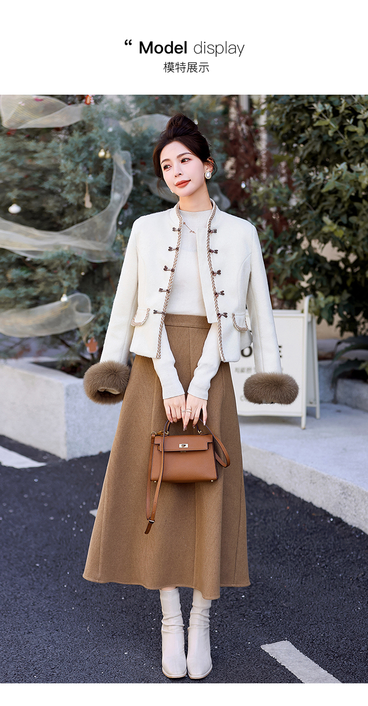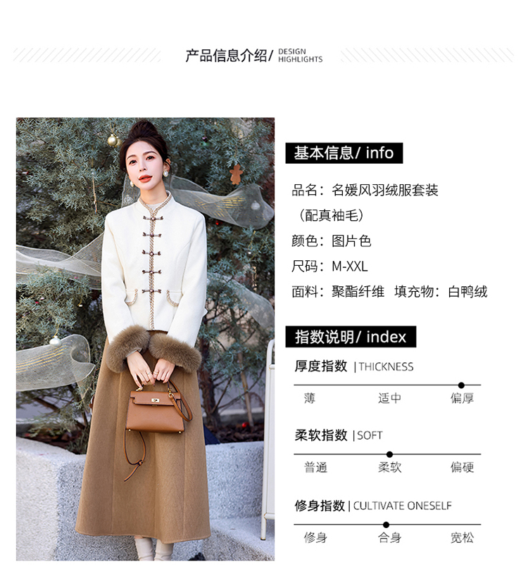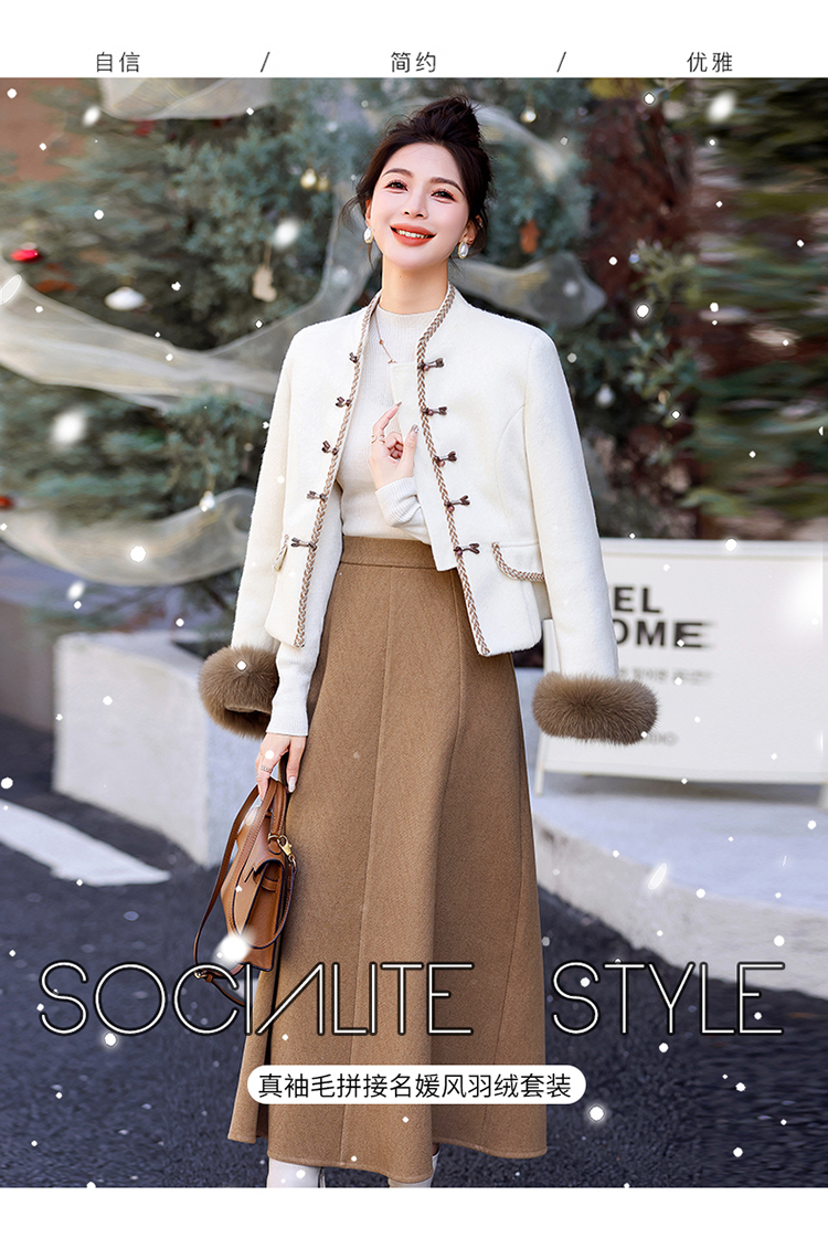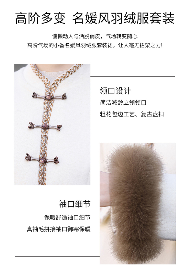 冬季新款,袖毛真毛可脱卸小香白鸭绒羽绒气质套装HR-LMJY8828