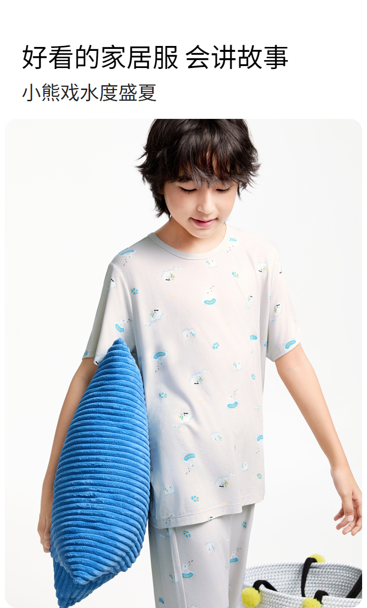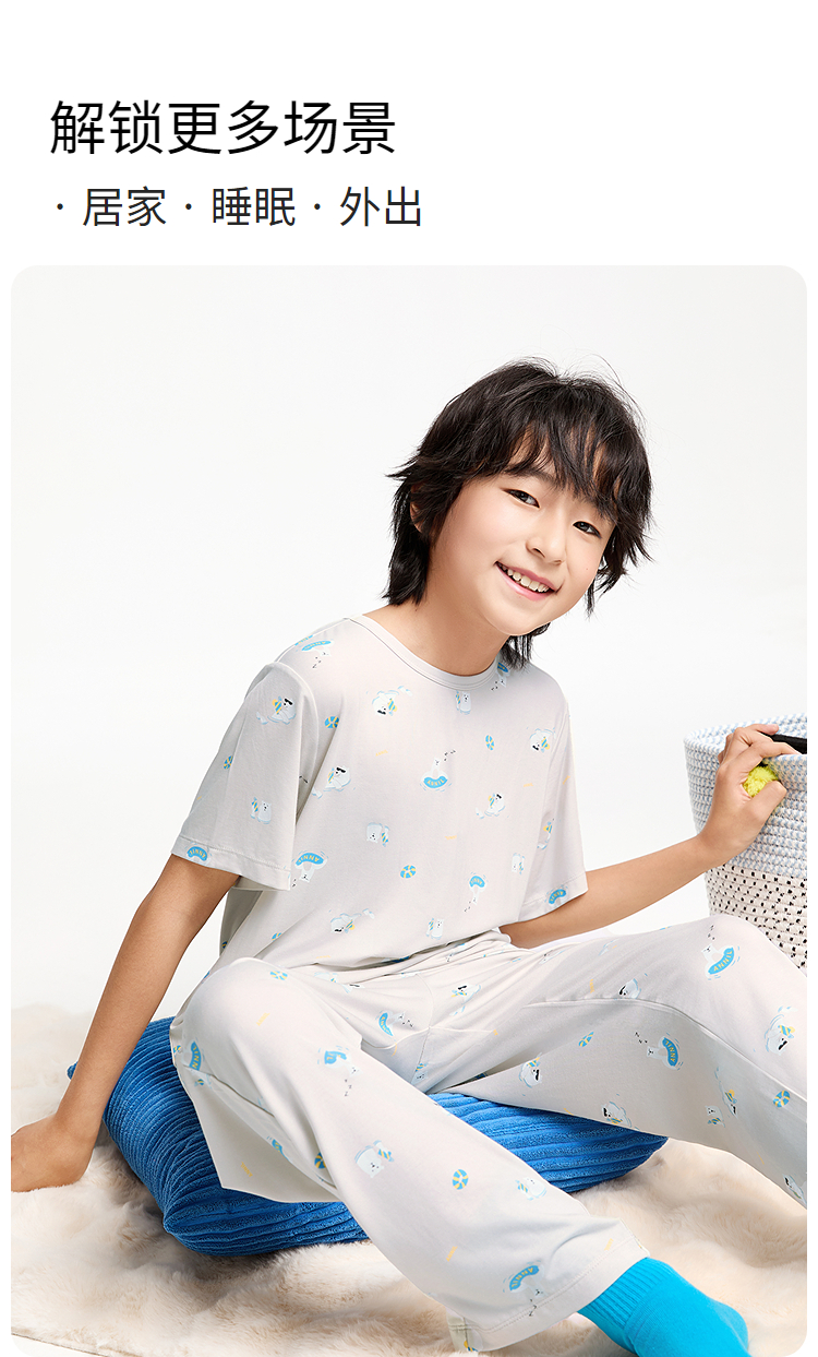 男童短袖莫代尔家居服套装夏季新款安奈儿童装JB521055