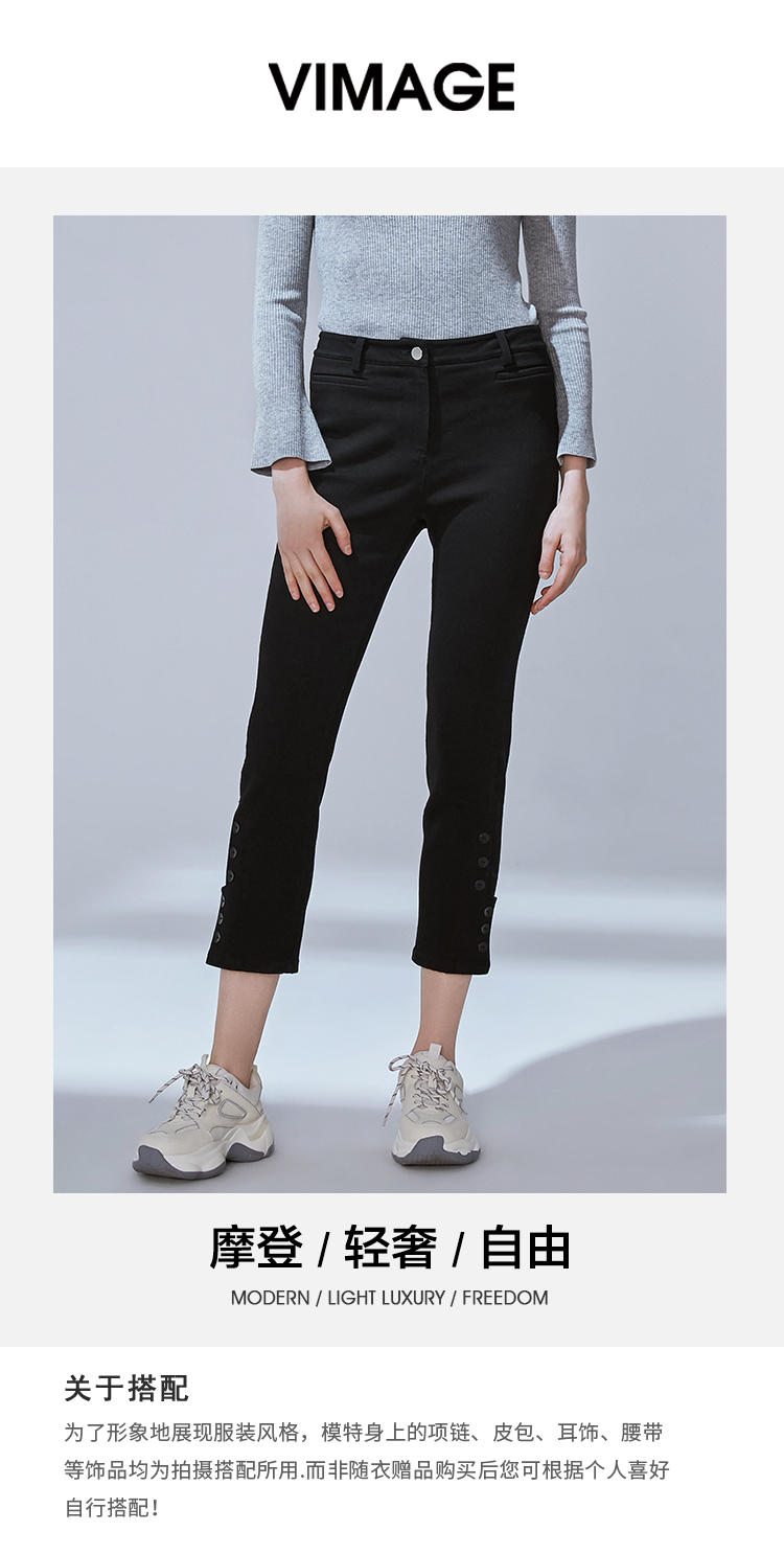 VIMAGE纬漫纪夏季新款高腰阔腿裤通勤宽松百搭纯色裤V1905526