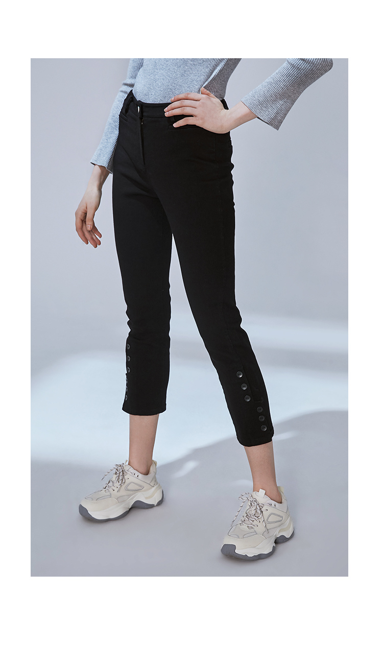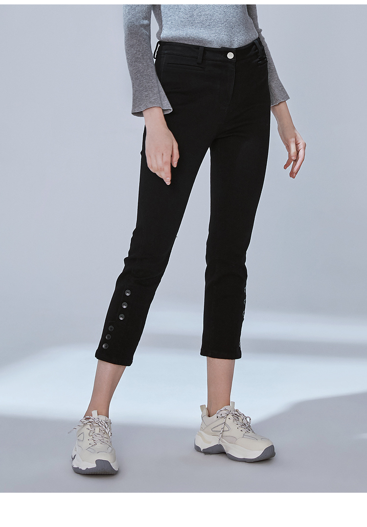 EITIE爱特爱春季新款白色通勤时尚显瘦百搭高腰休闲阔腿裤女A2205923