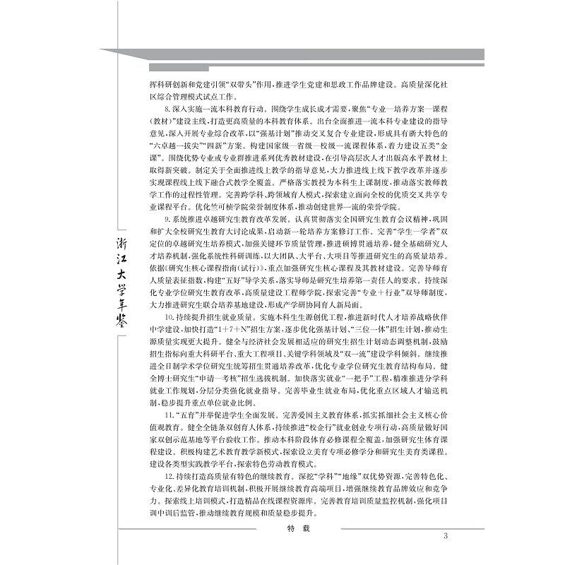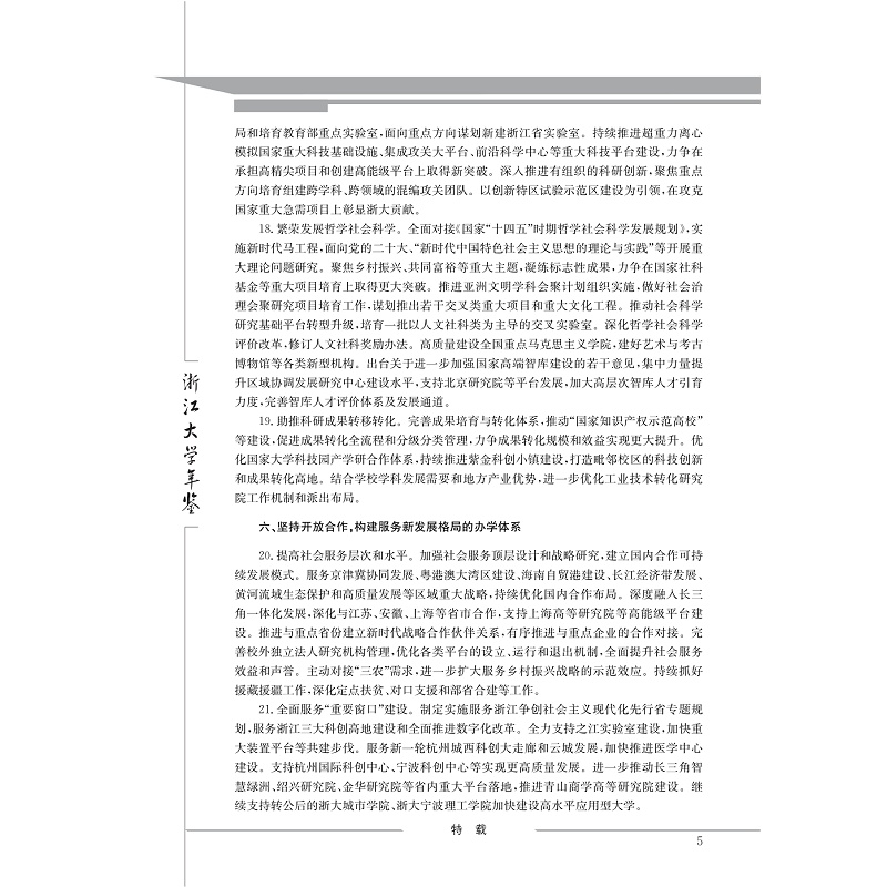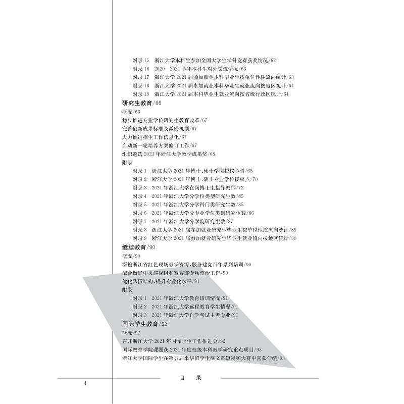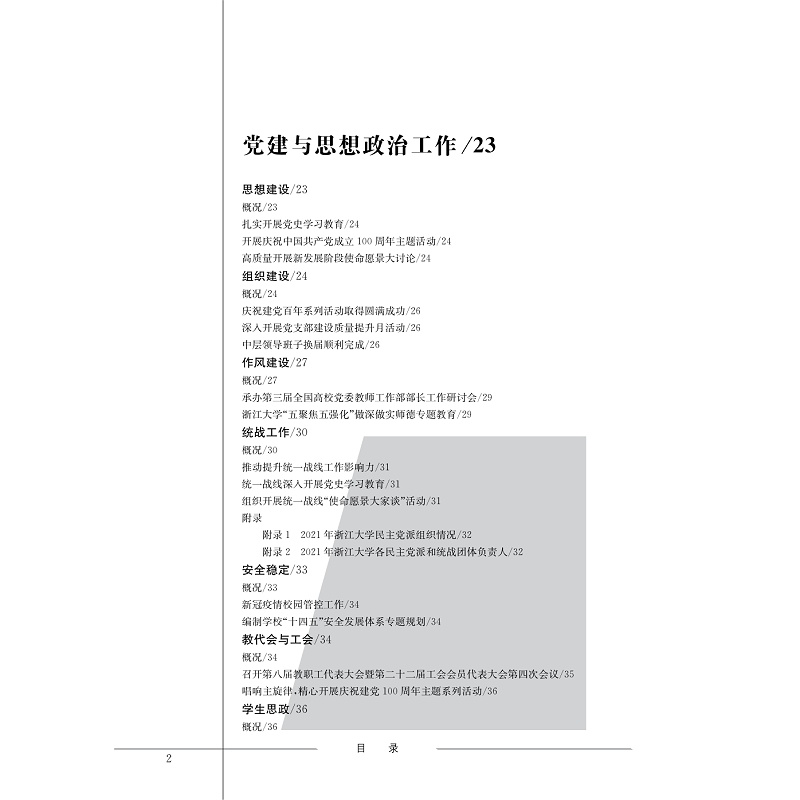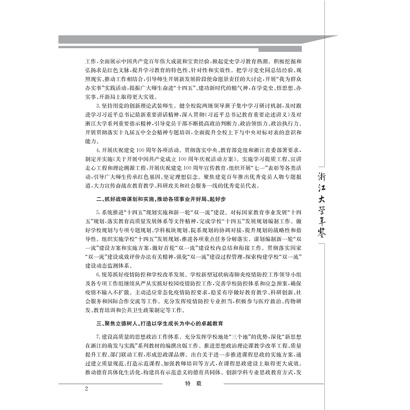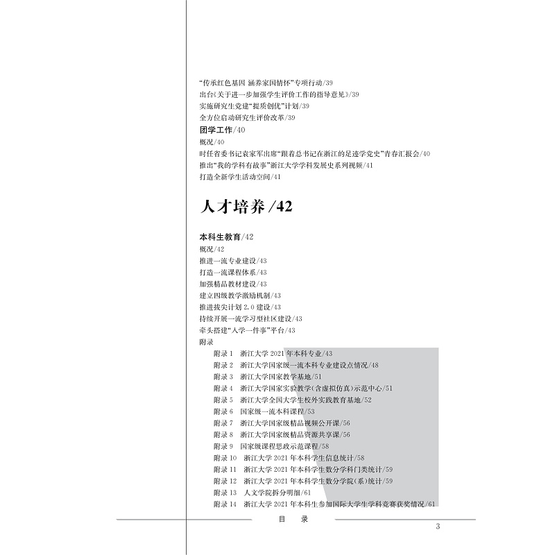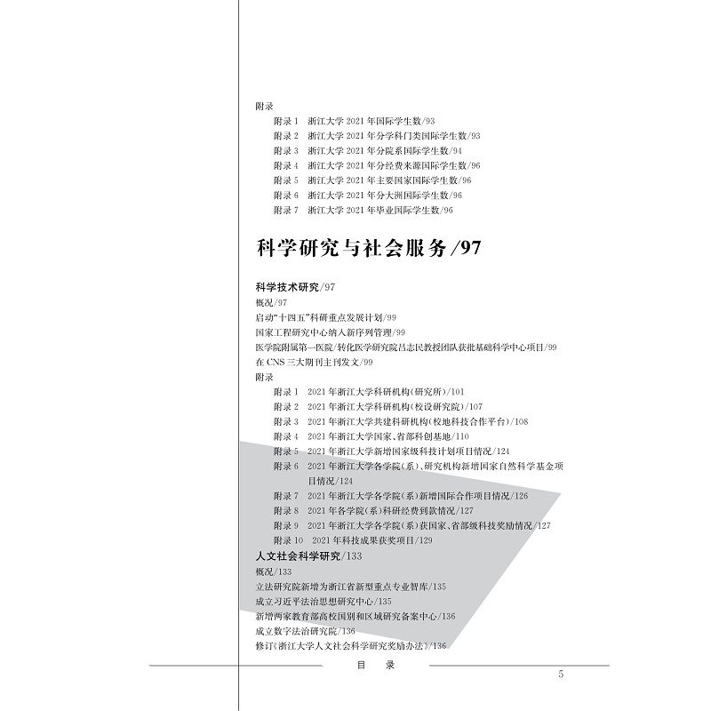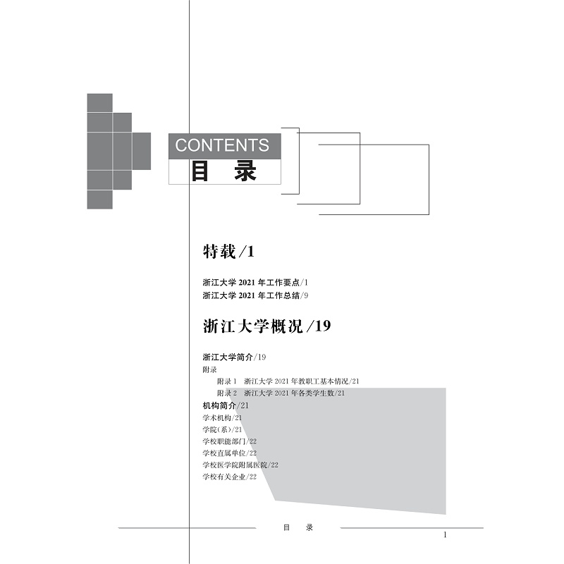 书稿全面系统地反映2021年浙江大学事业发展及重大活动的基本情况,包括了学校教学、科研、社会服务、学院基本情况、人才培养、党的建设、表彰和奖励等方面的内容,为浙江大学的教职员工提供学校的基本文献、基本数据、科研成果和最新工作经验,是兄弟院校和社会各界了解浙江大学的窗口。浙江大学年鉴每年一期。全书基本内容为2021年的重大事件、重要活动及各个领域的新进展、新成果、新信息。依实际情况,部分内容时间上可有前后延伸。
