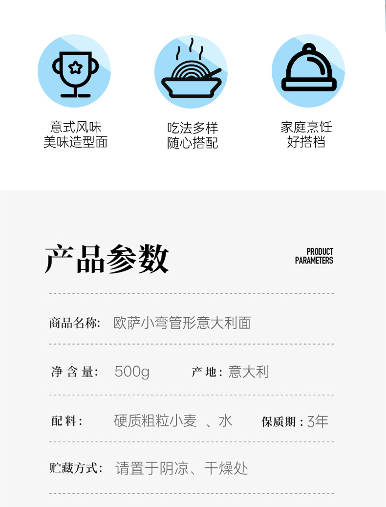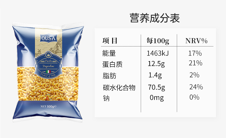 欧萨 意大利进口 小弯管形意大利面 500ml
