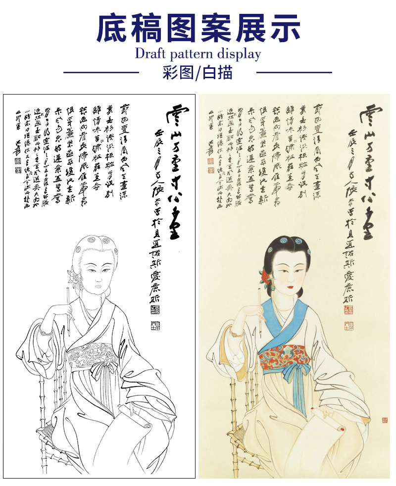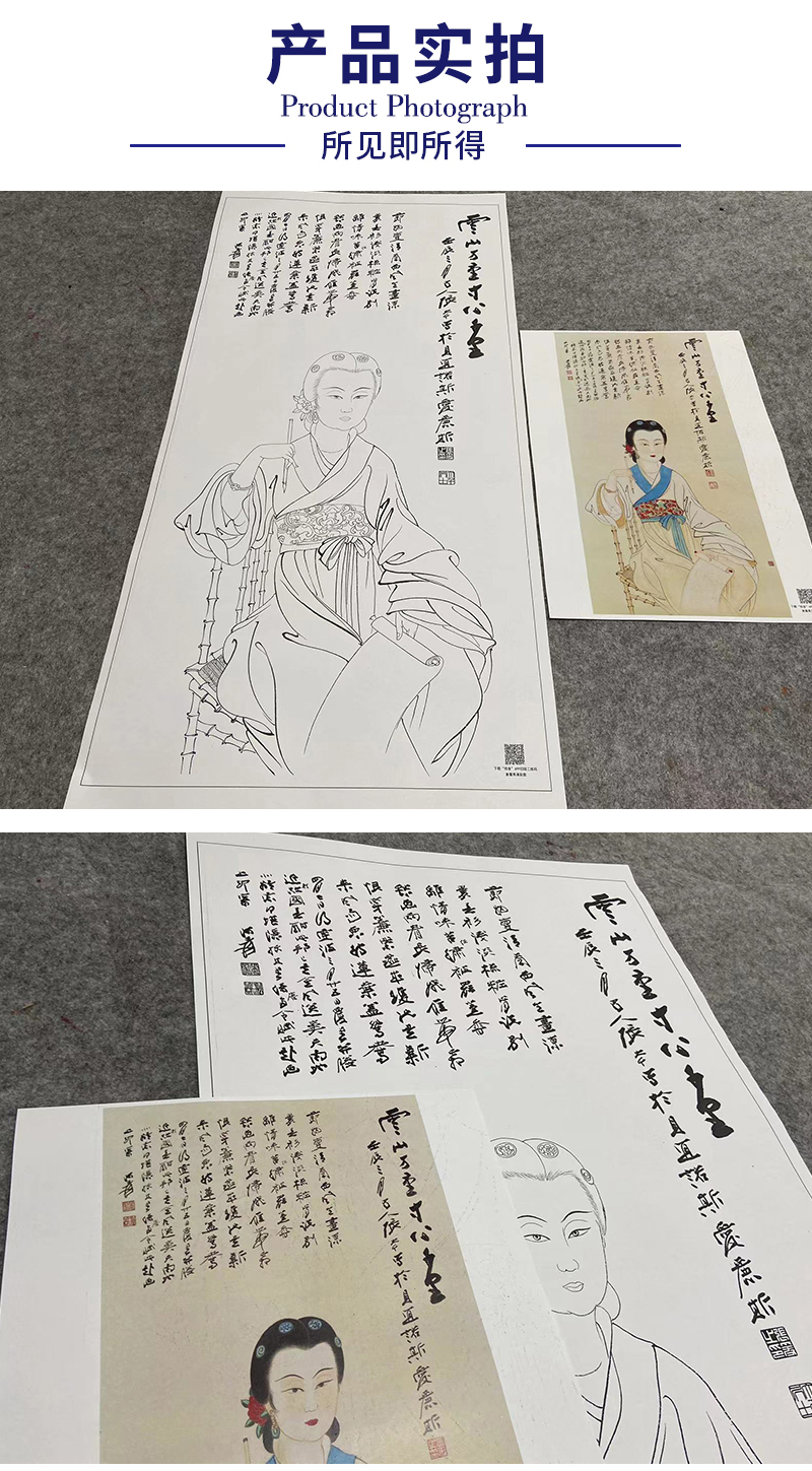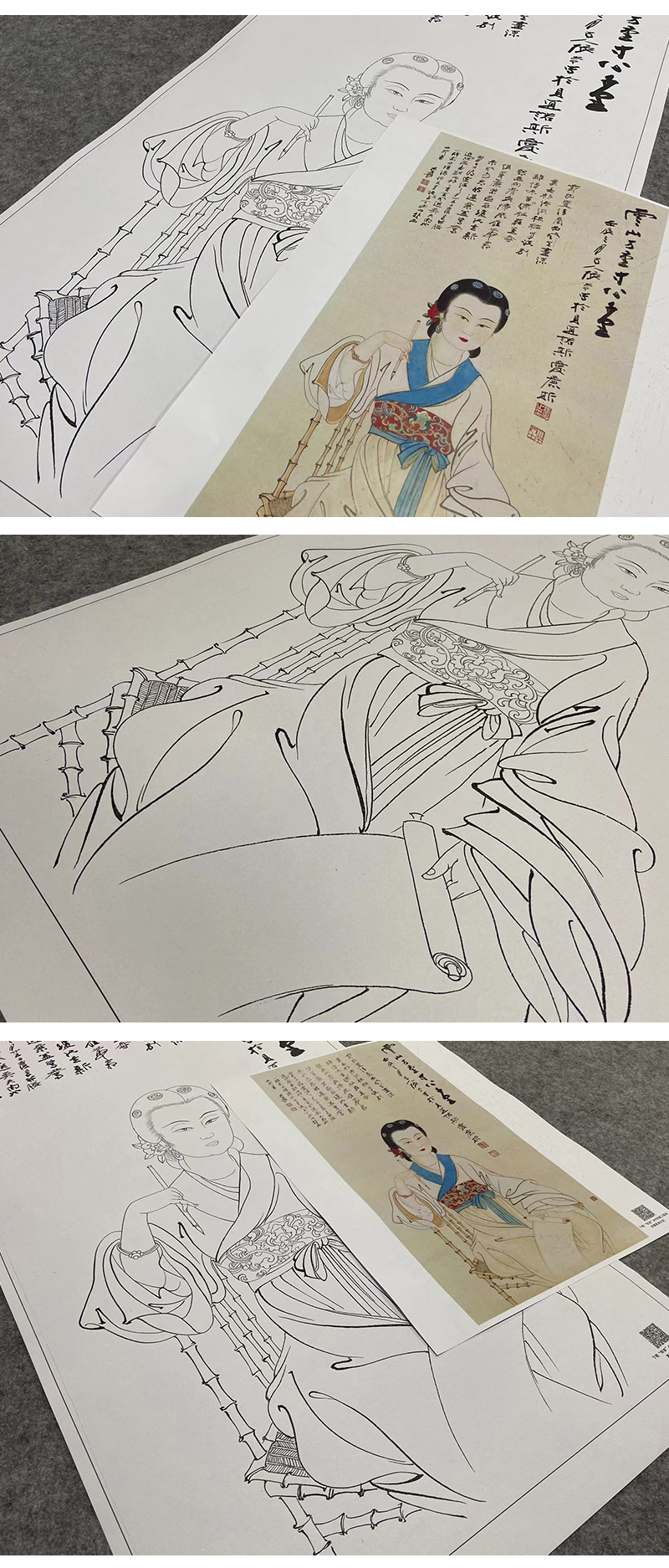 张大千竖幅工笔传统仕女人物白描底稿-QD47