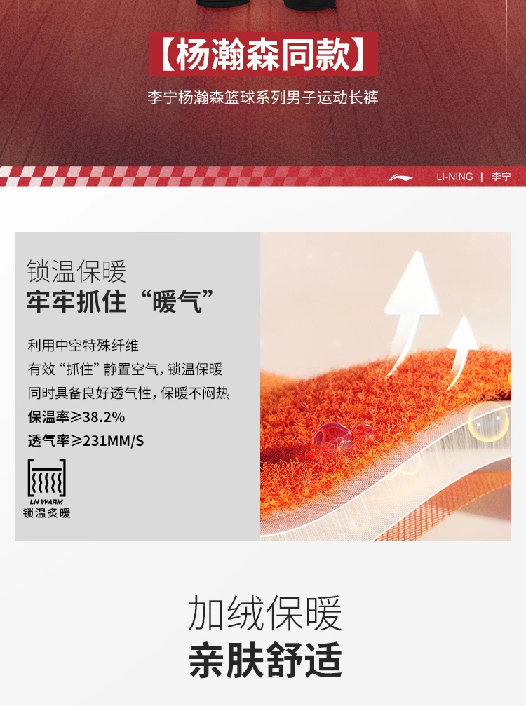 【杨瀚森同款】李宁杨瀚森篮球系列男子直筒加绒保暖宽松运动长裤AYKVC33