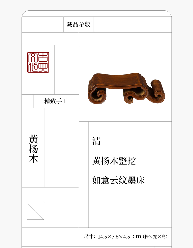 清 黄杨木整挖如意云纹墨床
