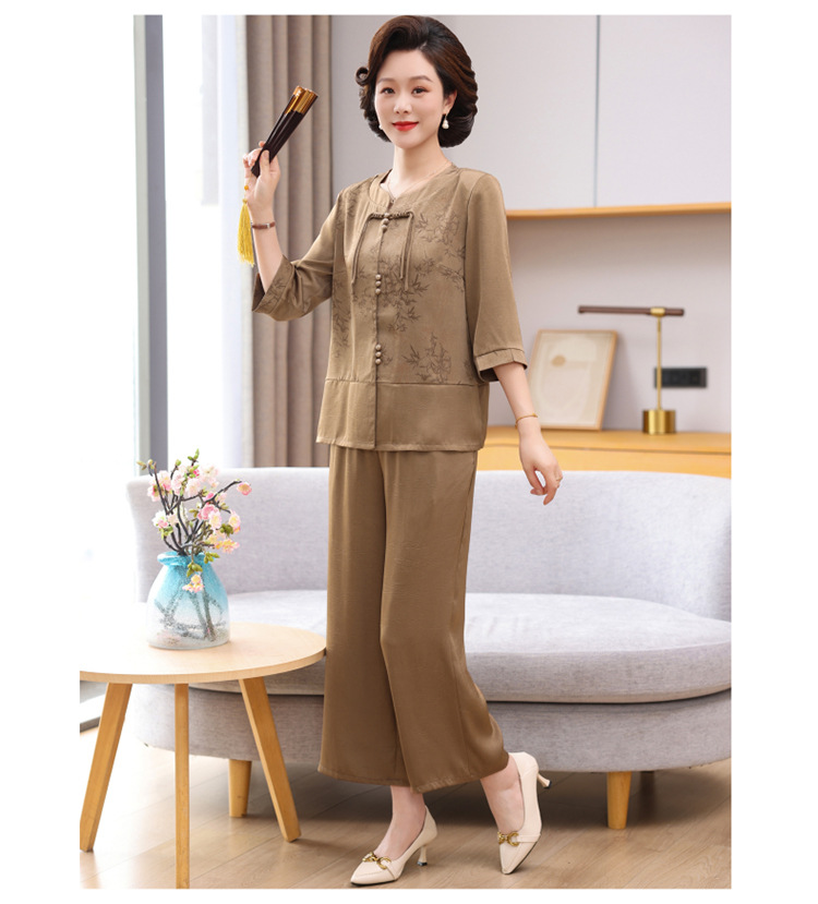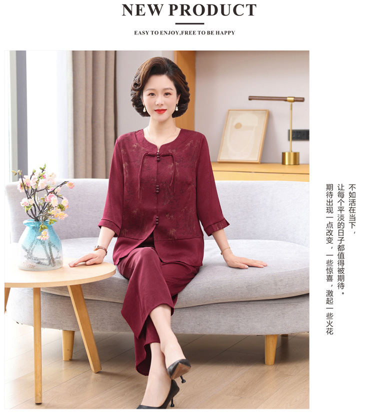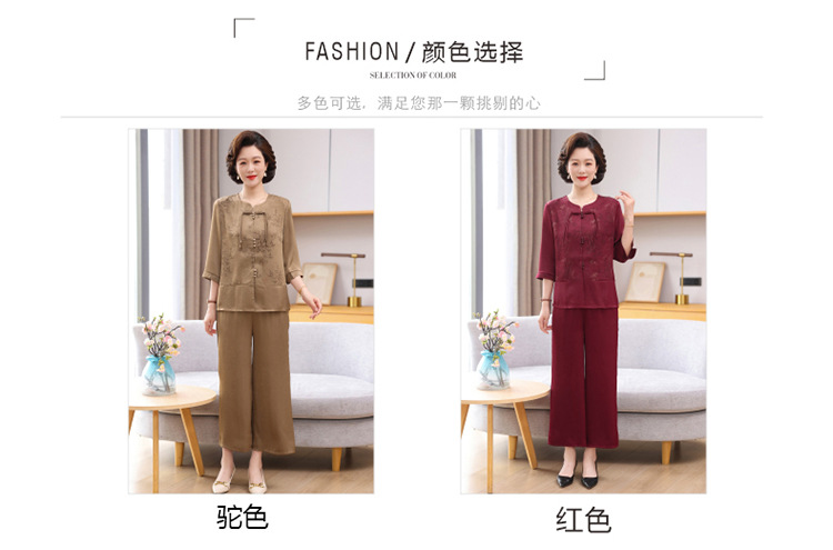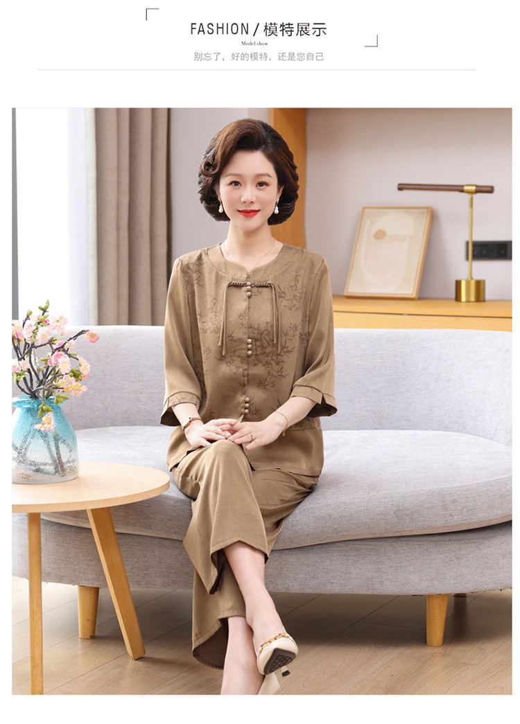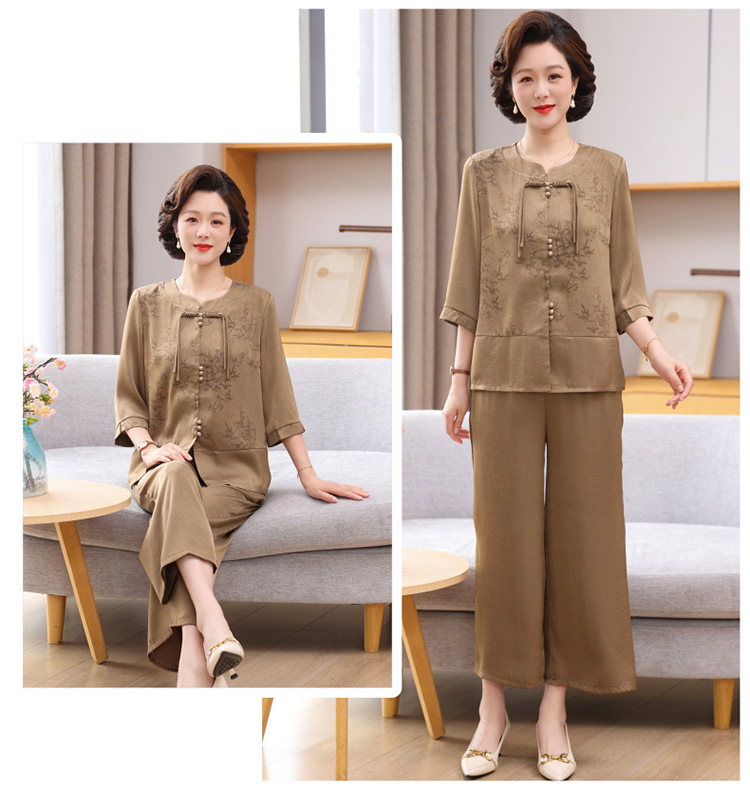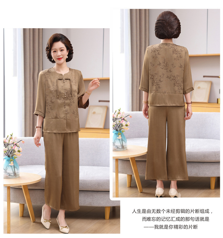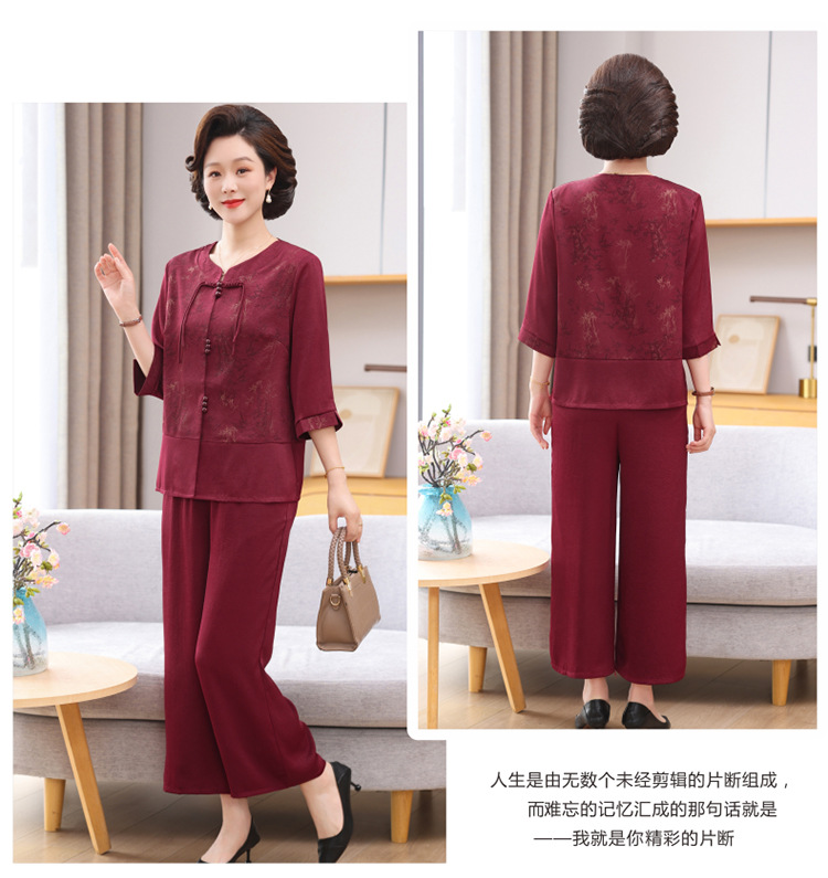 W503-D155-86-138岁60妈妈夏装套装国风短袖中老年女奶奶装宽松衬衫冰丝上衣裤子