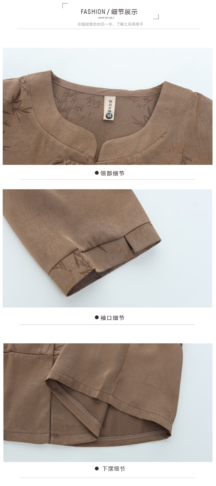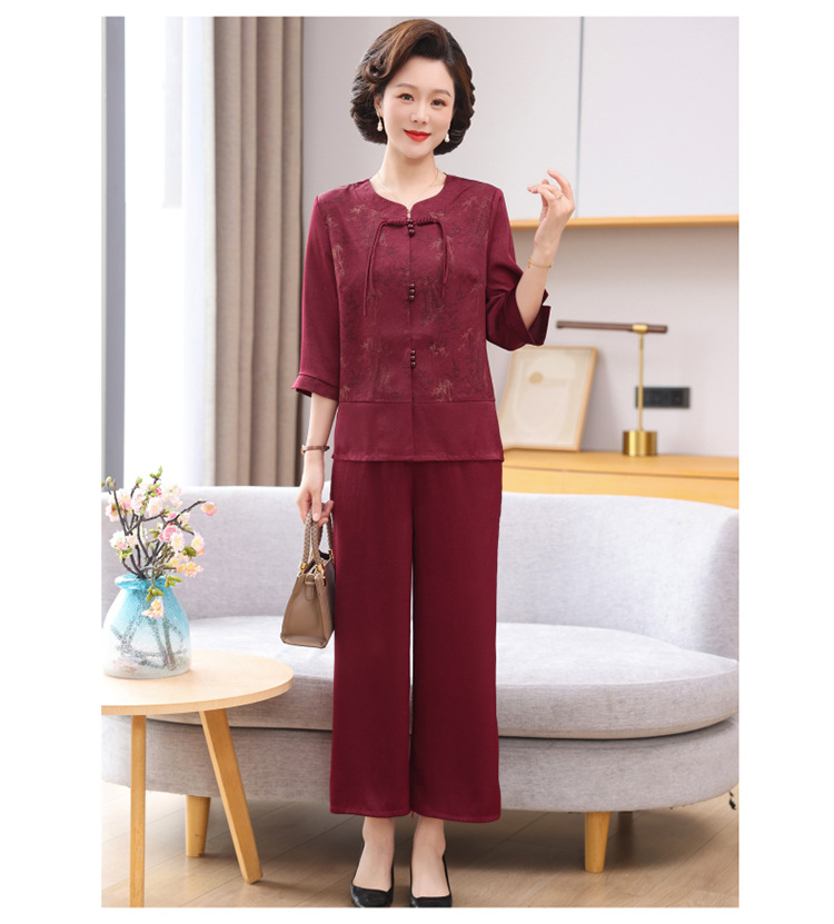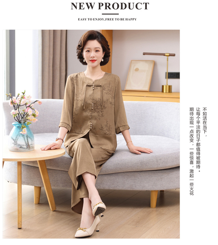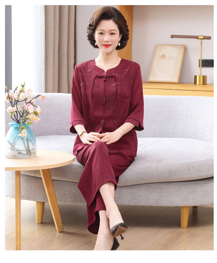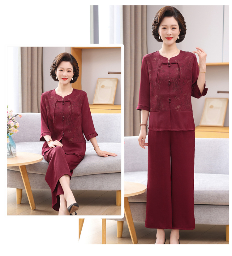 W503-D155-86-138岁60妈妈夏装套装国风短袖中老年女奶奶装宽松衬衫冰丝上衣裤子