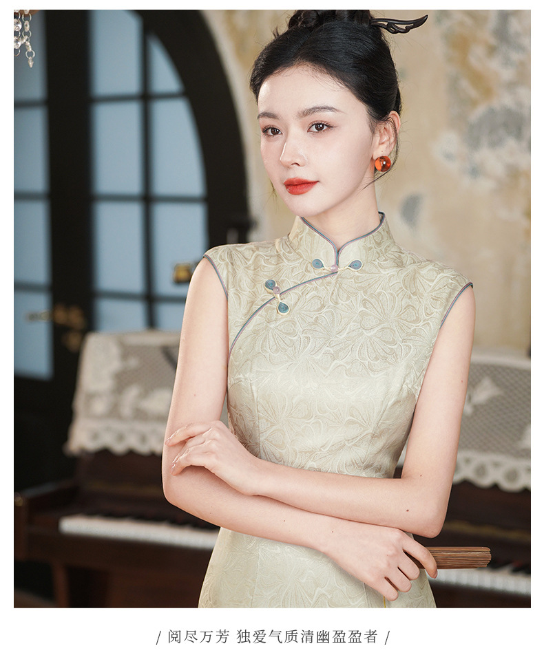 TZRY-8689爆款真丝桑蚕丝提花无袖旗袍高端春夏秋季礼服日常气质优雅旗袍裙