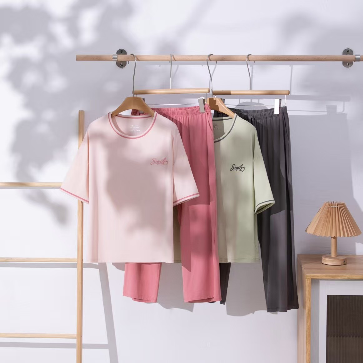 【品名】LS竹纤维女士圆领胸垫款分体家居套26206