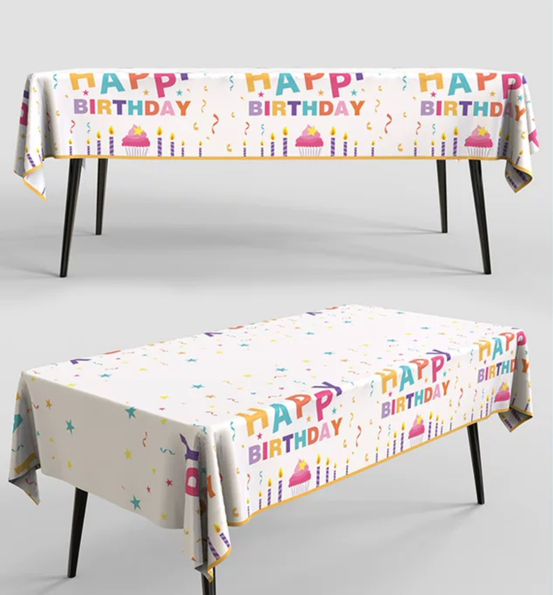 材质:PE塑料膜。用于生日派对聚会桌面装扮。