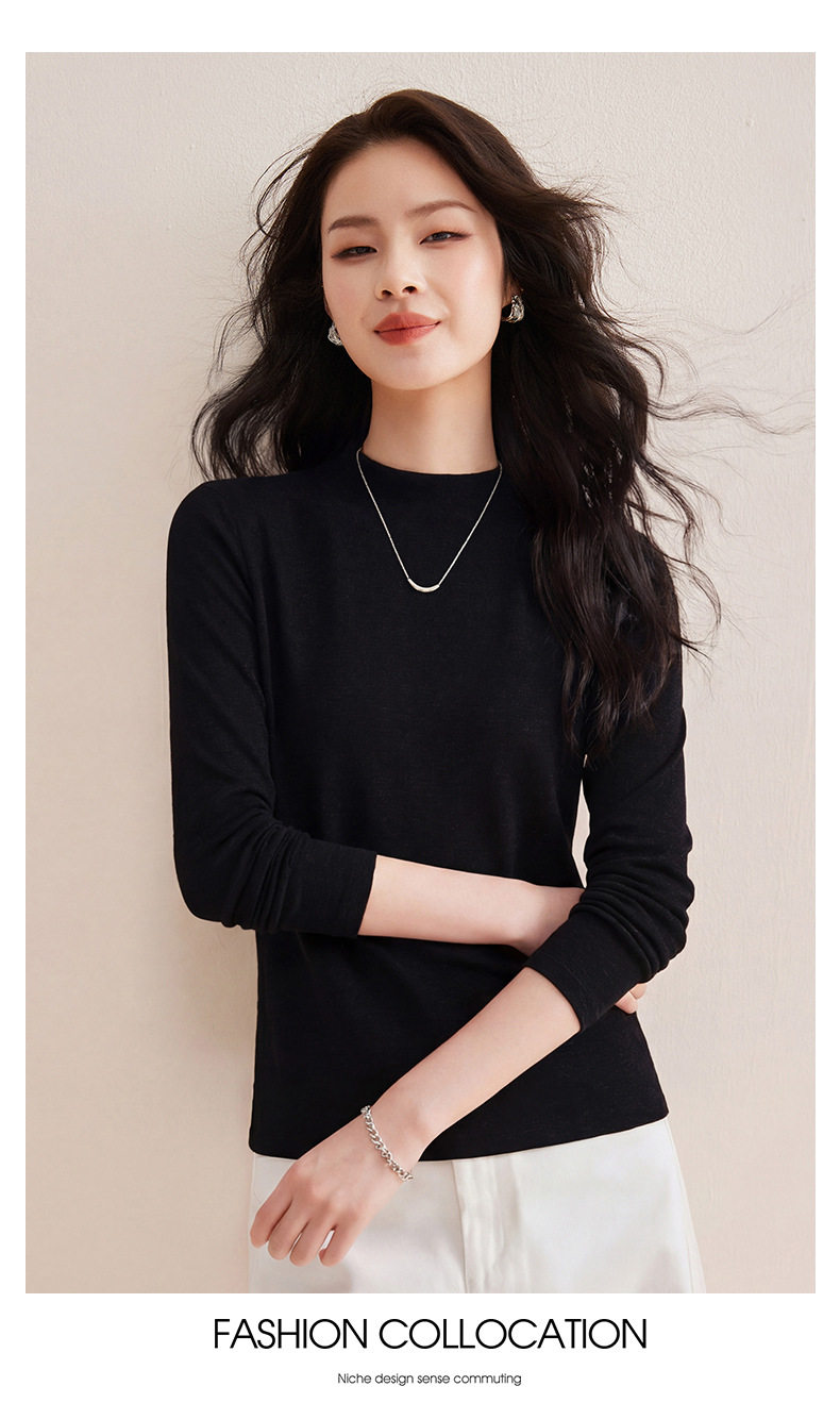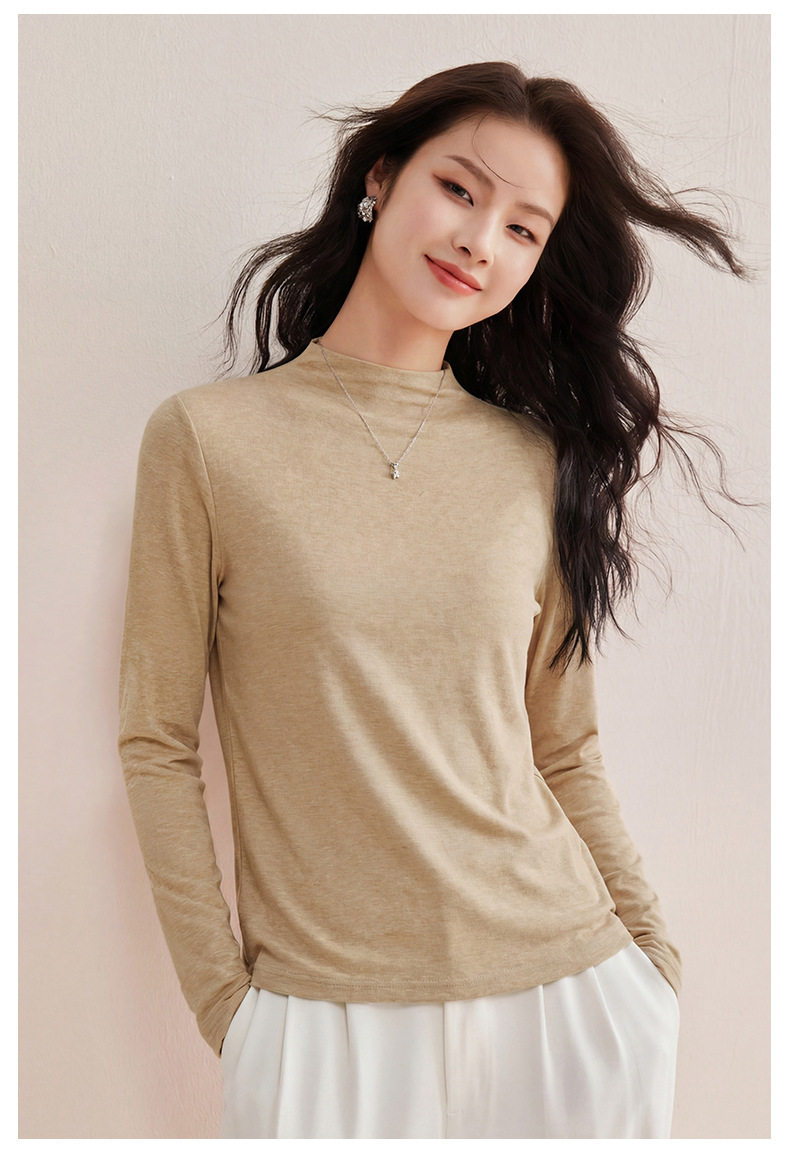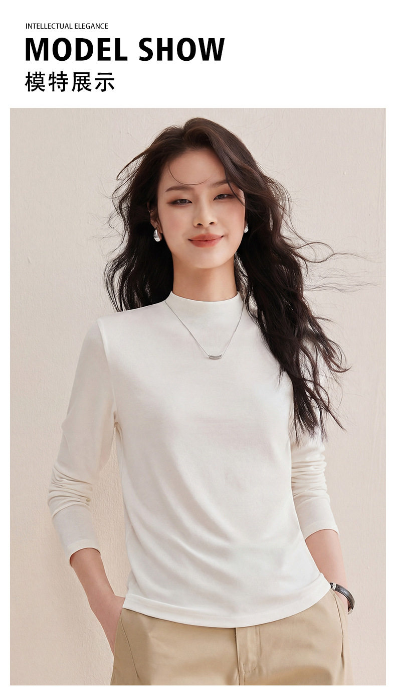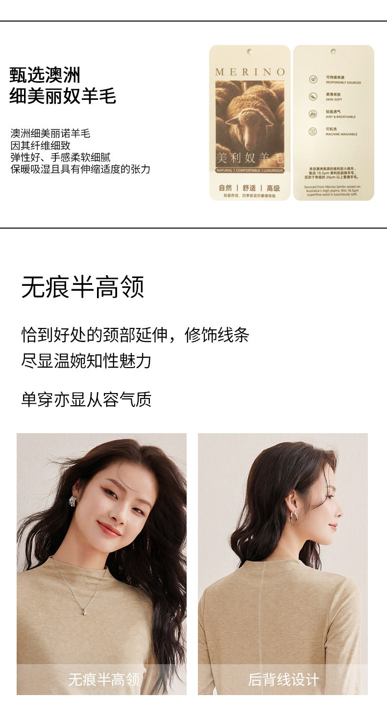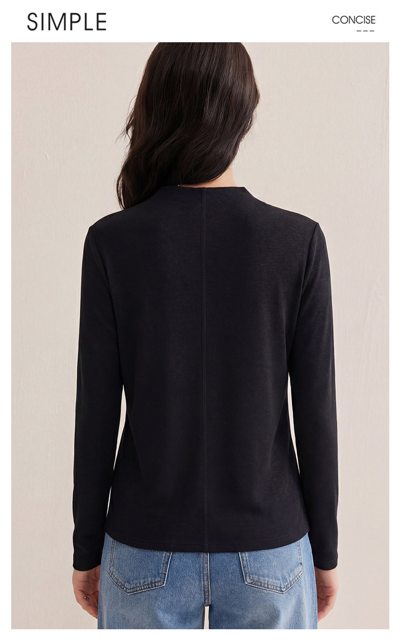 「自j」全新升级【铂金会员119/天猫159/差价40】(35708)洛诗琳后中线设计显瘦长袖T恤2025莱赛尔天丝羊毛百搭打底衫