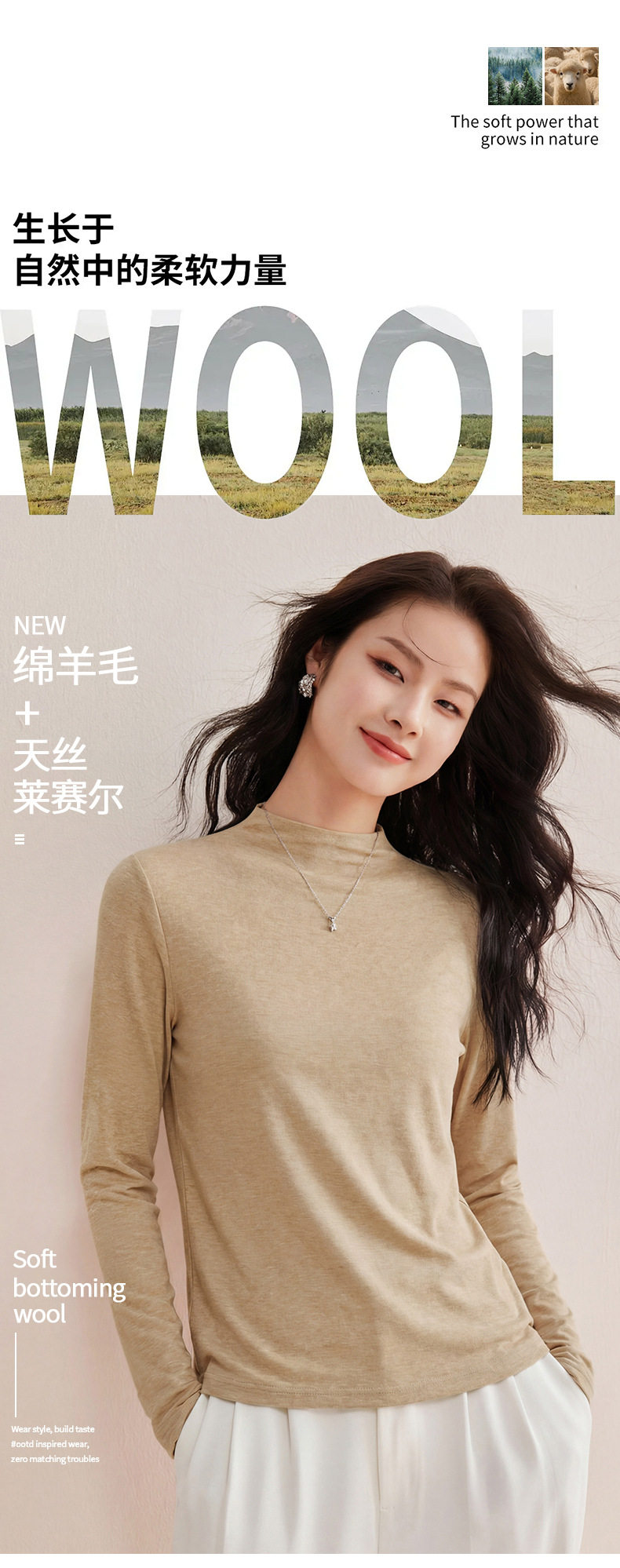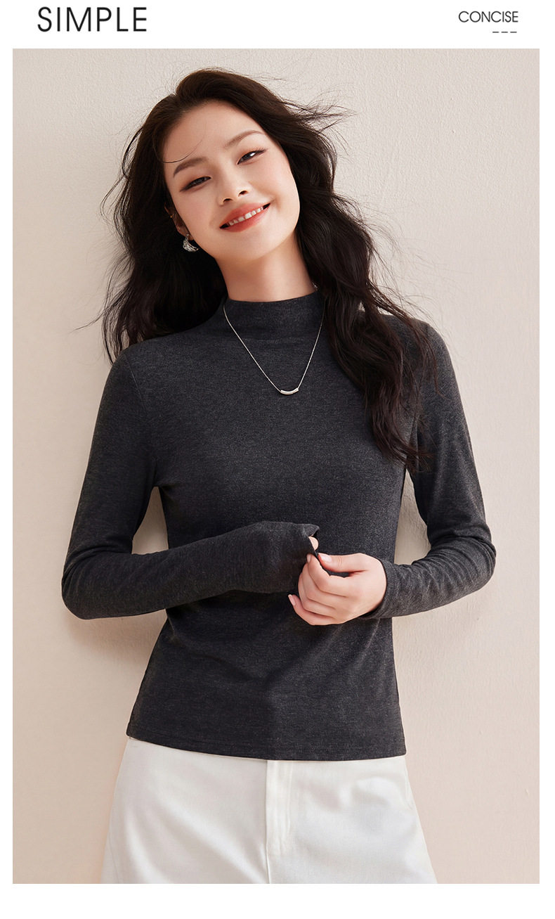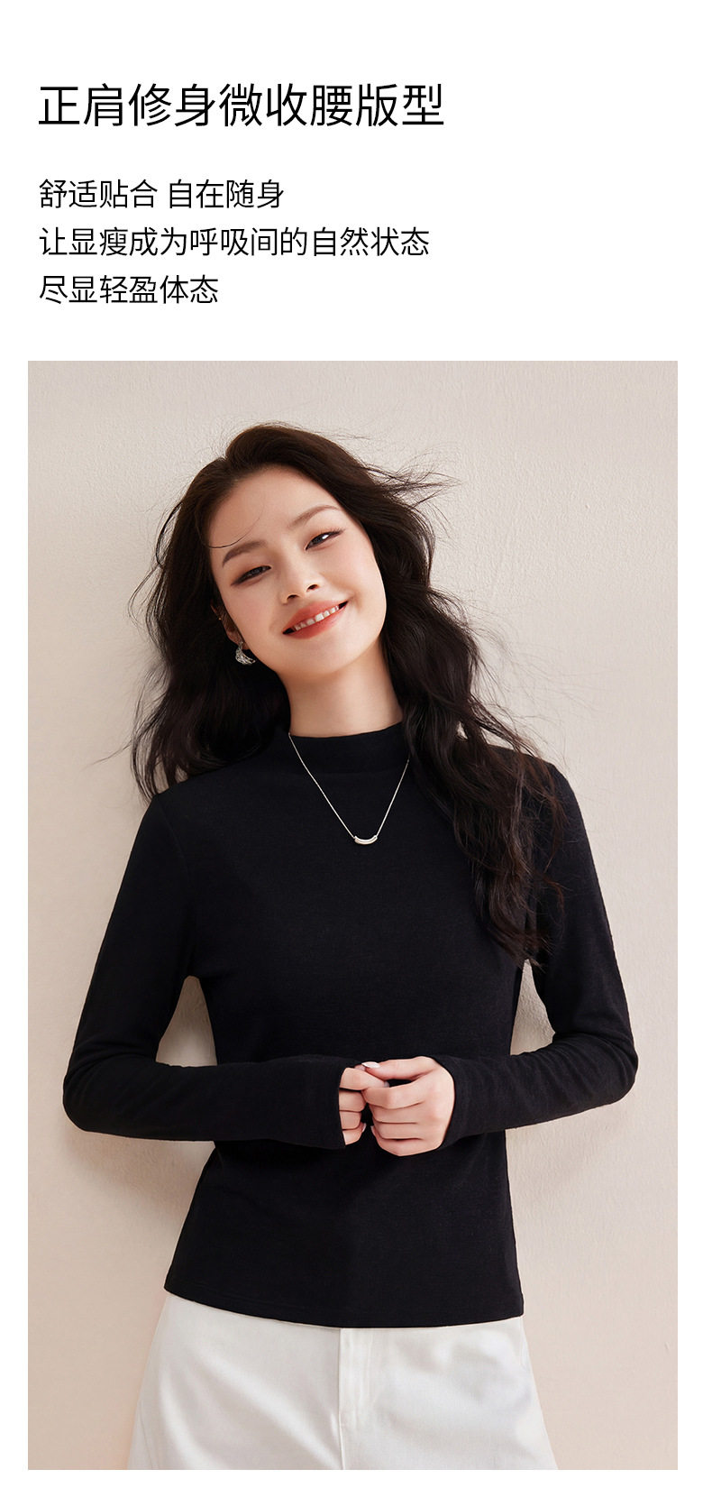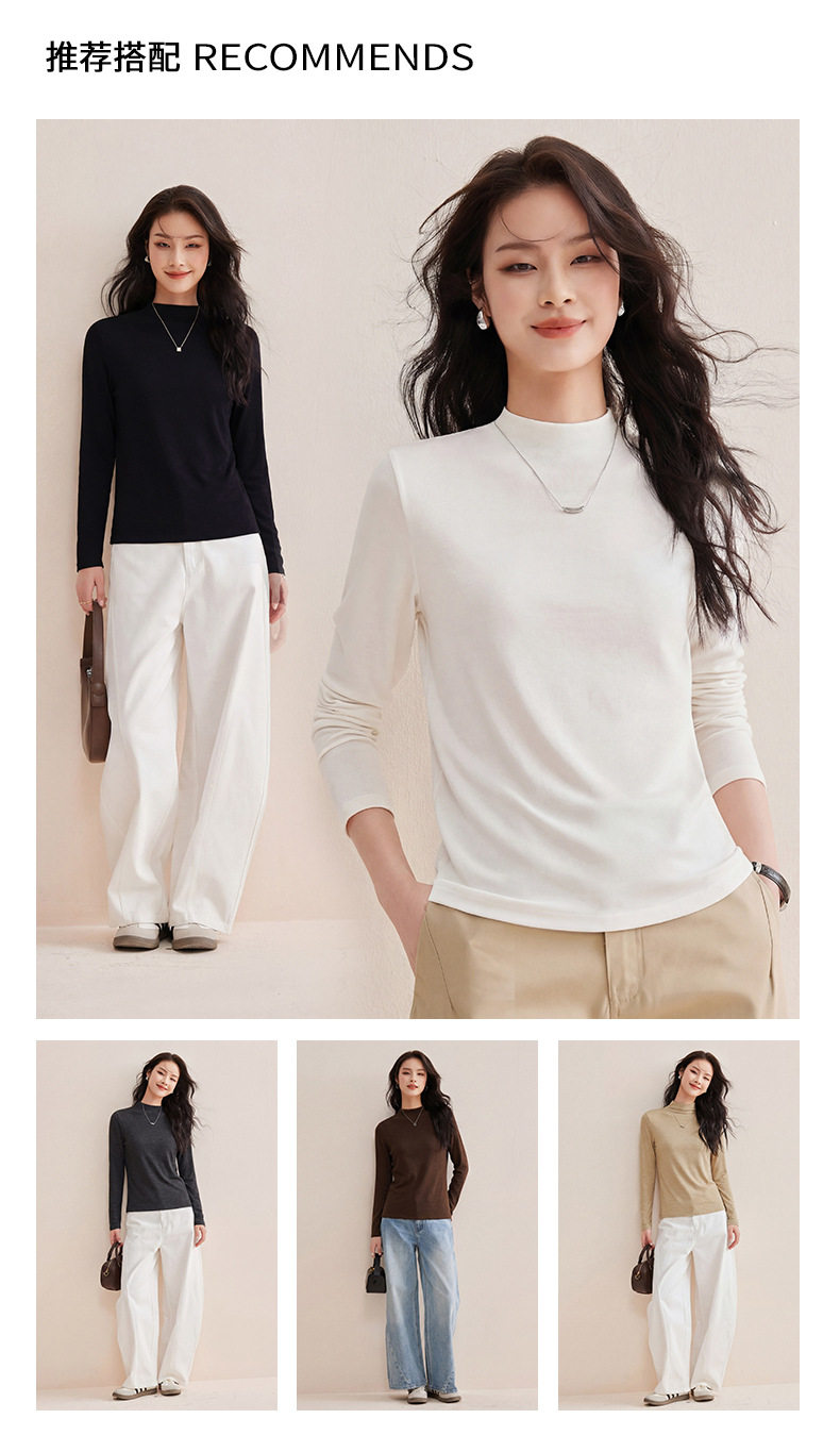 「自j」全新升级【铂金会员119/天猫159/差价40】(35708)洛诗琳后中线设计显瘦长袖T恤2025莱赛尔天丝羊毛百搭打底衫