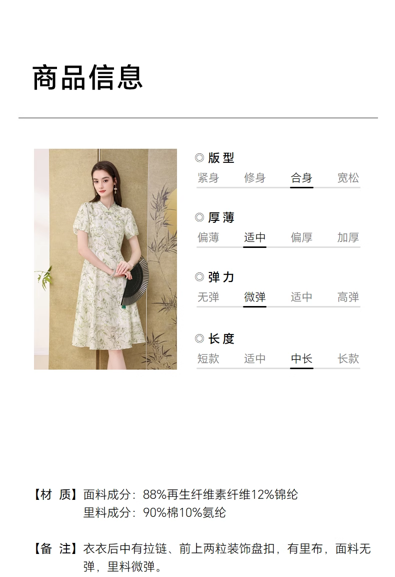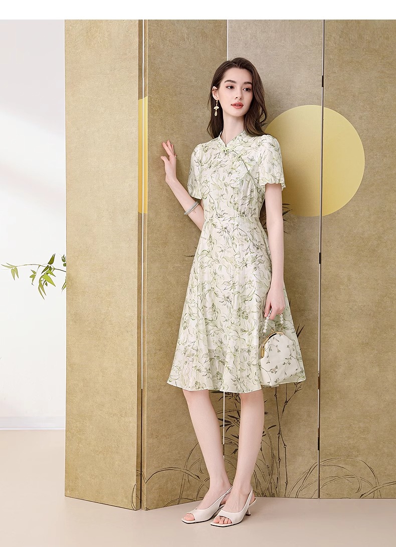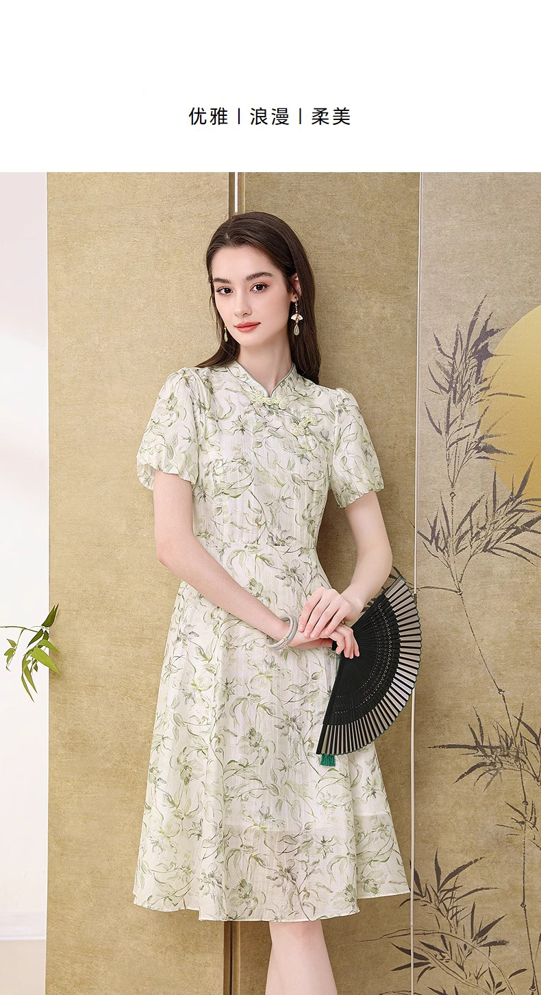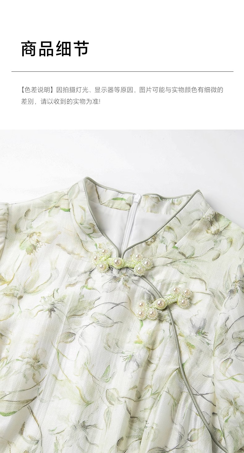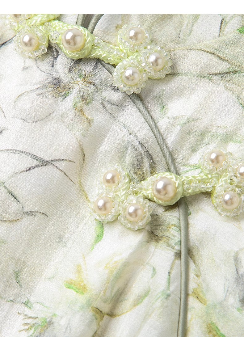 【高货wl】全新升级【铂金会员330/天猫439/差价109】(03923) 洛诗琳新品国风新中式改良天丝印花钉珠盘扣清冷感连衣裙