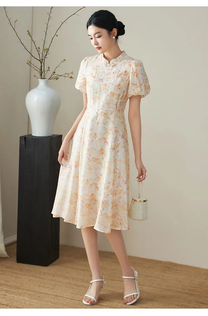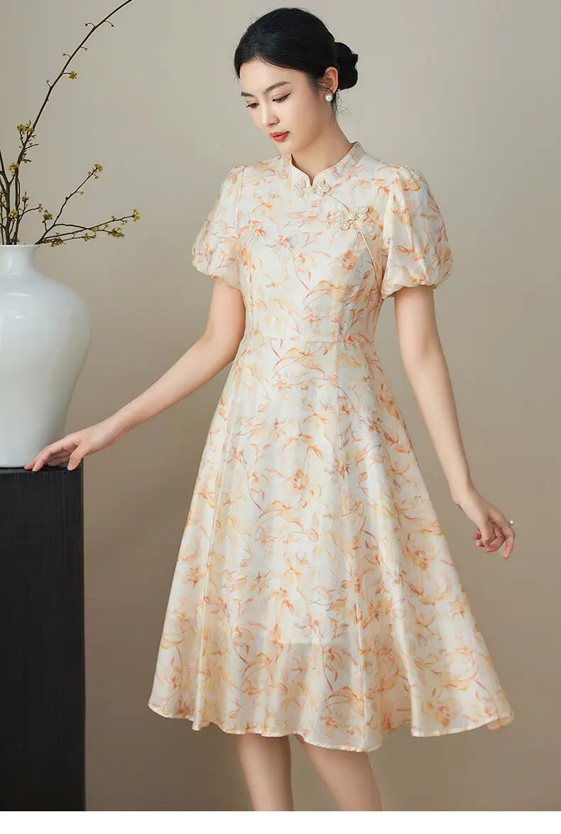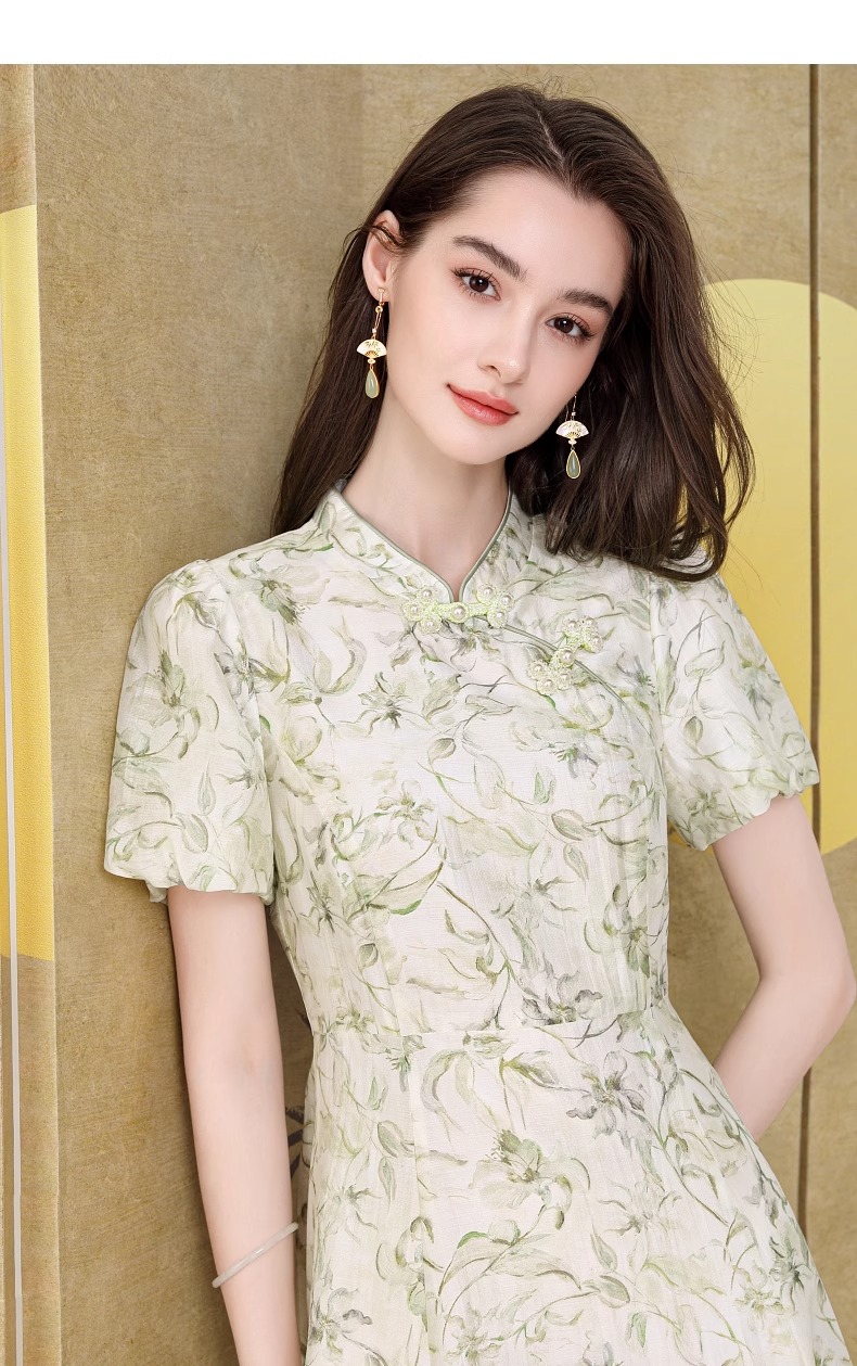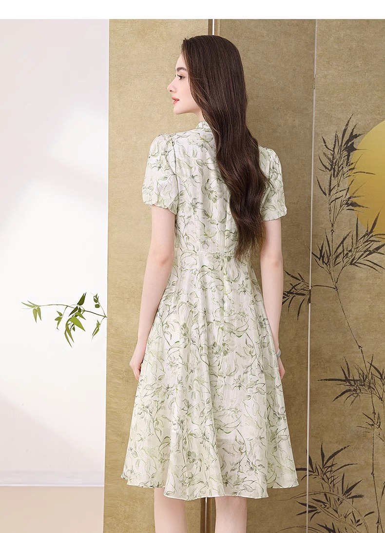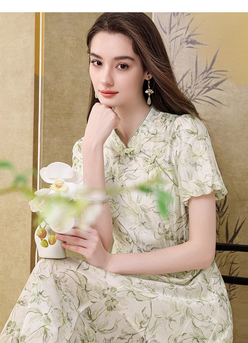 【高货wl】全新升级【铂金会员330/天猫439/差价109】(03923) 洛诗琳新品国风新中式改良天丝印花钉珠盘扣清冷感连衣裙