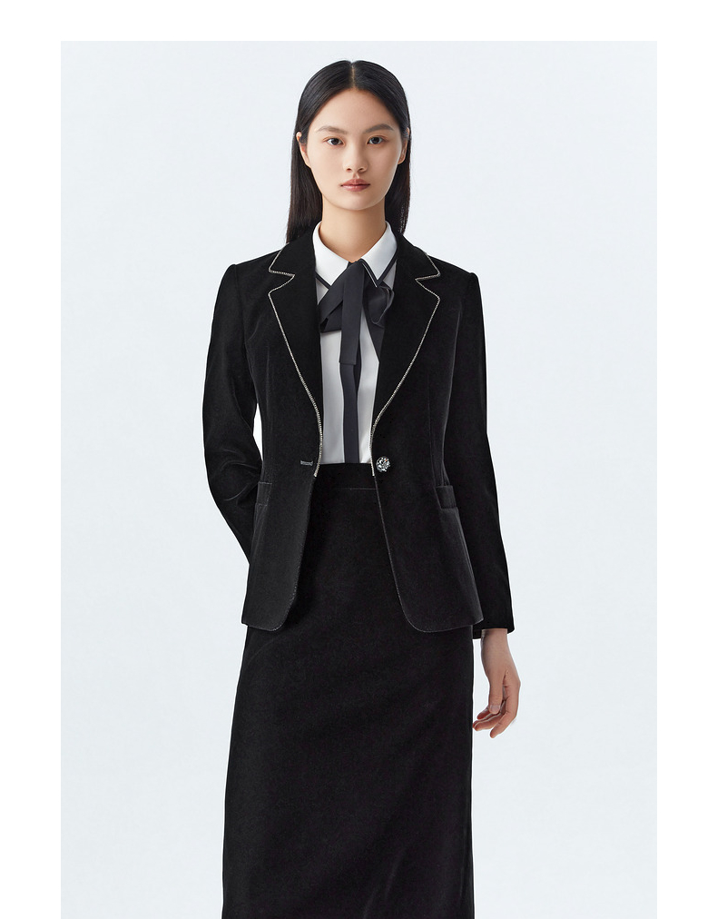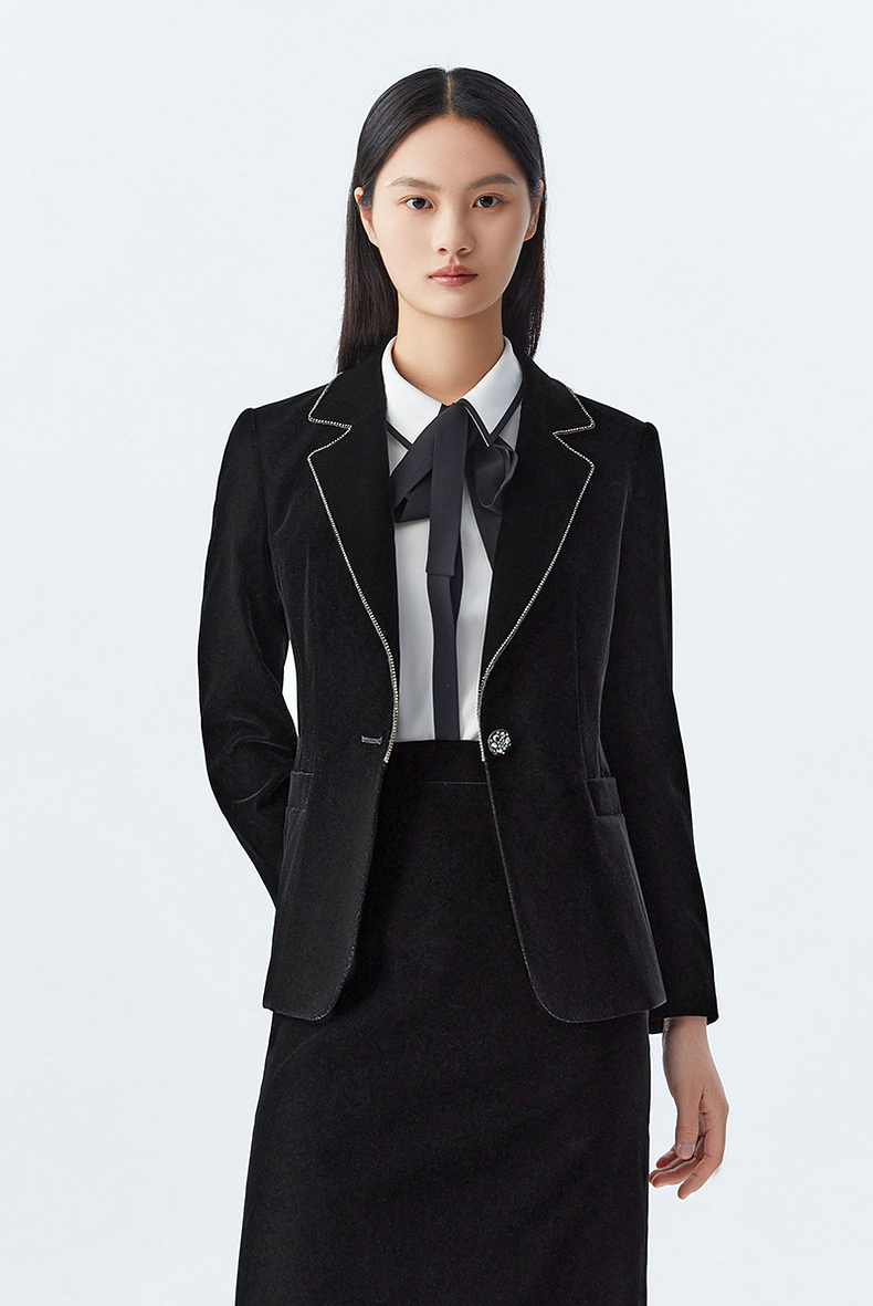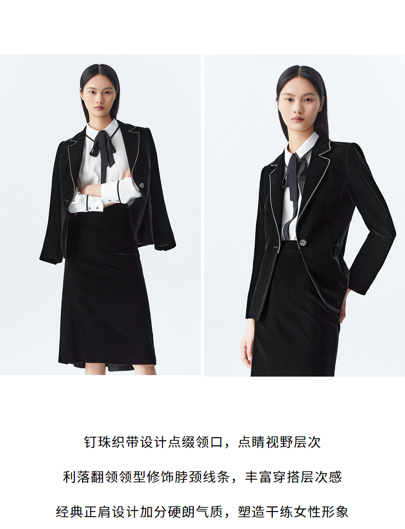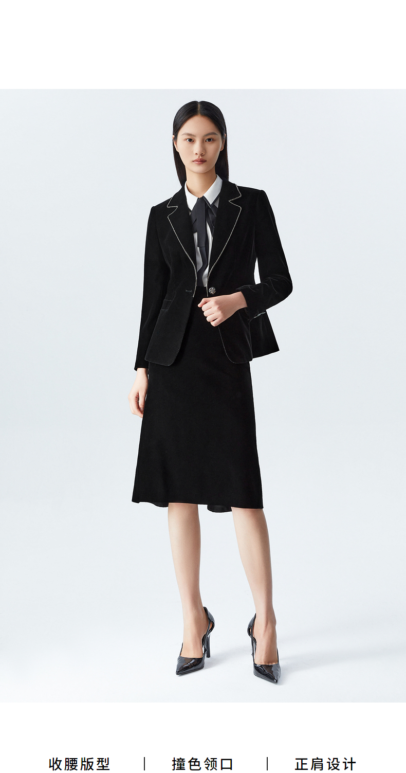 M1XXL1朗姿 通勤丝绒西服翻领西装 LCSP03VJK131