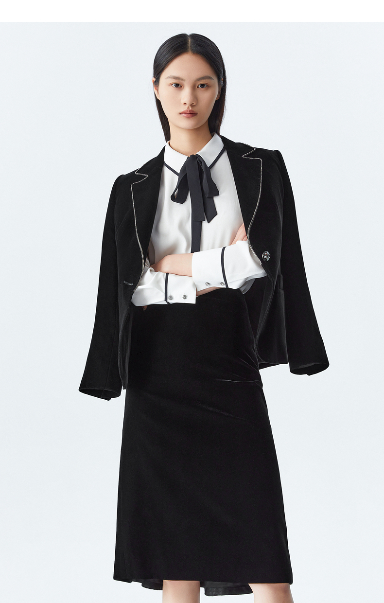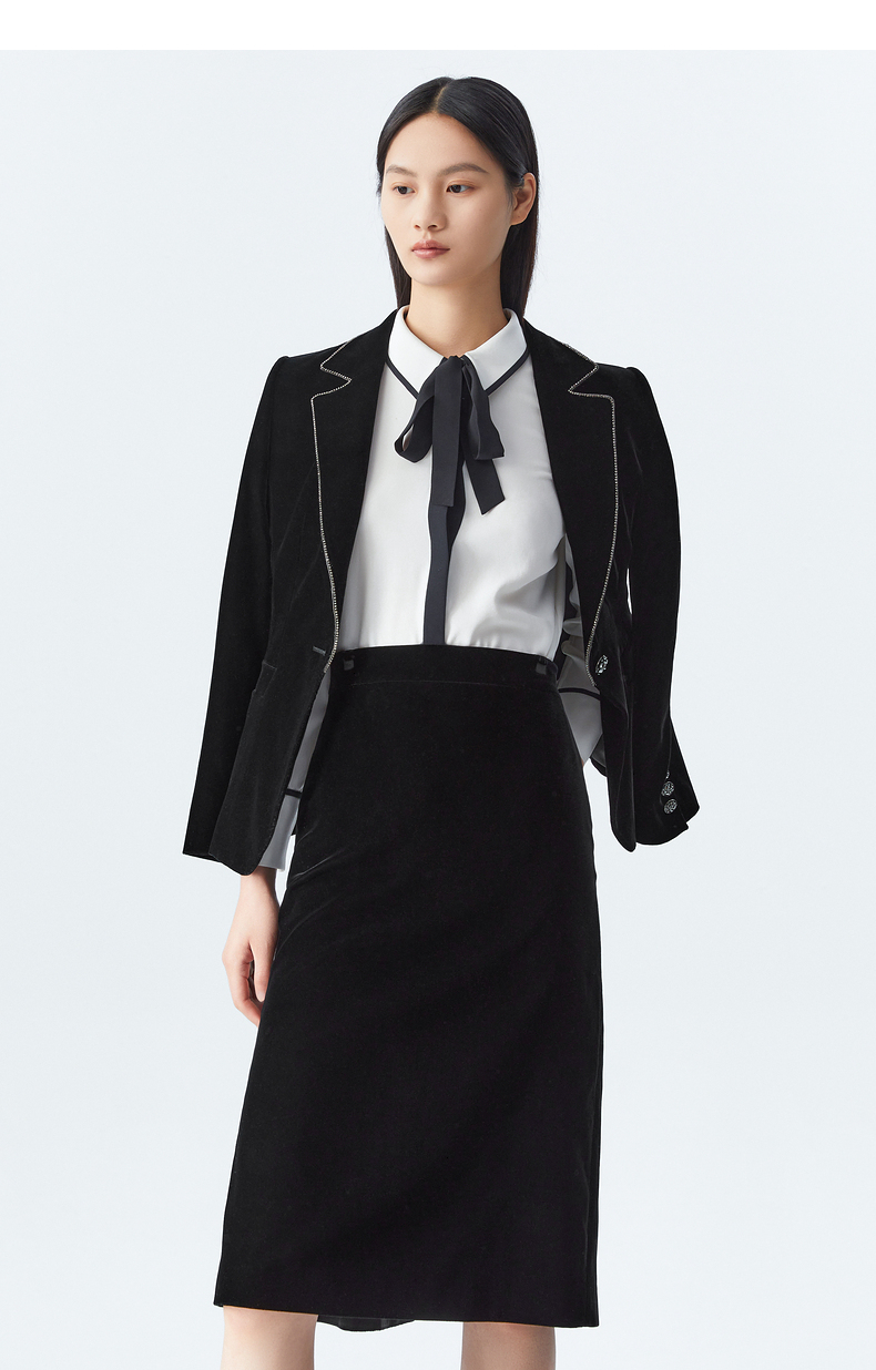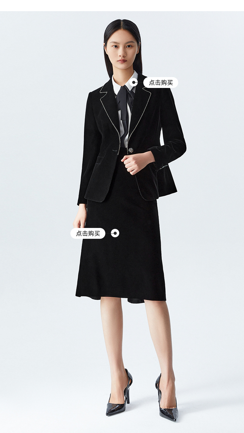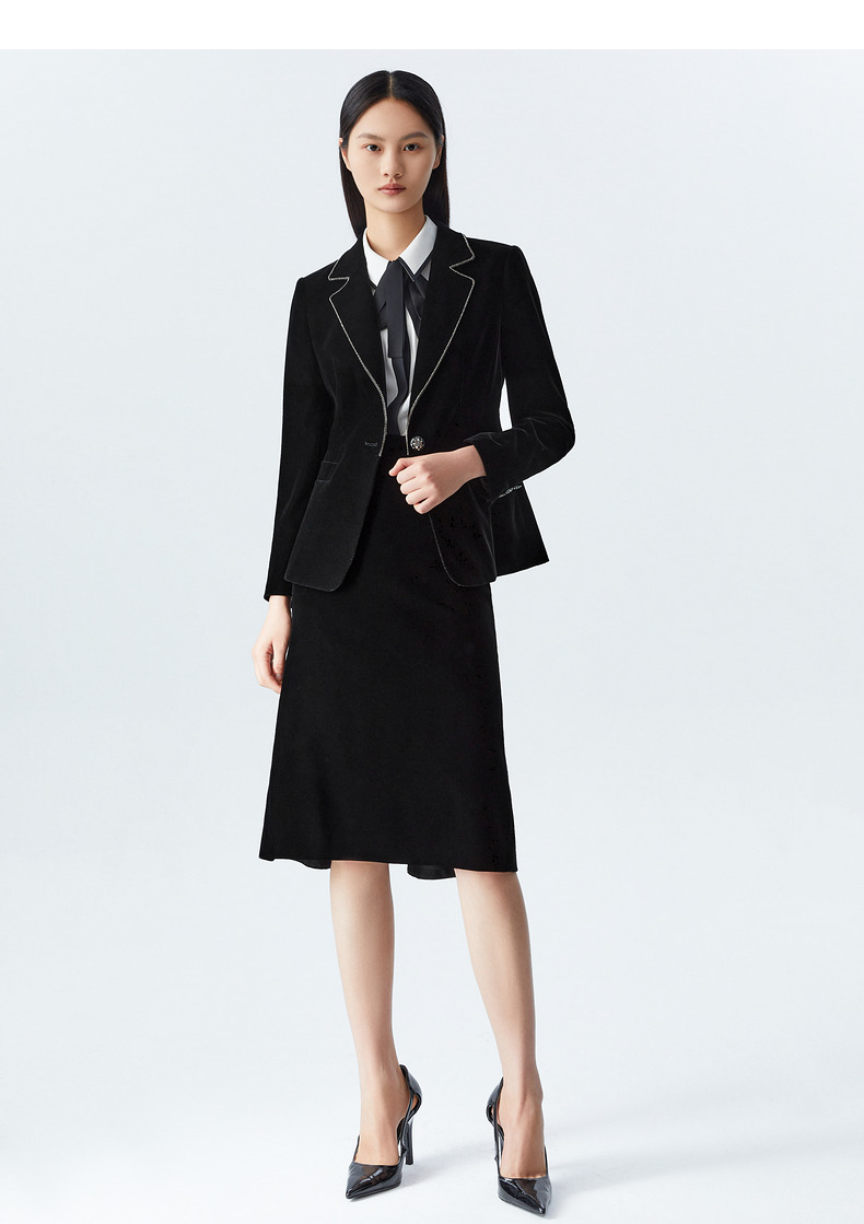 M1XXL1朗姿 通勤丝绒西服翻领西装 LCSP03VJK131