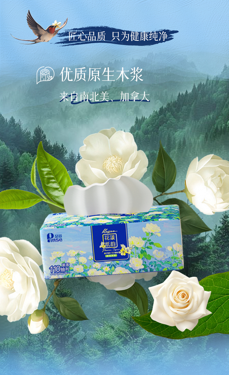 品萱花漾110抽3层抽取式面纸-20包电商专供