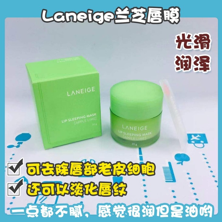 Laneige兰芝唇膜#苹果青柠味 👍唇部的睡眠面膜🌙,可去除唇部老皮细胞,保持唇部光滑润泽✨。还可以淡化唇纹、唇色的作用😊,唇纹少了擦什么口红都好看💄!再也不怕哑光质地的口红上嘴干燥了💦,既有颜值又滋润的果冻唇膜。特别适合唇部角质层厚😋,平时不做唇部护理,容易干燥起皮的小仙女们~是苹果青柠的味道呀🍏,一点都不腻,感觉很润但是油哟😁!