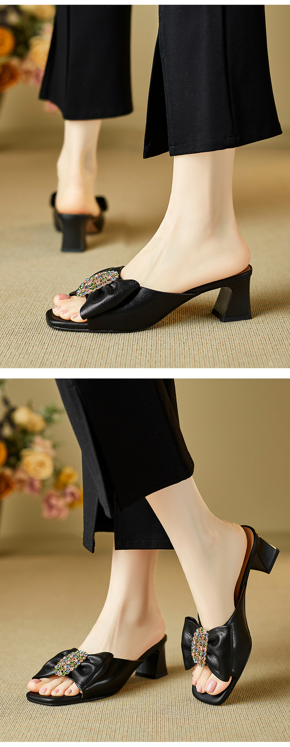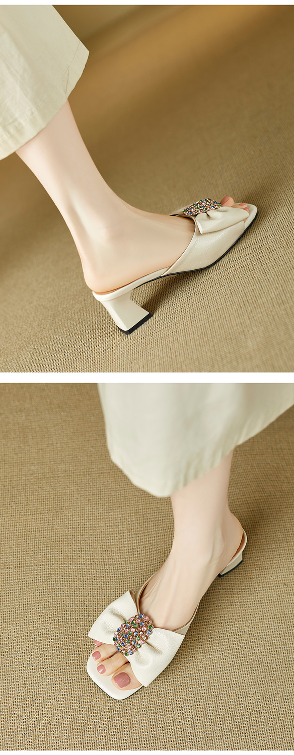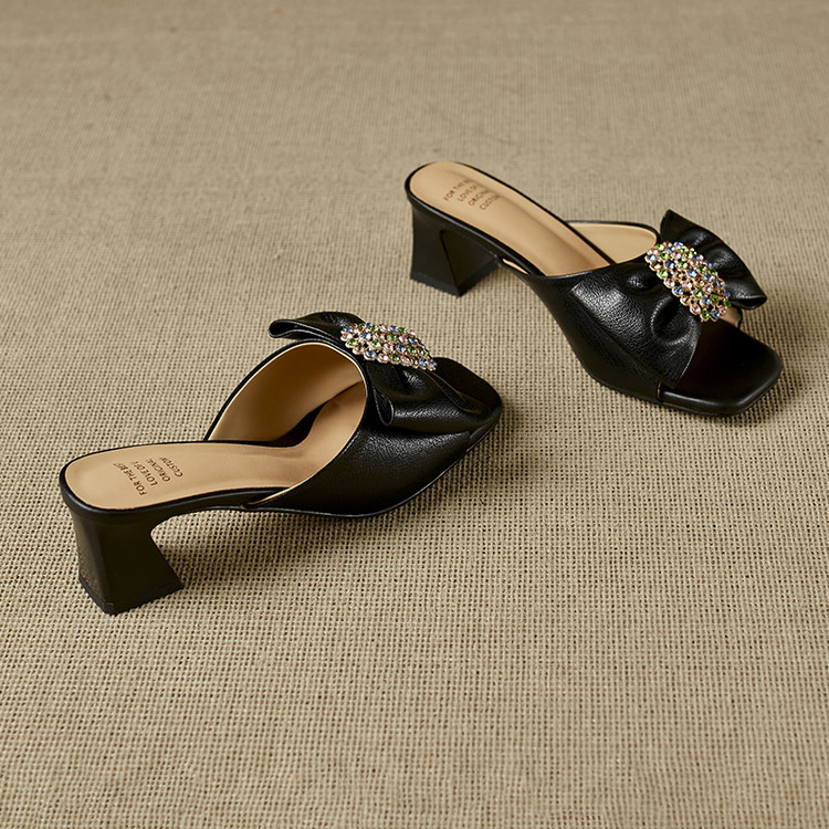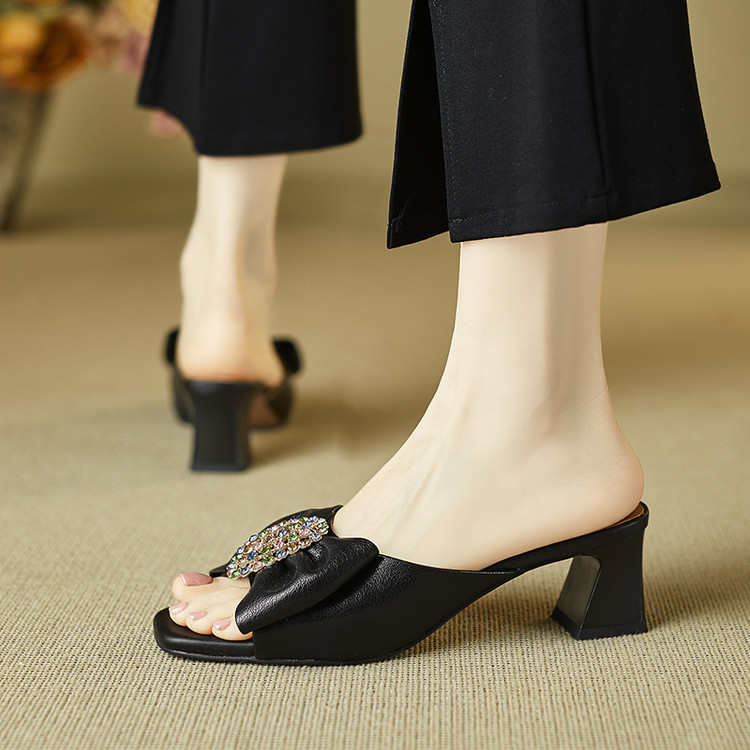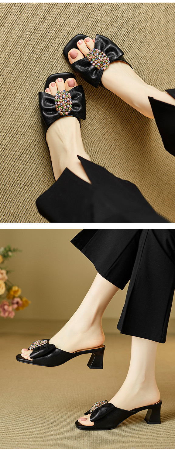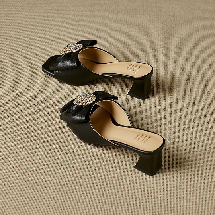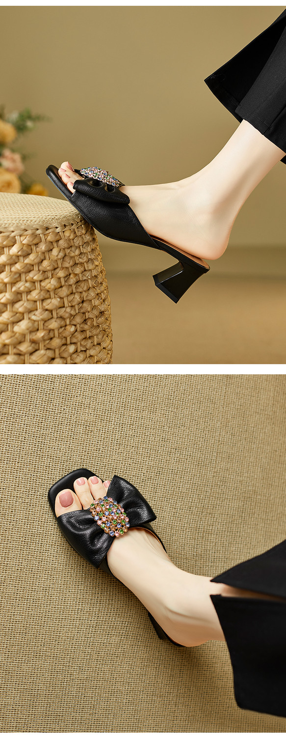 【预售5天】米白色软羊皮蝴蝶结一字带高跟拖鞋女外穿夏季软皮仙女风露趾凉鞋DSFG&1696