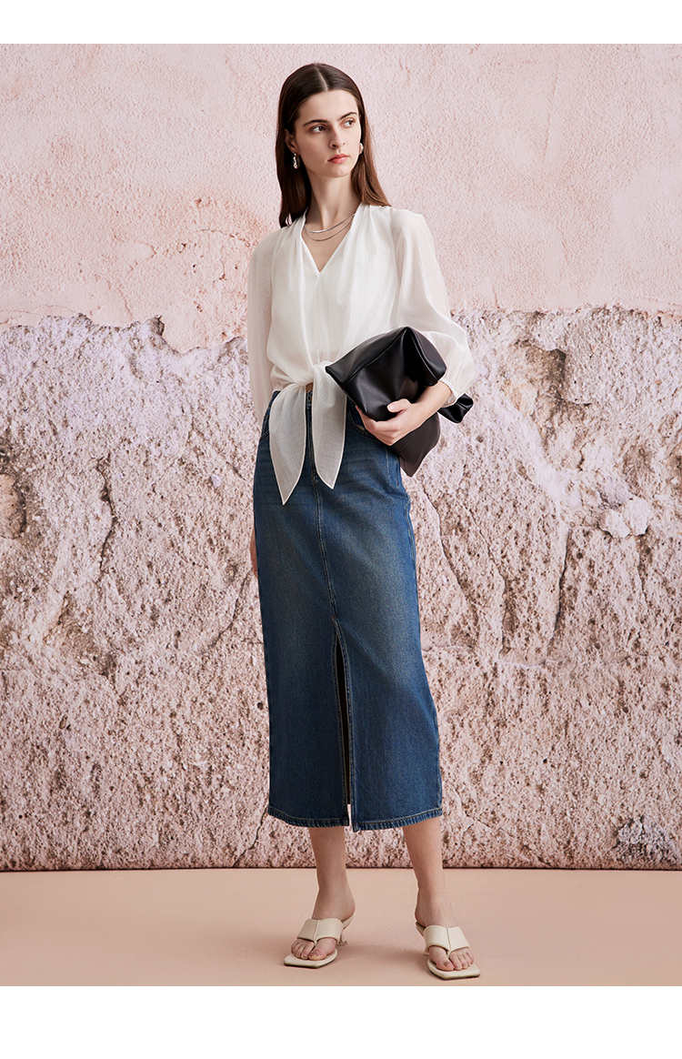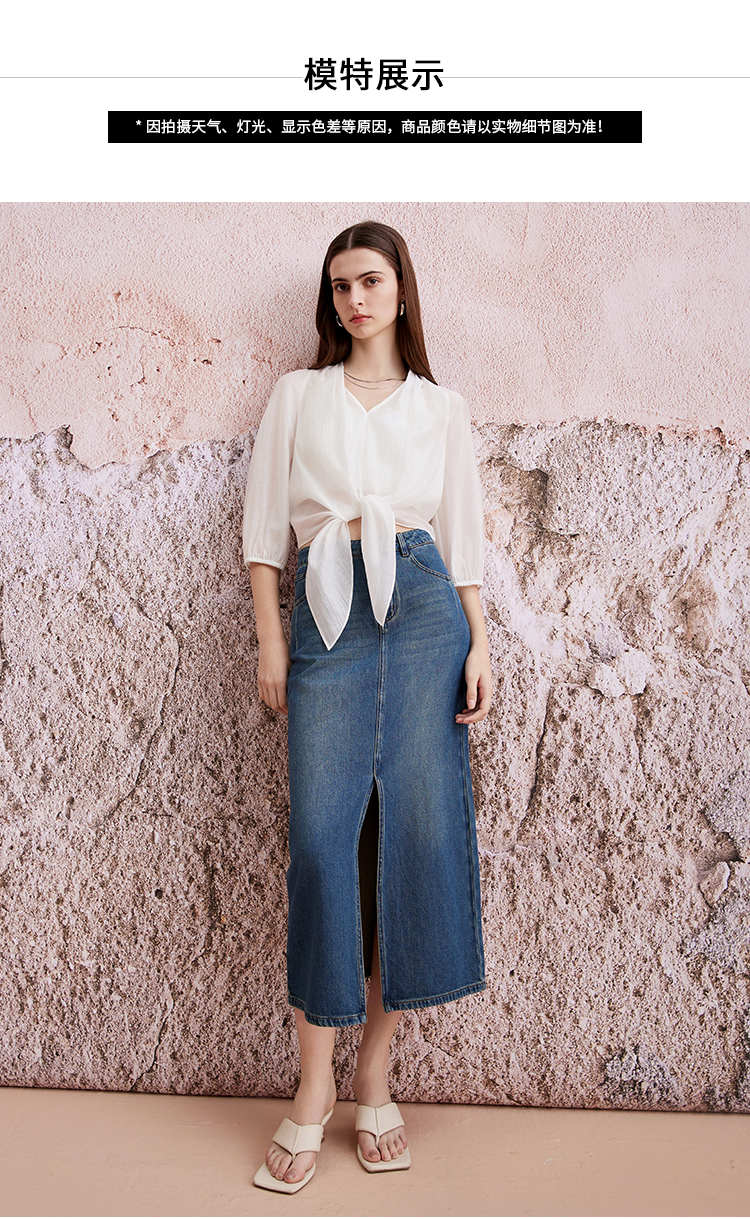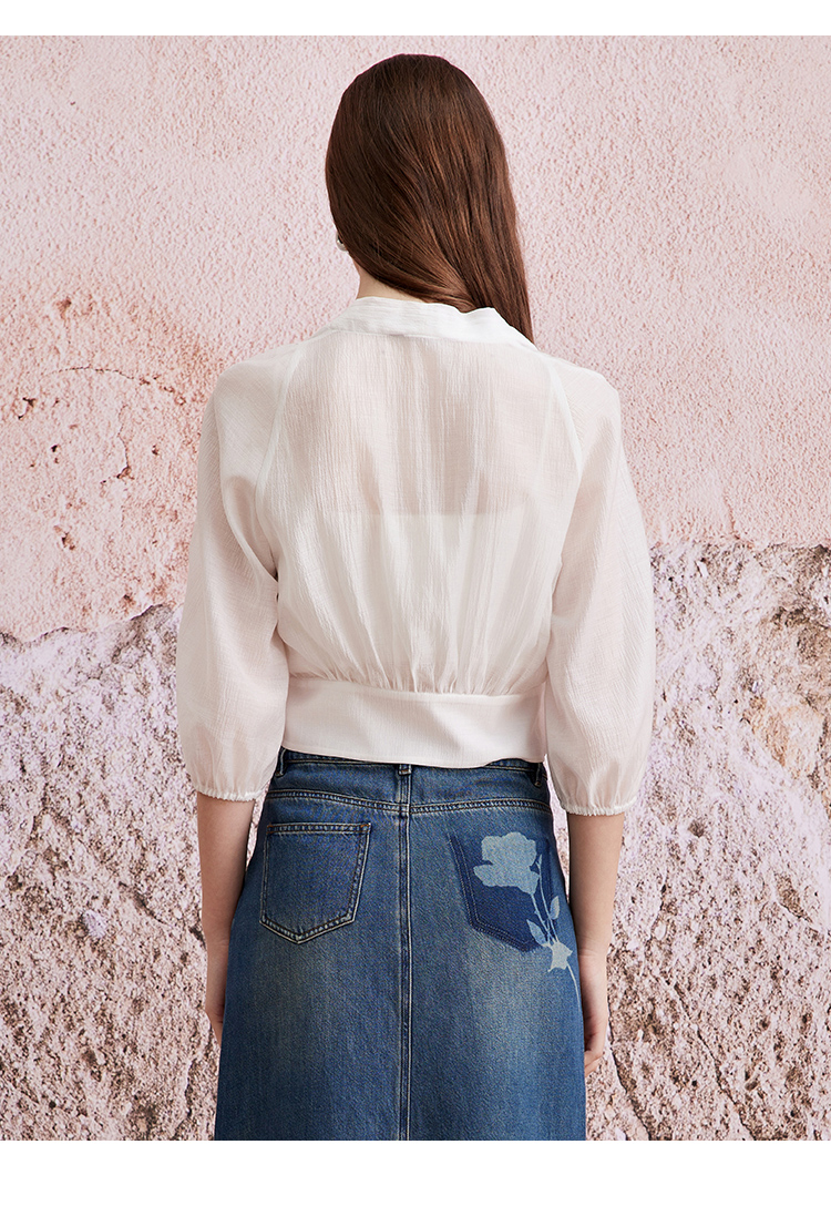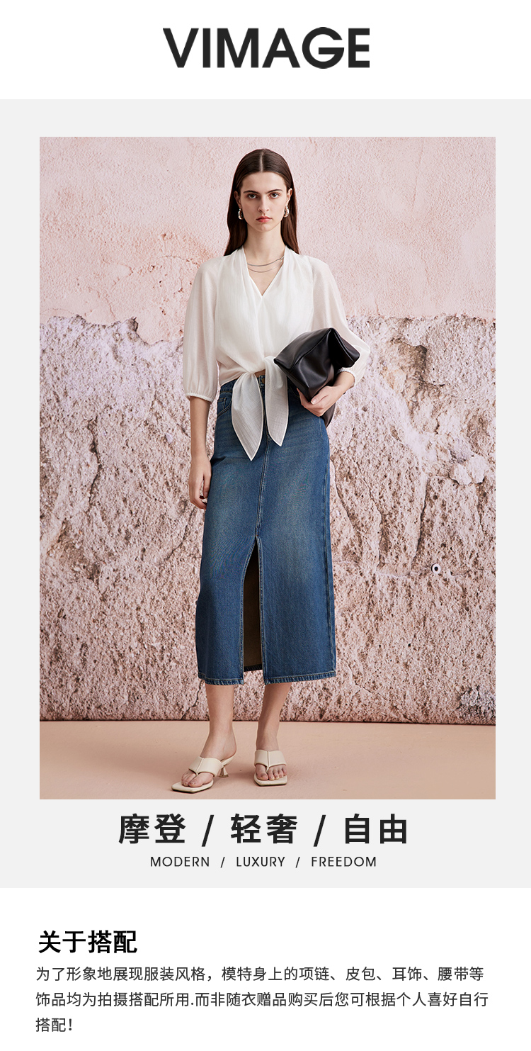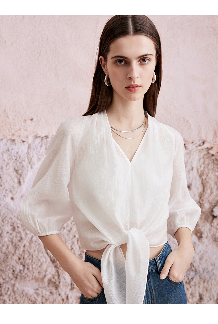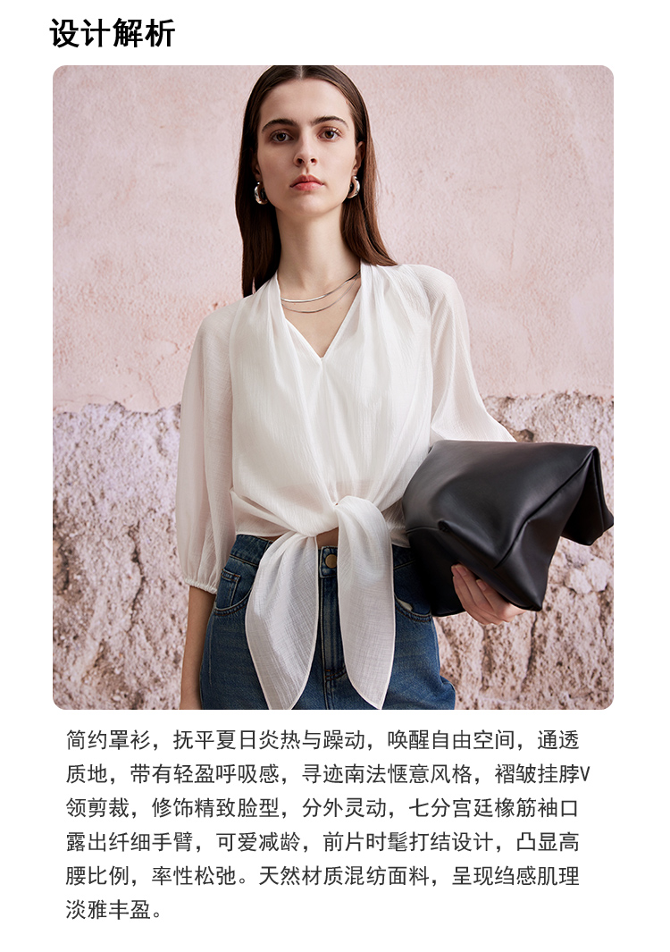 VIMAGE纬漫纪夏季新款五分袖绑带时尚显瘦短款上衣女V2113718