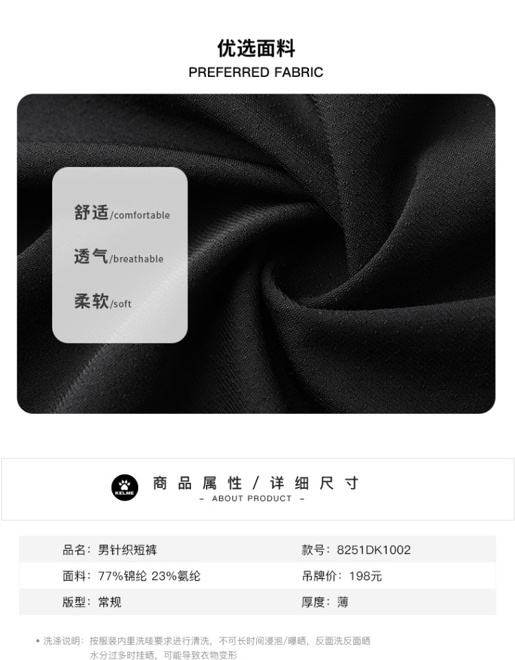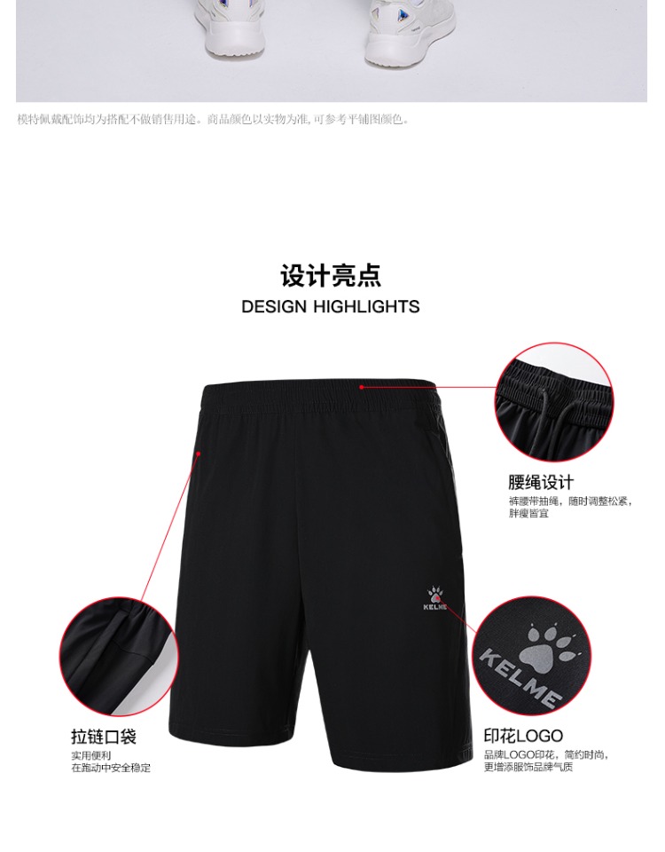 卡尔美运动短裤针织夏季男 休闲跑步足球健身舒适透气五分裤