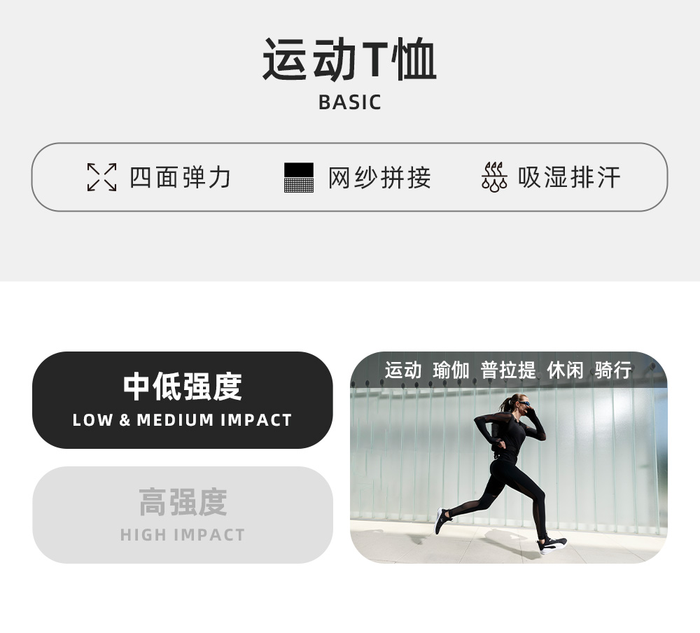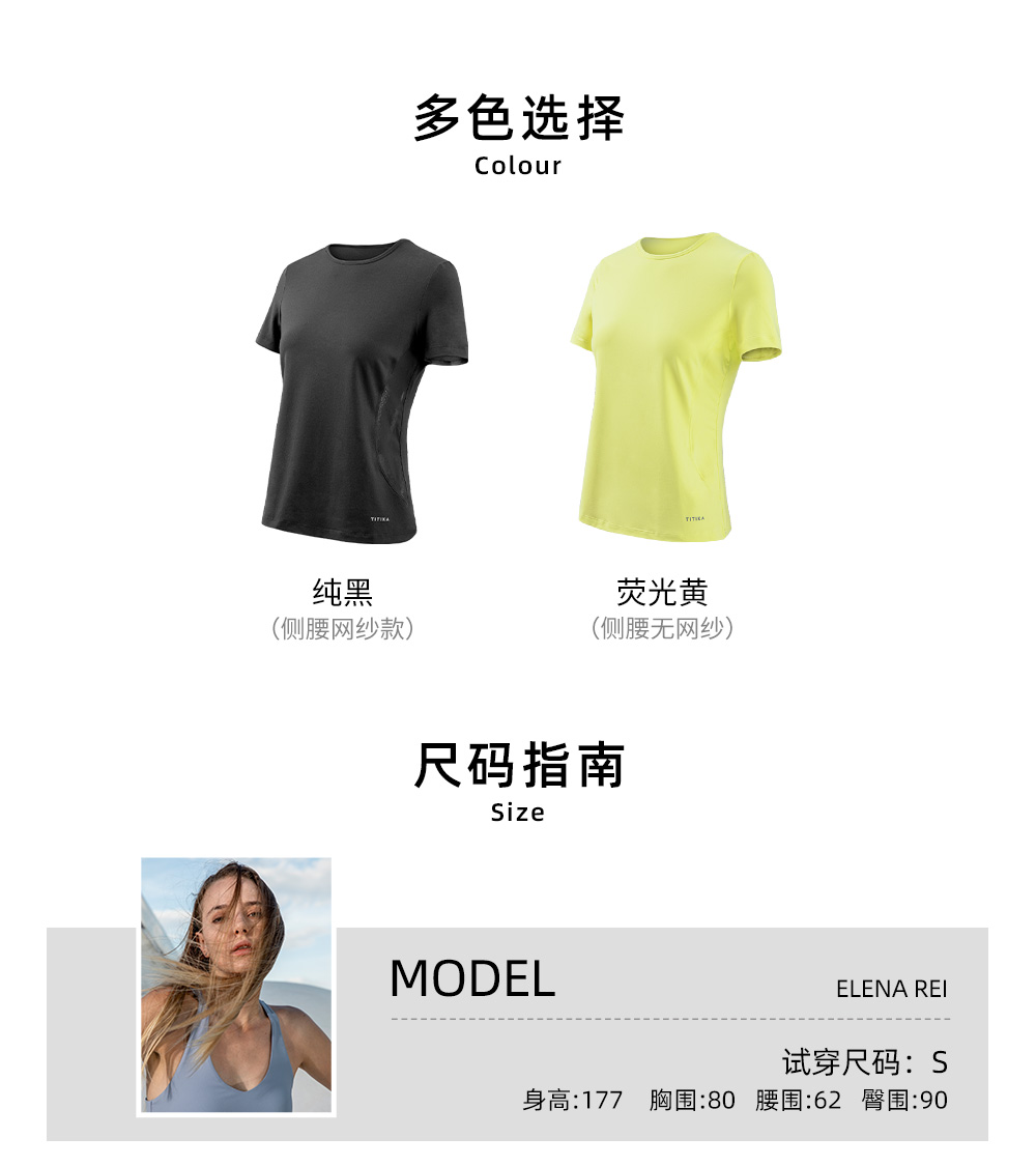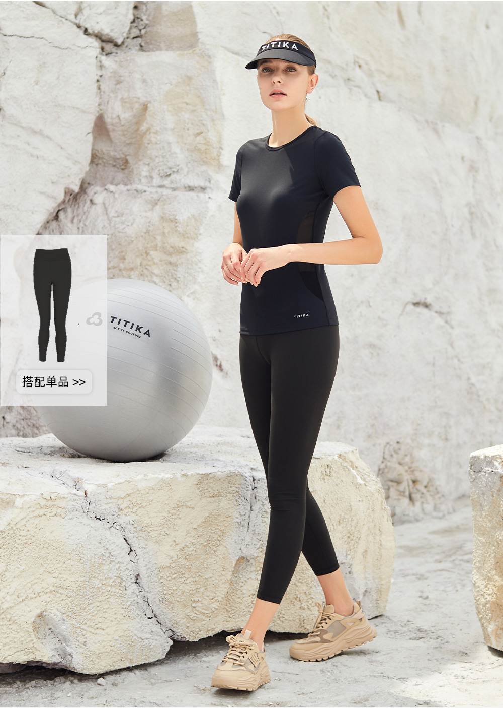 TITIKA ACTIVE运动T恤女网纱拼接吸湿排汗休闲健身短袖上衣 2NT21046