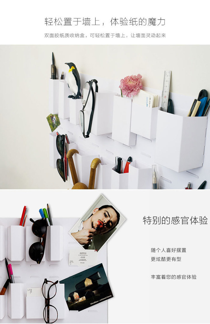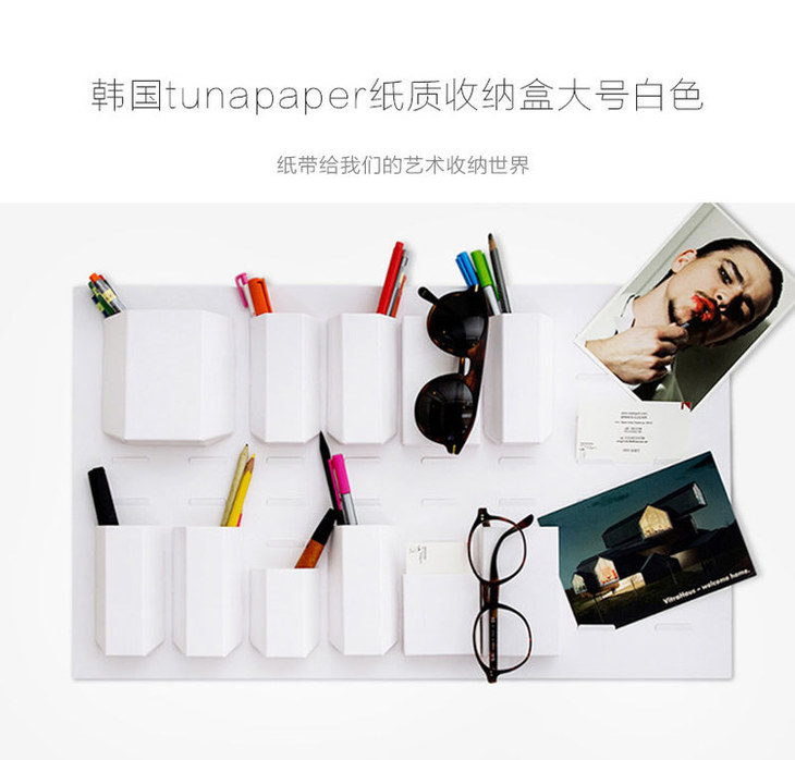 韩国原产TUNAPAPER粘贴式纸质收纳盒免打孔整理盒储物盒大号