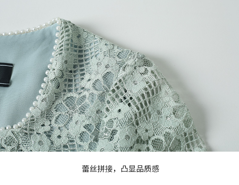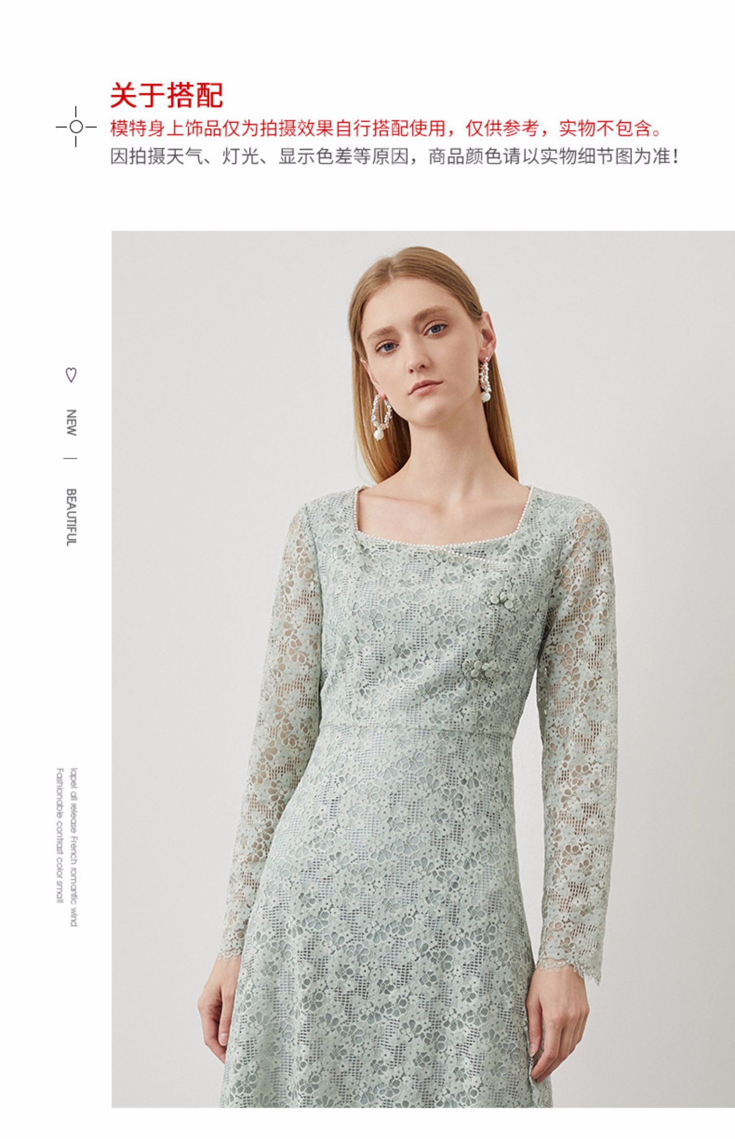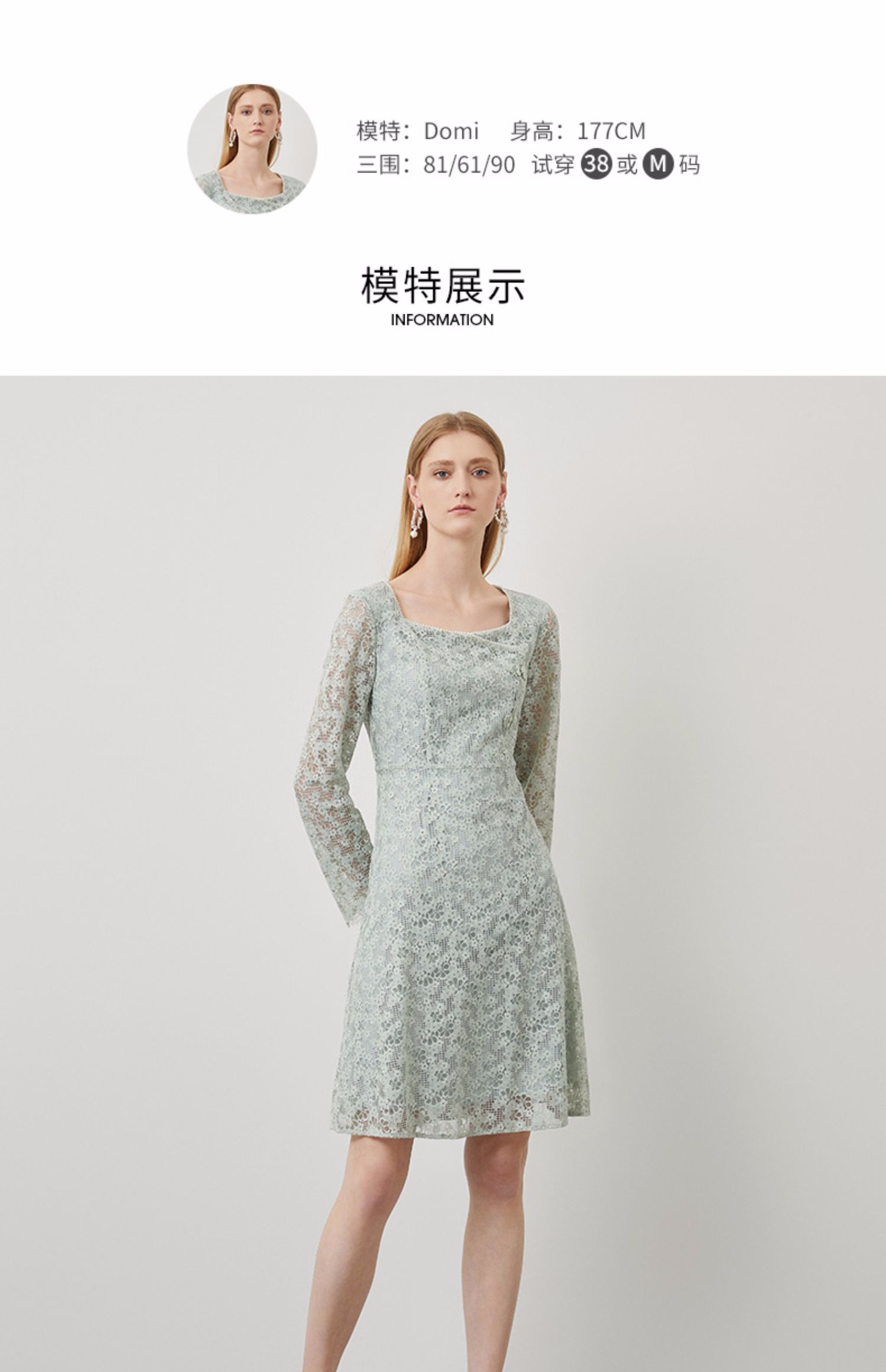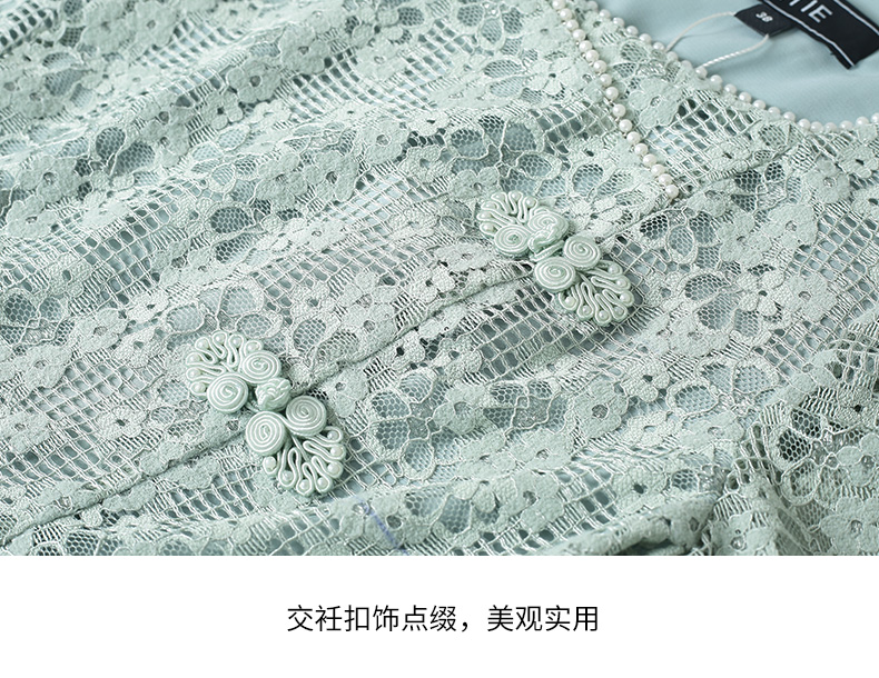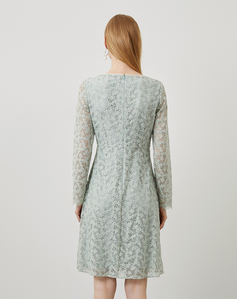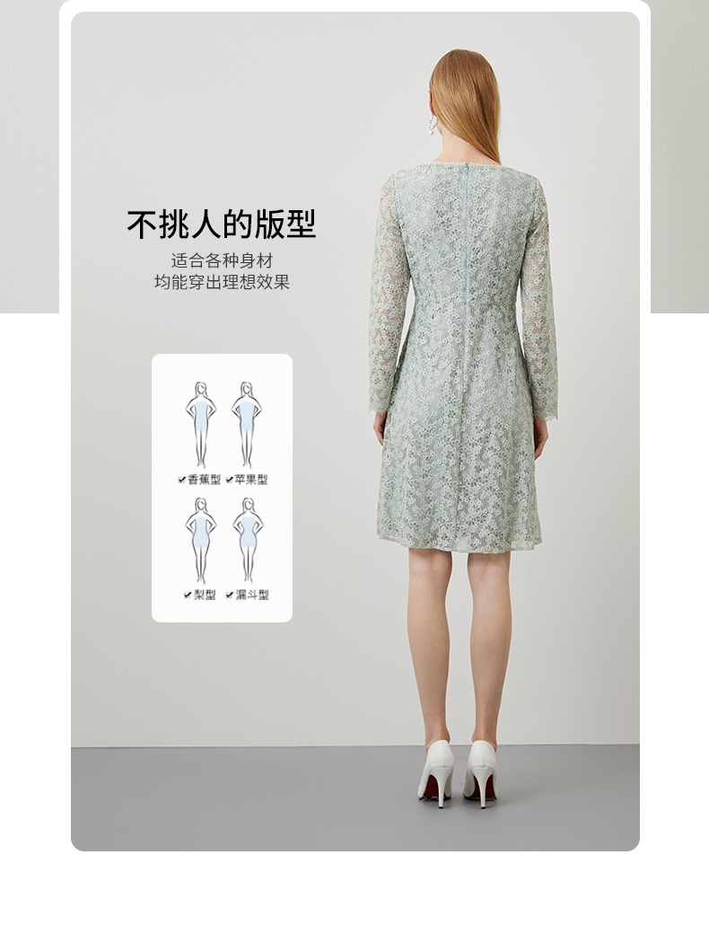 EITIE爱特爱秋季新款温柔气质方领收腰a字中裙绣花蕾丝连衣裙C2207034