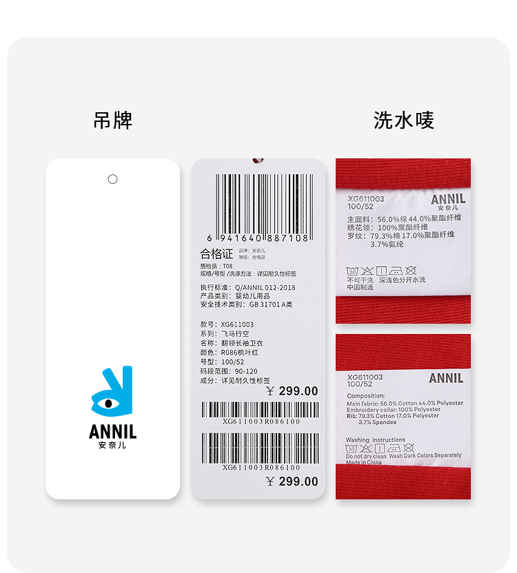 【实体店同款】女童翻领长袖卫衣春季新款安奈儿童装XG611003