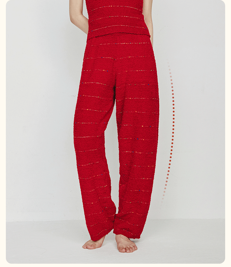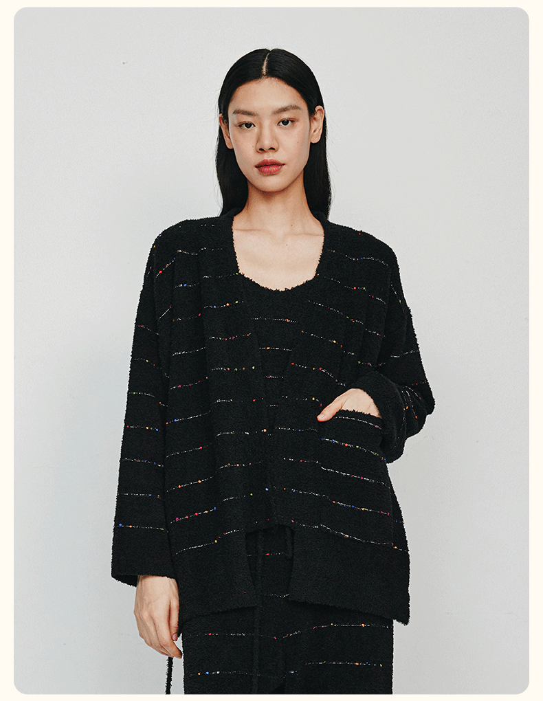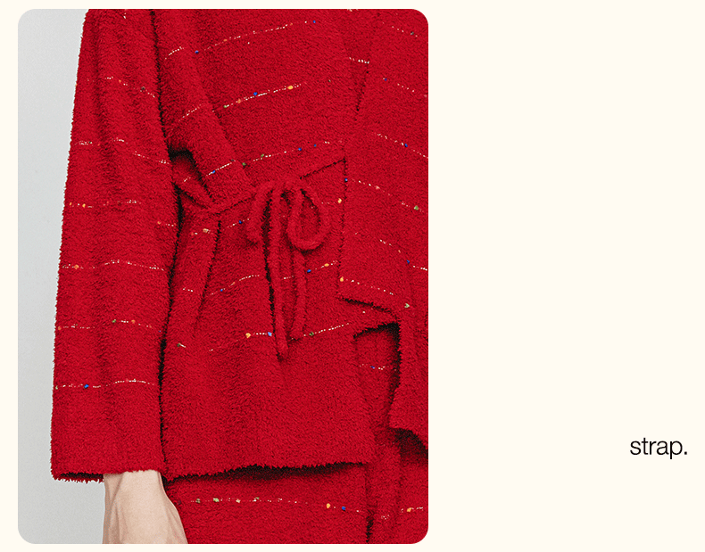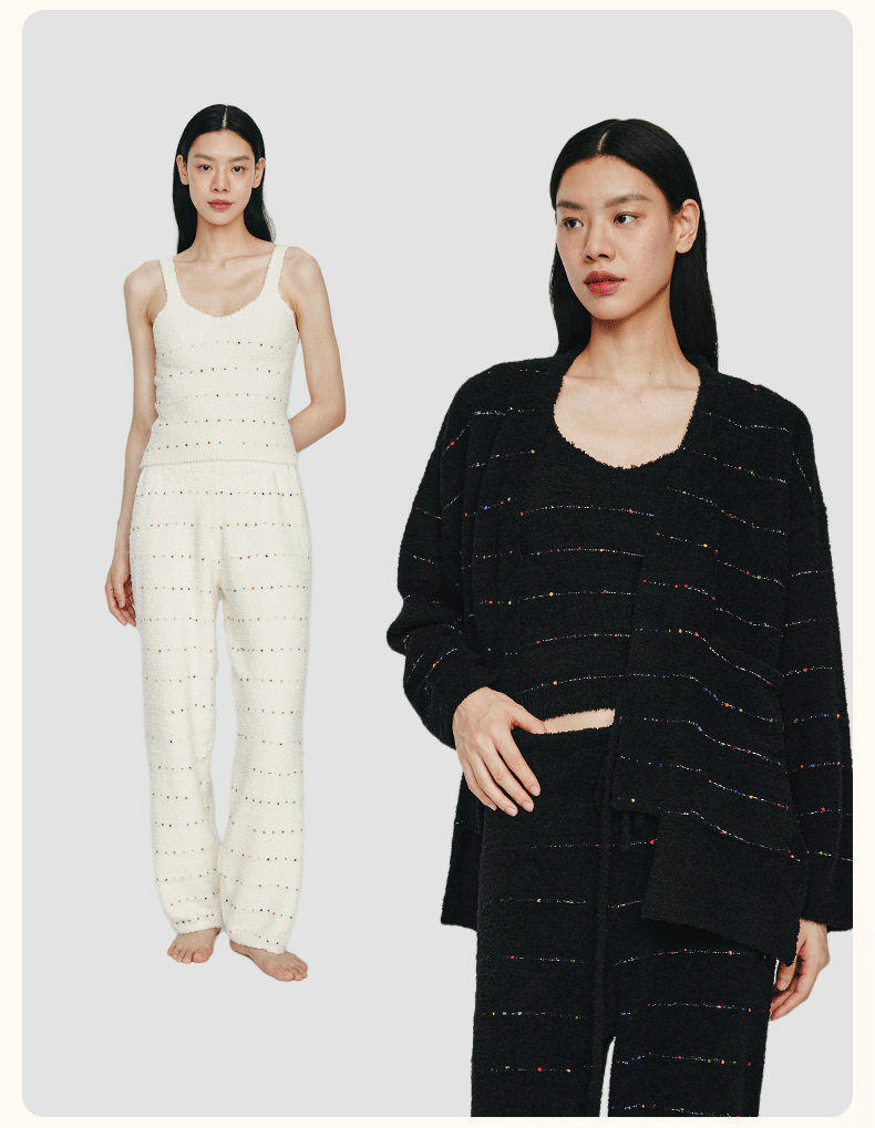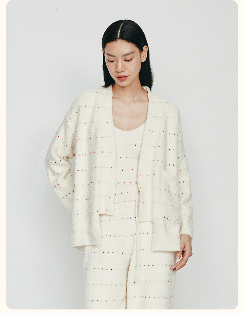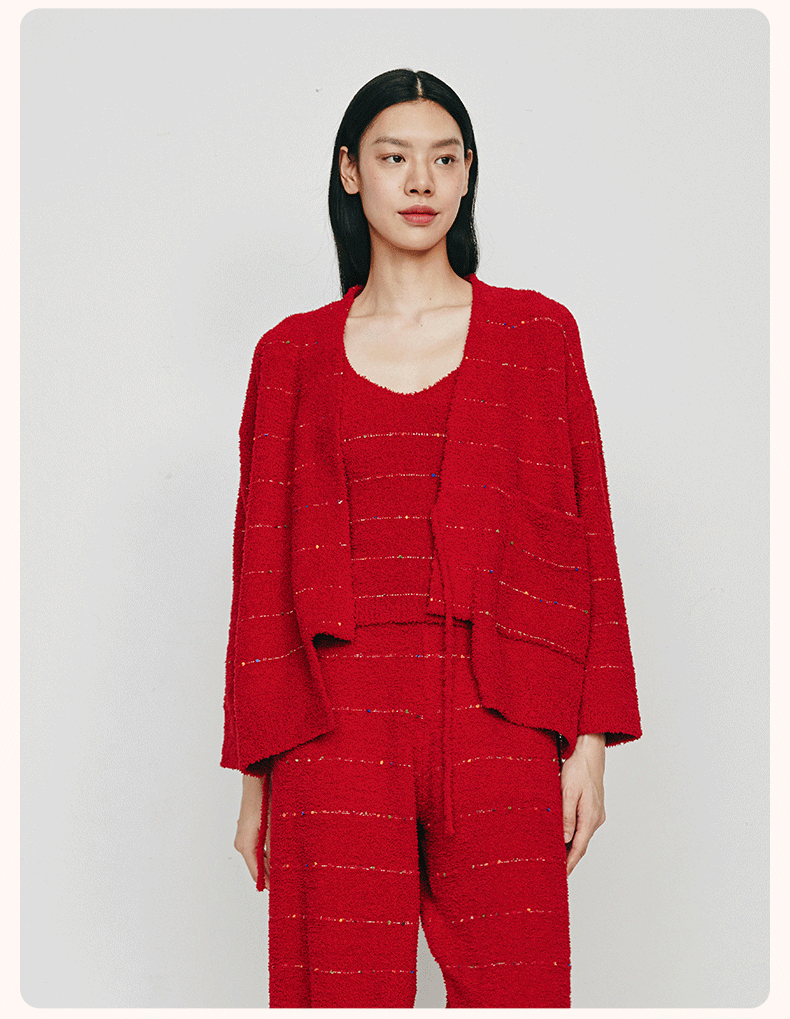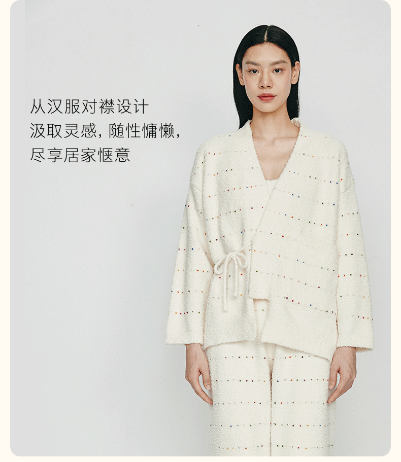 【土豆妈同款】从轻秋冬家居服女豆豆绒系列七彩纱混纺抗静电恒温蓄暖开衫三件套【李点点专属】