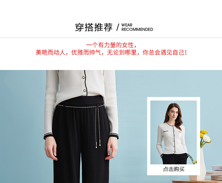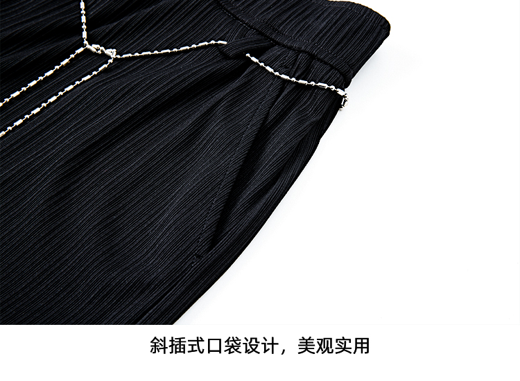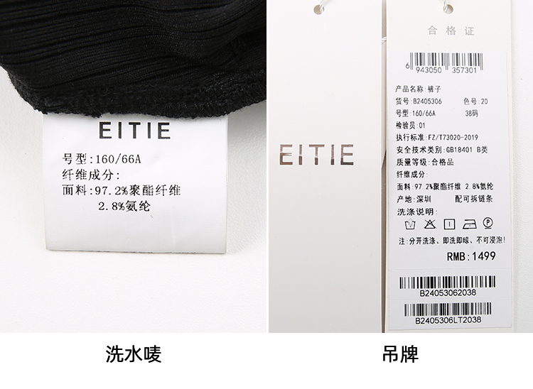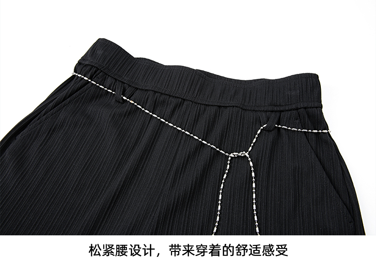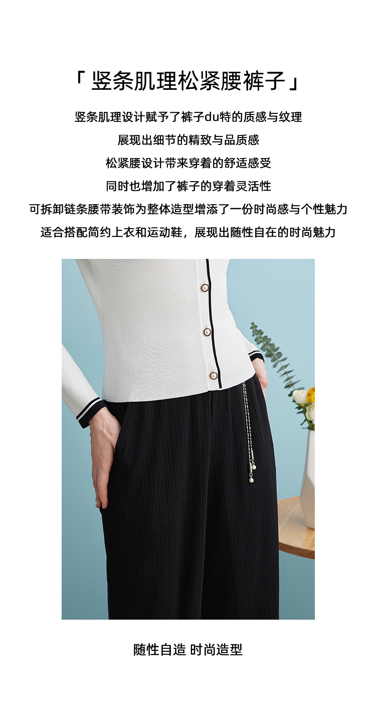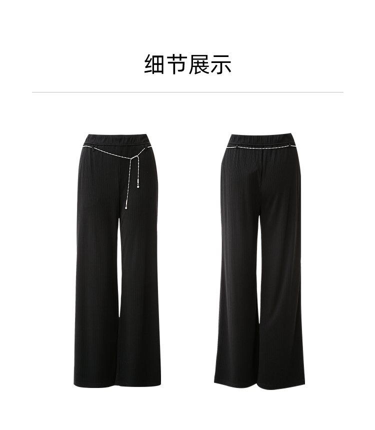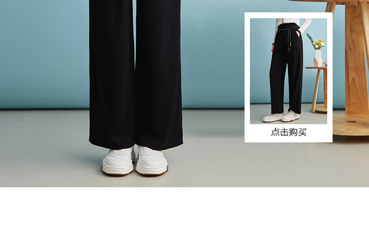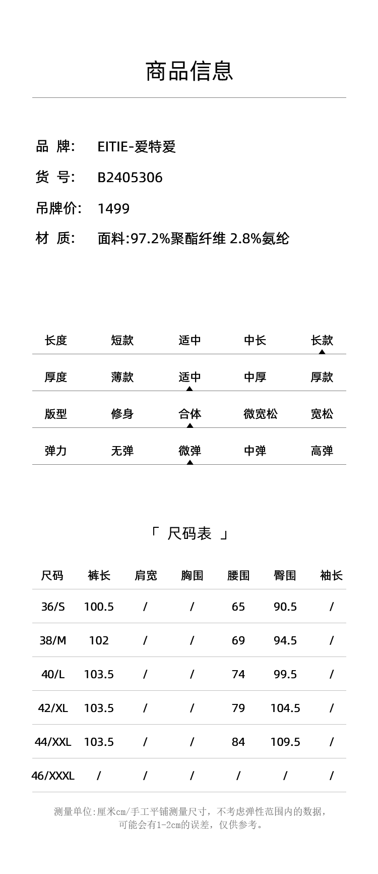 EITIE爱特爱通勤高腰显瘦直筒垂坠黑色松紧腰长裤24夏季新款B2405306