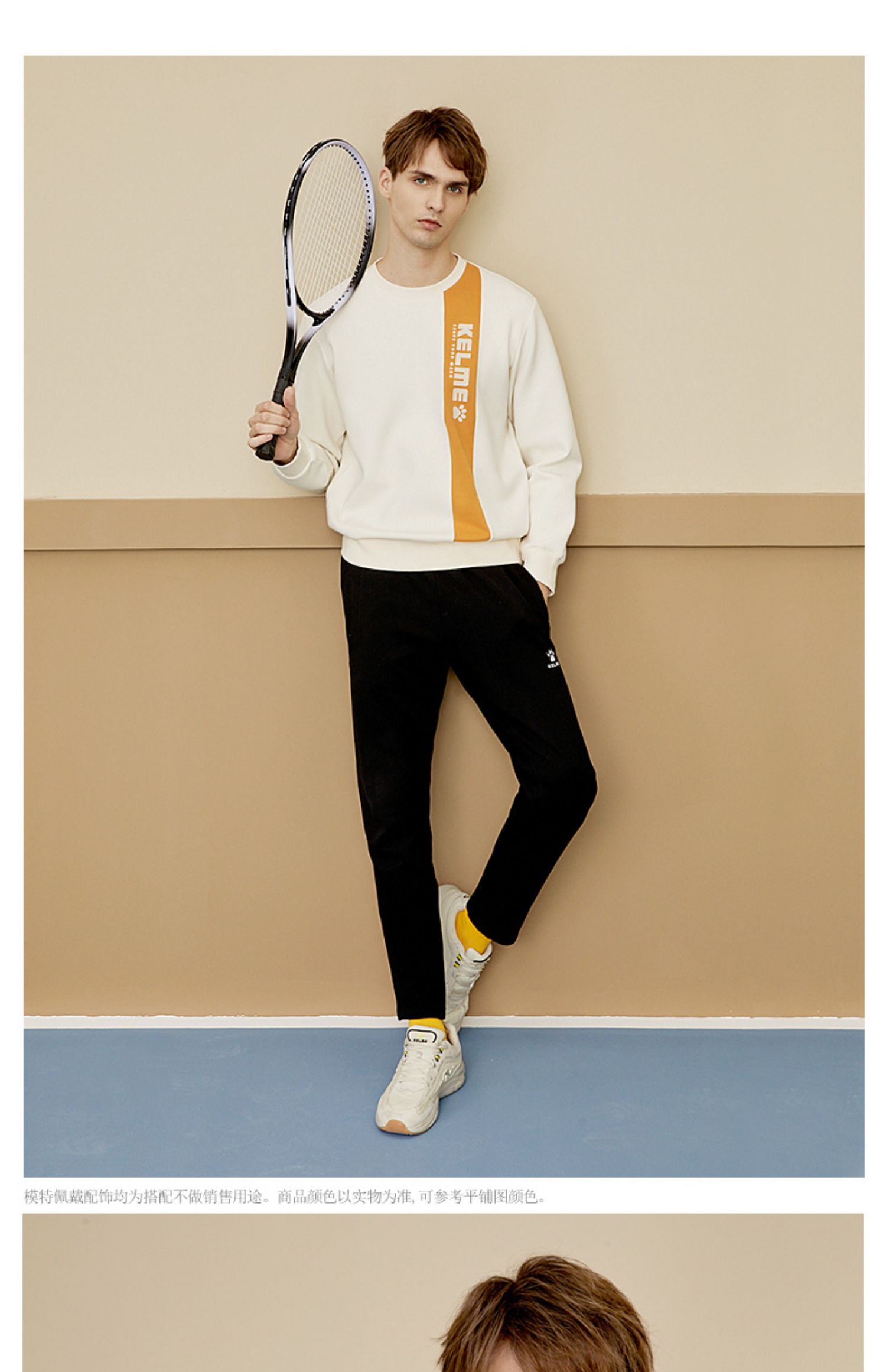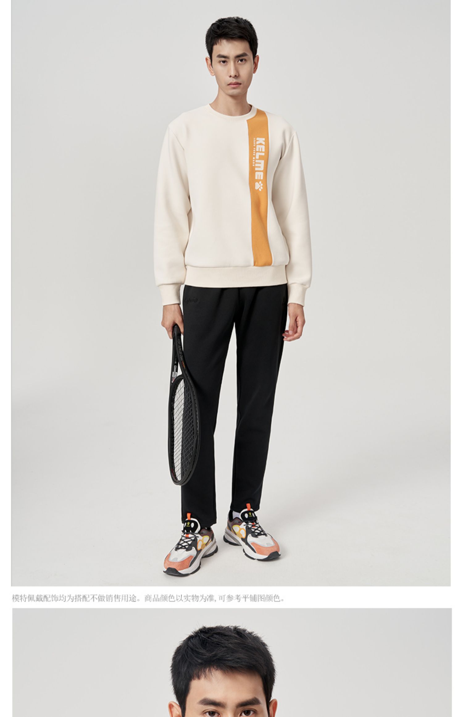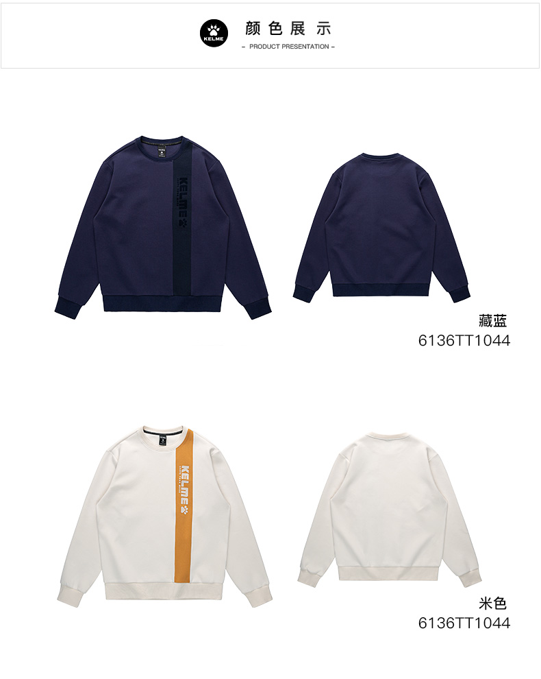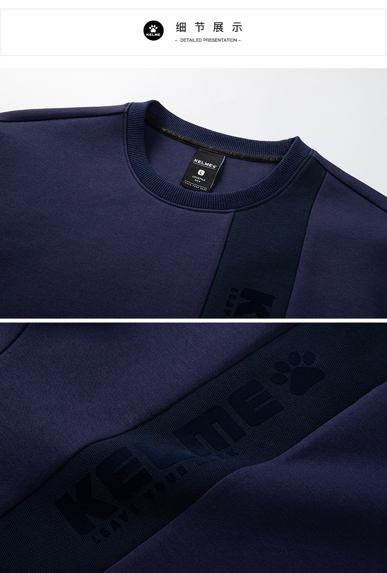 KELME卡尔美圆领套头卫衣男春秋新款无帽青少运动休闲上衣