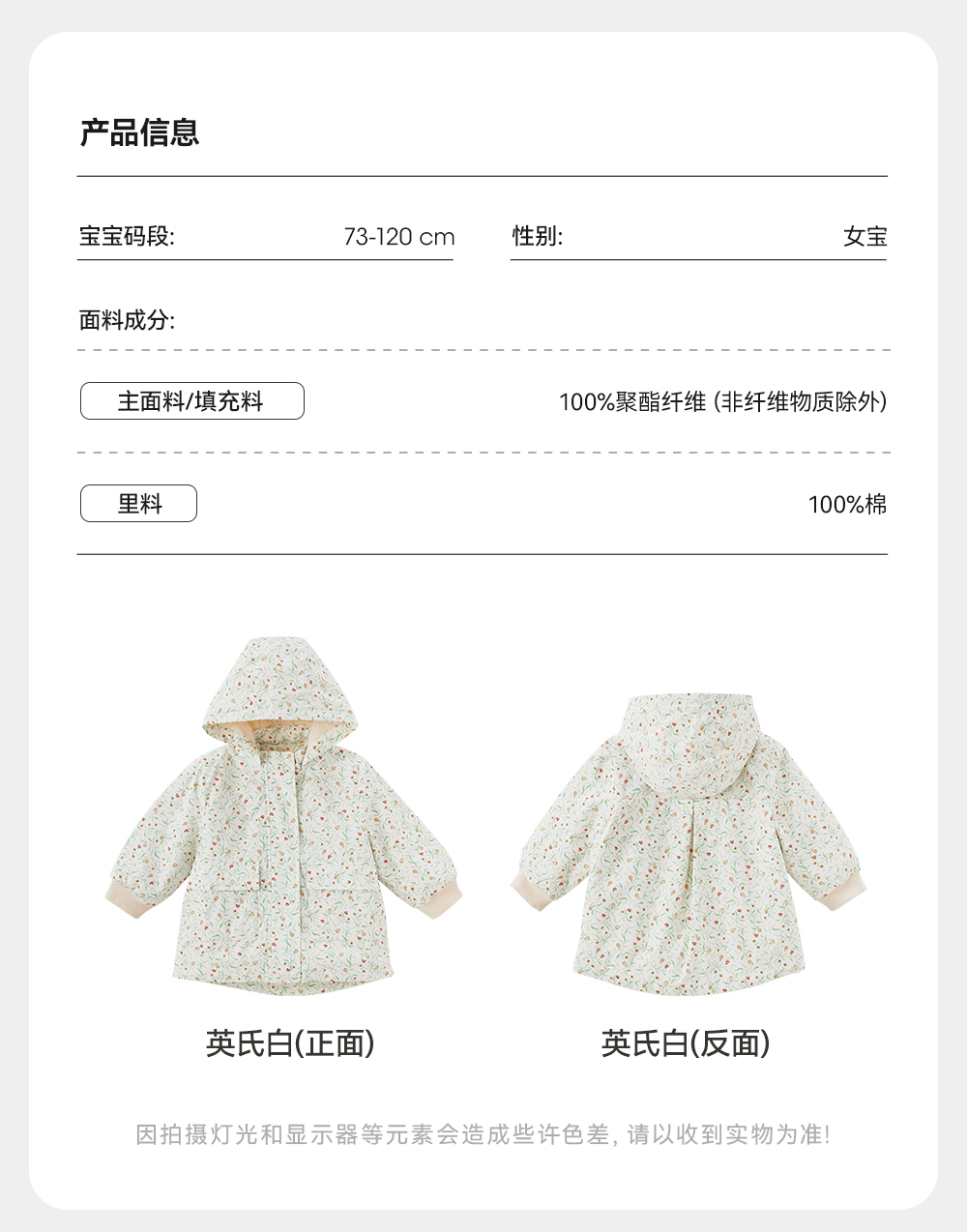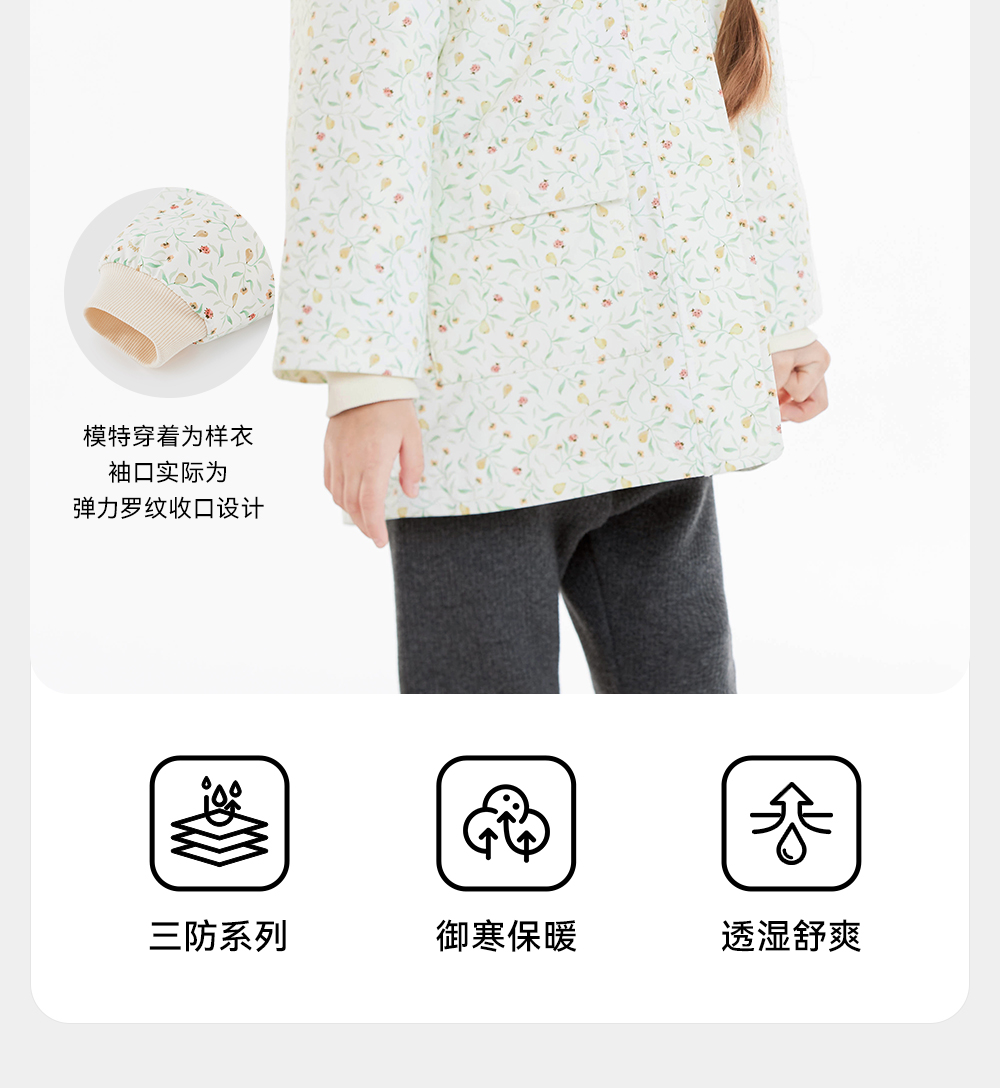 【商场同款】英氏儿童外套长袖夹棉秋冬保暖女童三防外套新款