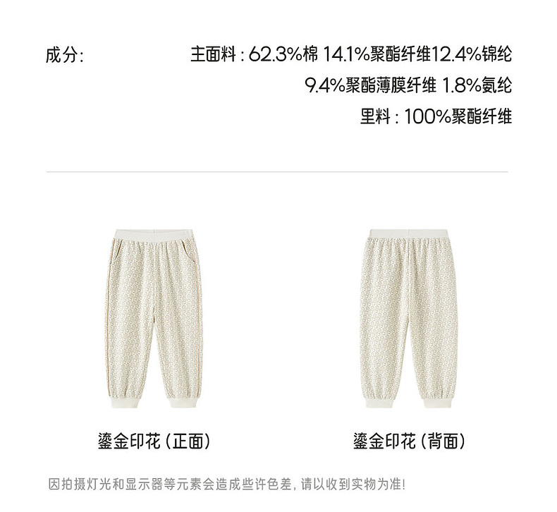 【亲肤透气】英氏儿童长裤女童pp裤春秋款花纹针织下装女宝百搭户外休闲裤子