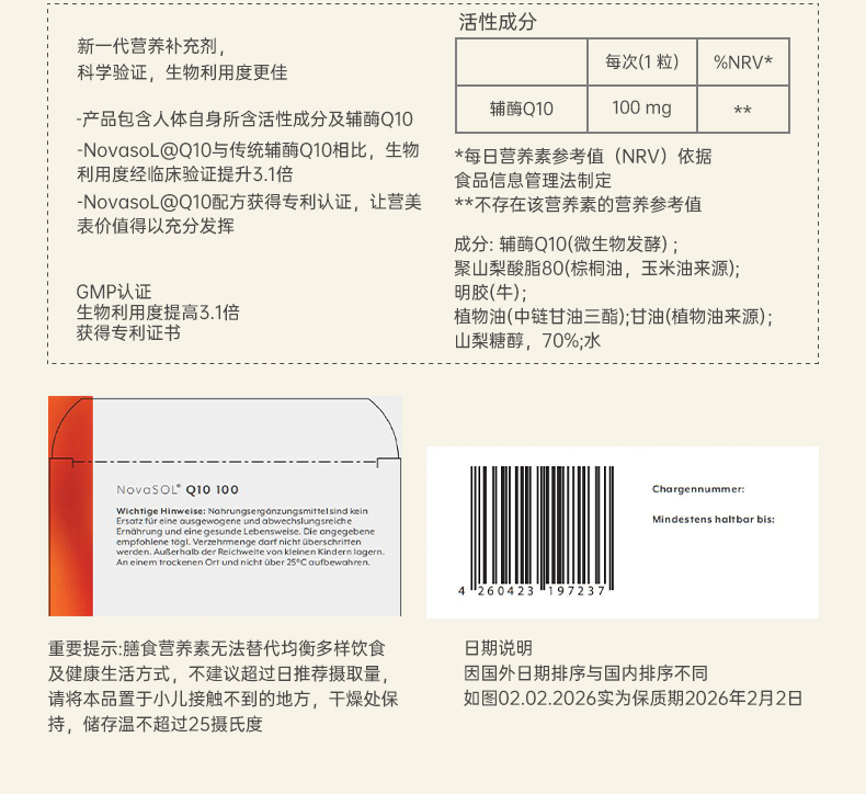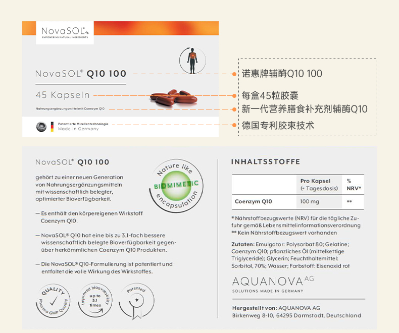 辅酶Q10水溶性软胶囊NovaSOL德国原装进口护心脏心肌100mg辅酶q100