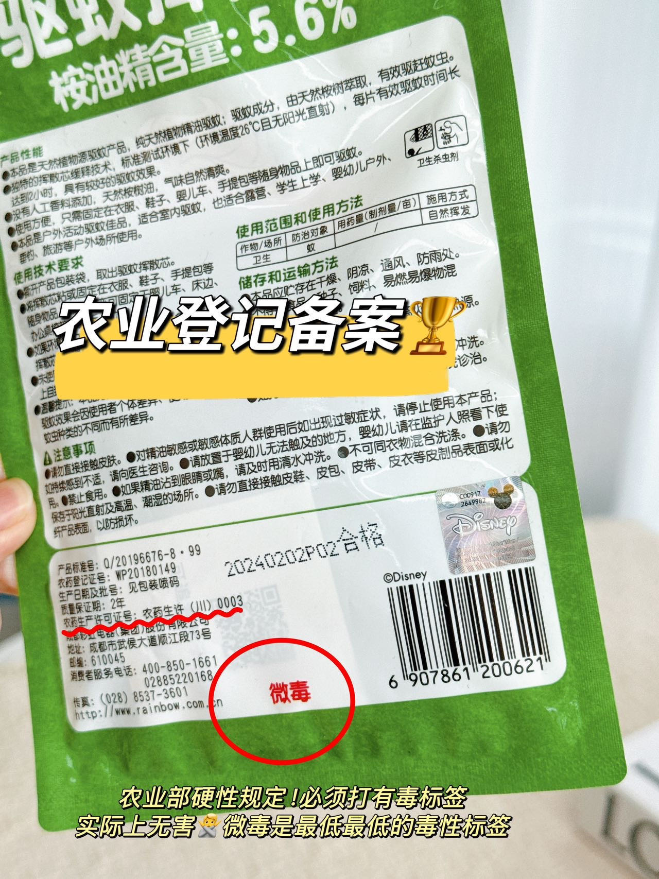 ⚠️驱蚊贴通过了中国农业部驱蚊实验测试报告,并且颁有国内唯一一张农业登记备案证