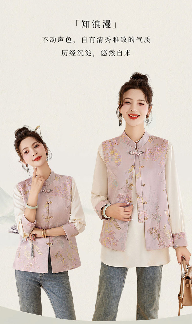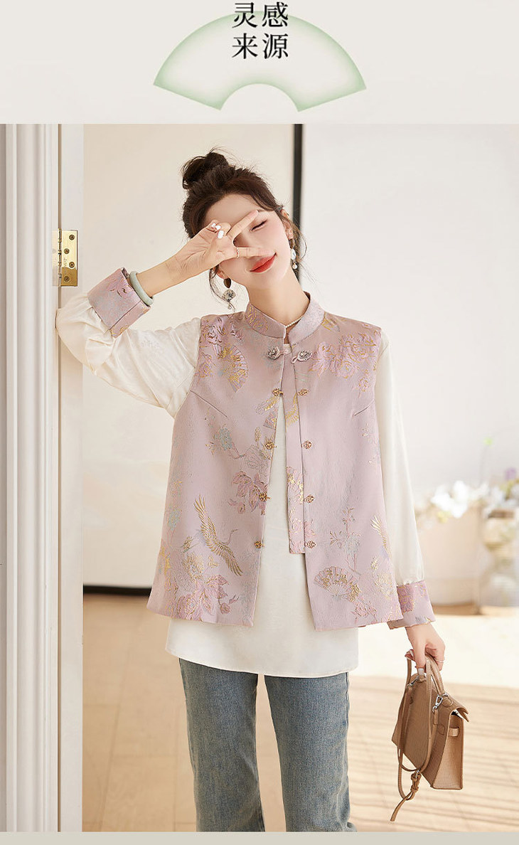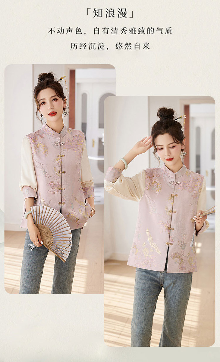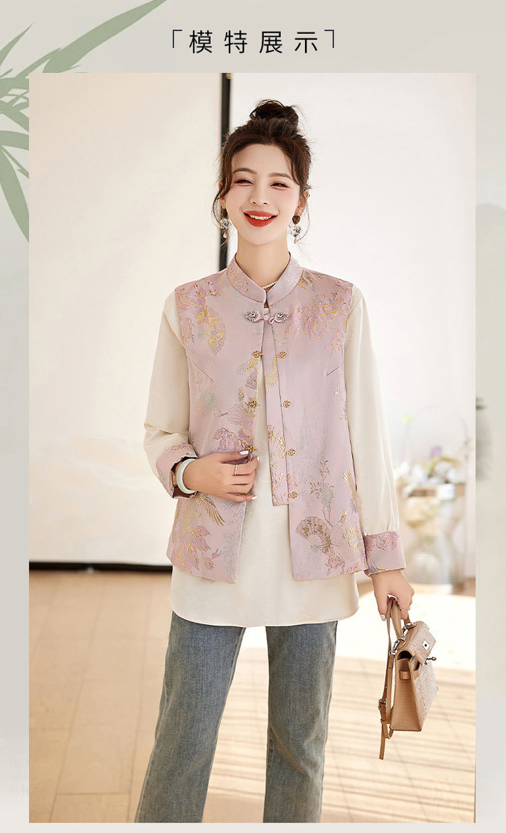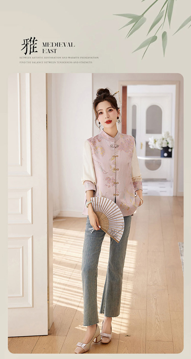 春上新气质时尚轻奢新中式风遮肉显瘦提花马甲小衫两件套HR-WY62359