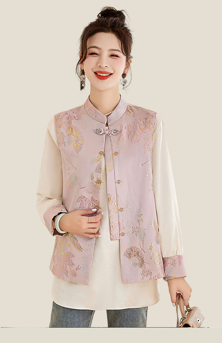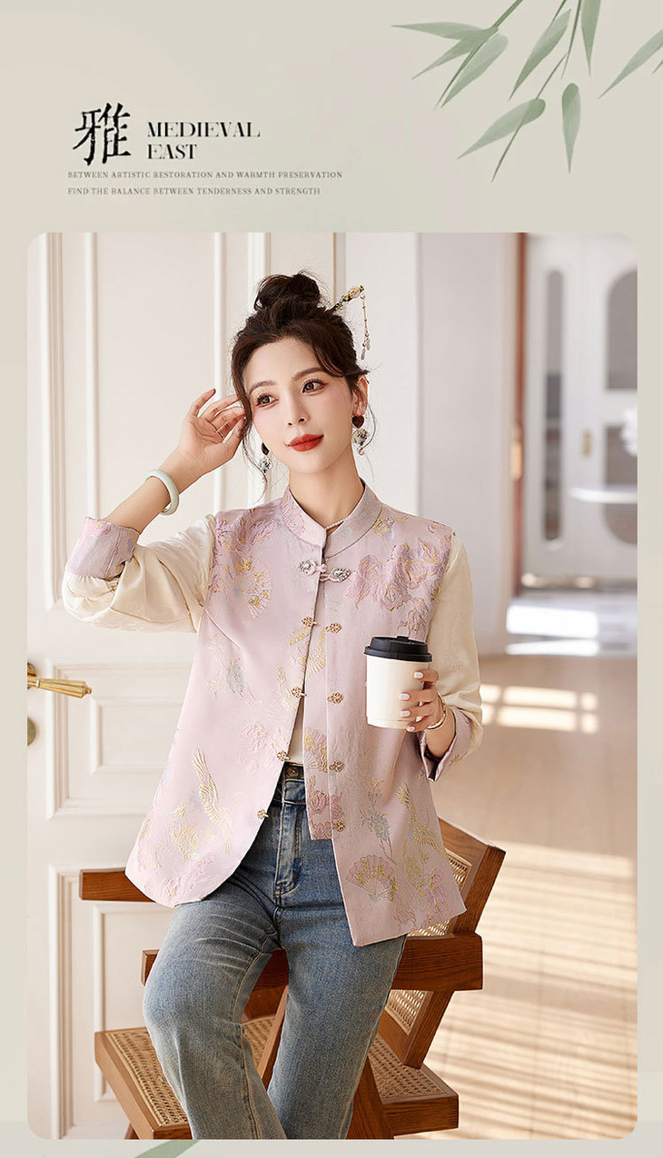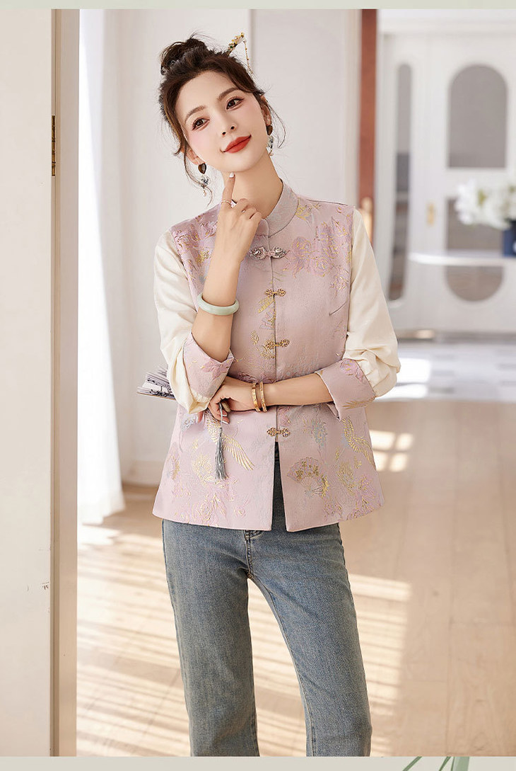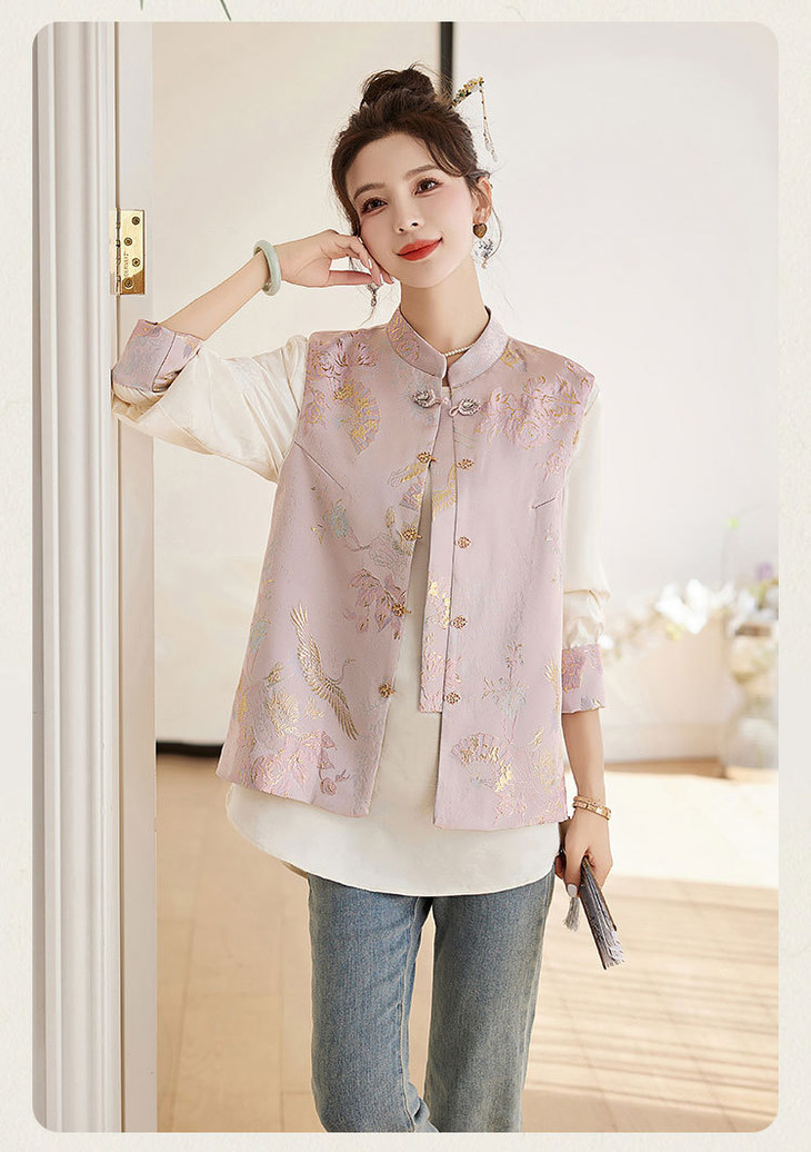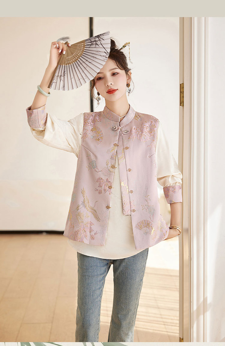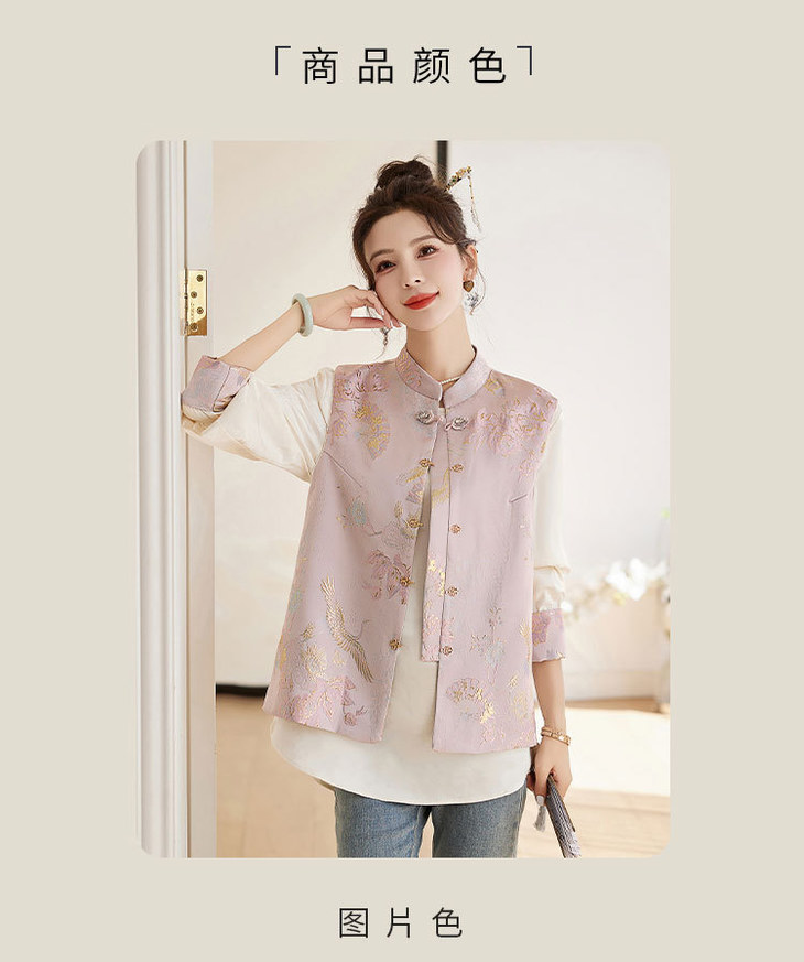 春上新气质时尚轻奢新中式风遮肉显瘦提花马甲小衫两件套HR-WY62359