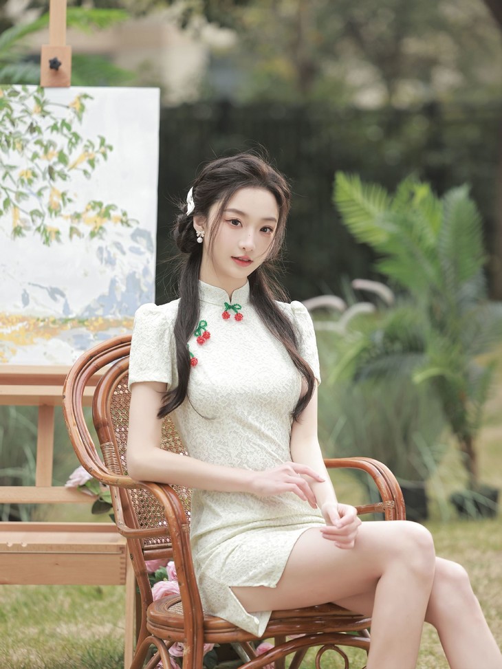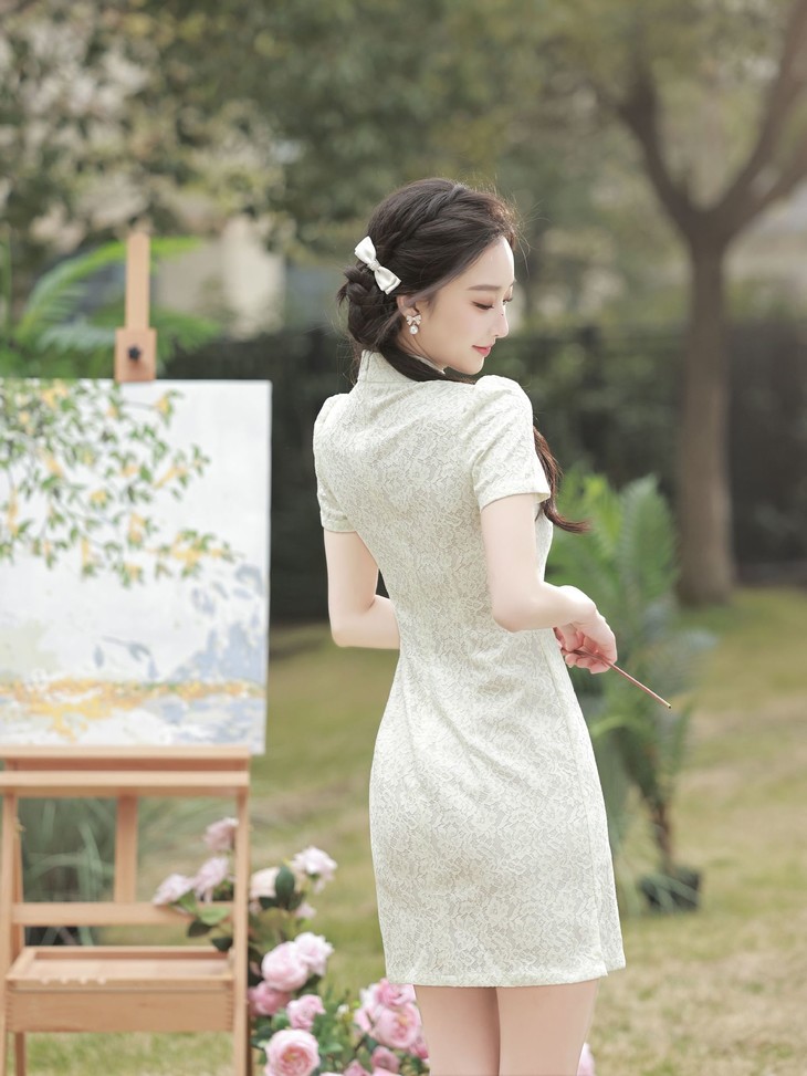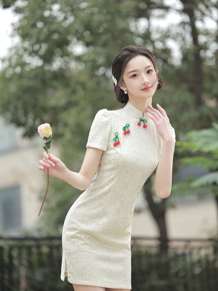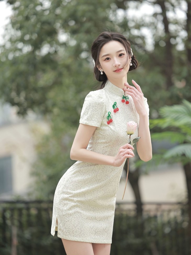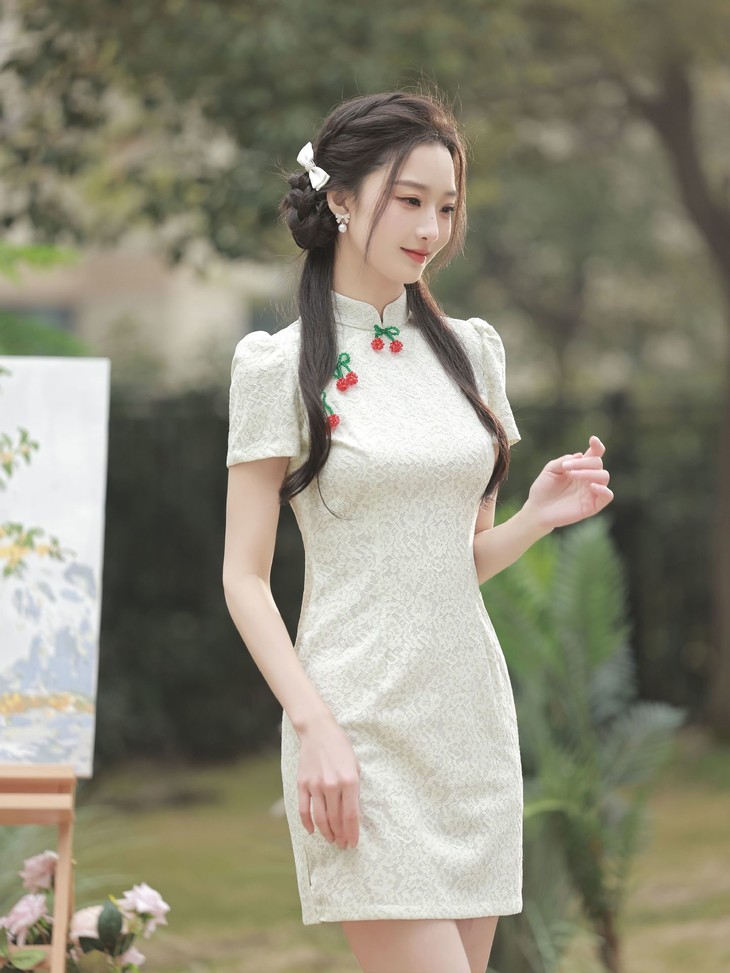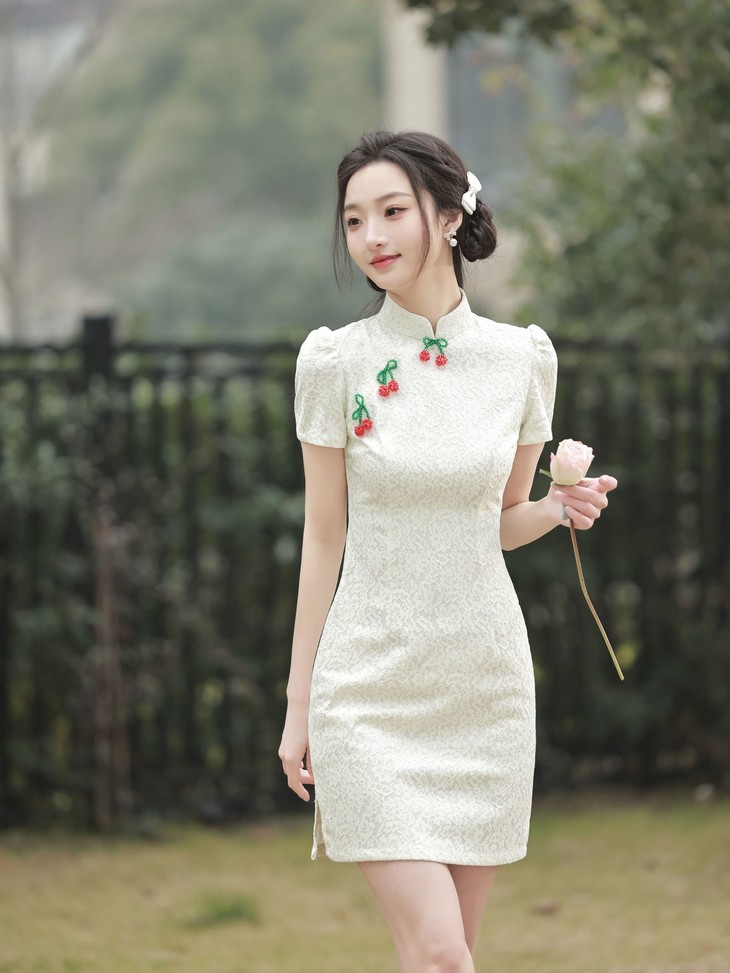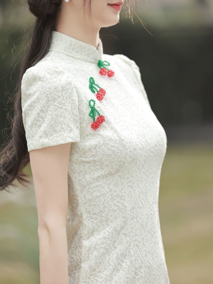 白色小樱桃复合蕾丝旗袍YM2711