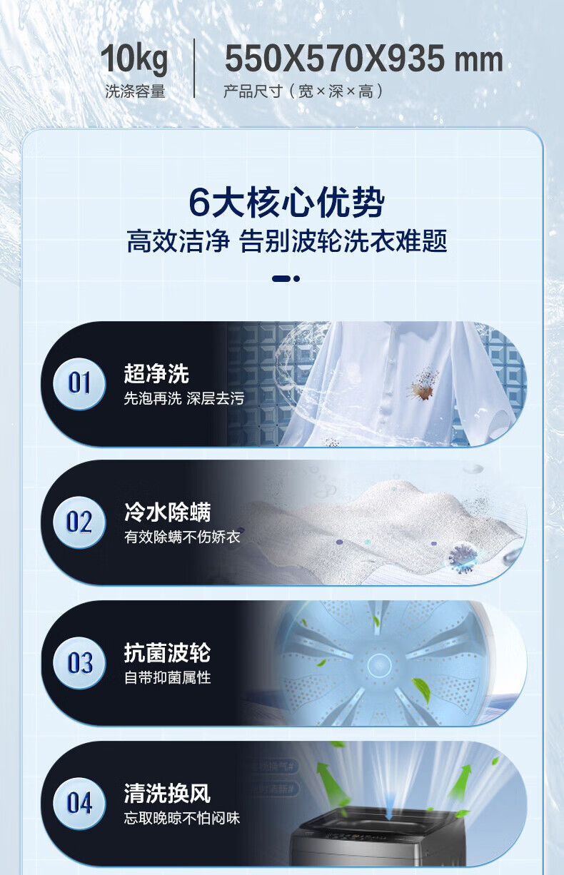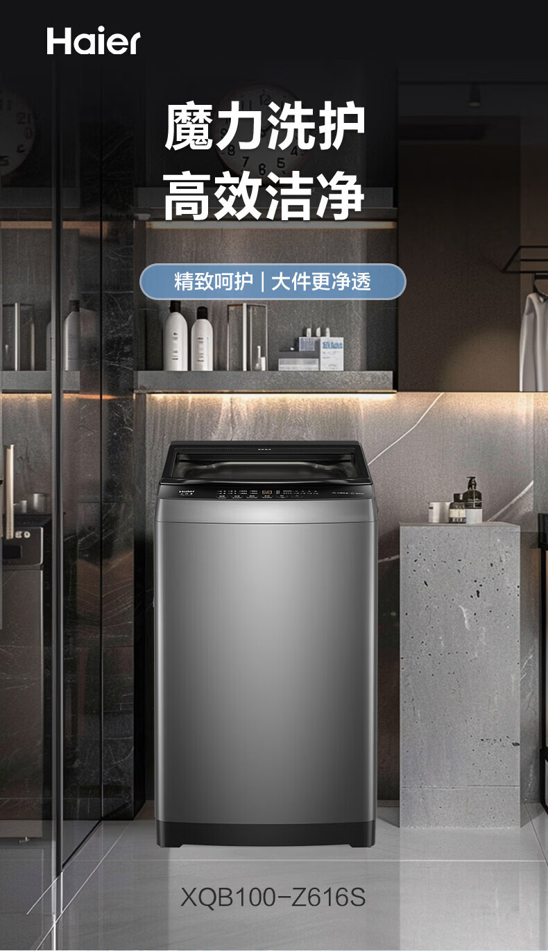 海尔(Haier)全自动10KG波轮大容量超净洗洗脱一体冷水除菌螨家用出租屋租房用波轮洗衣机自编程透明玻璃盖 10KG 波轮XQB100-Z616S