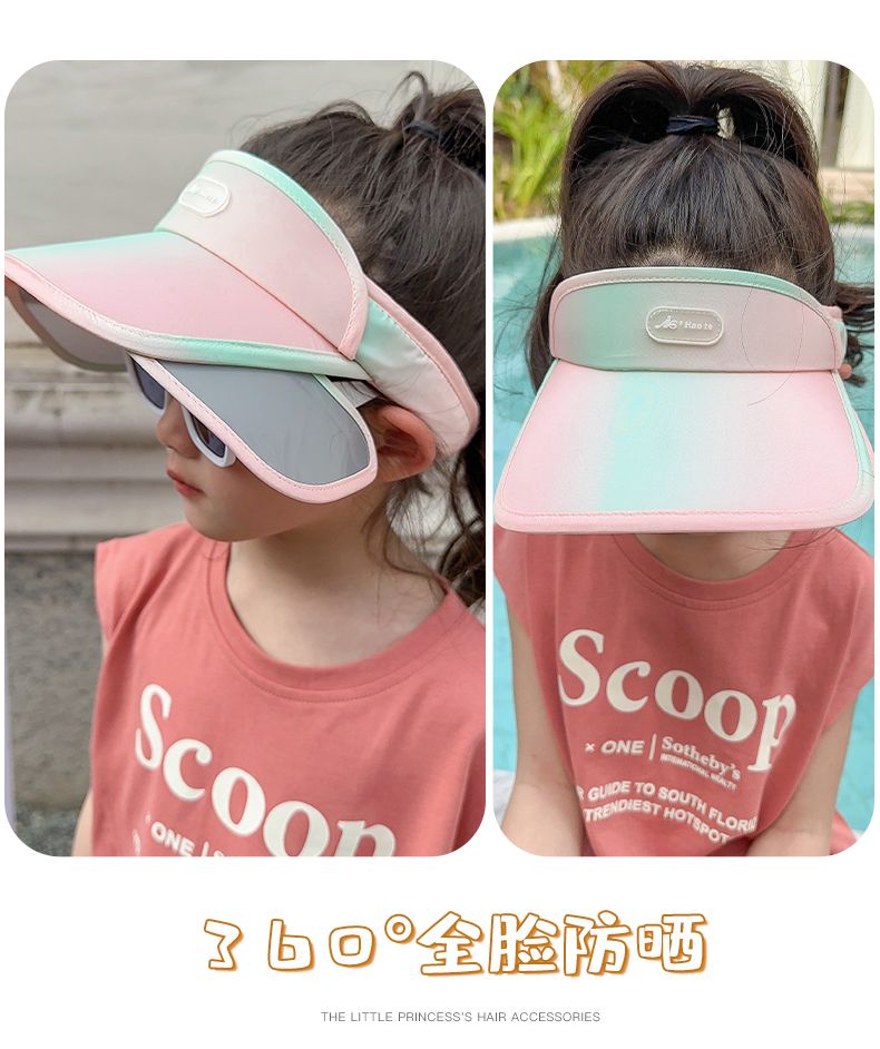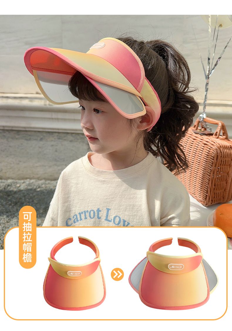 【爆款超低价预售 急单慎拍】儿童空顶防晒帽宝宝遮阳帽夏季度假男女户外渐变防紫外线大檐帽子