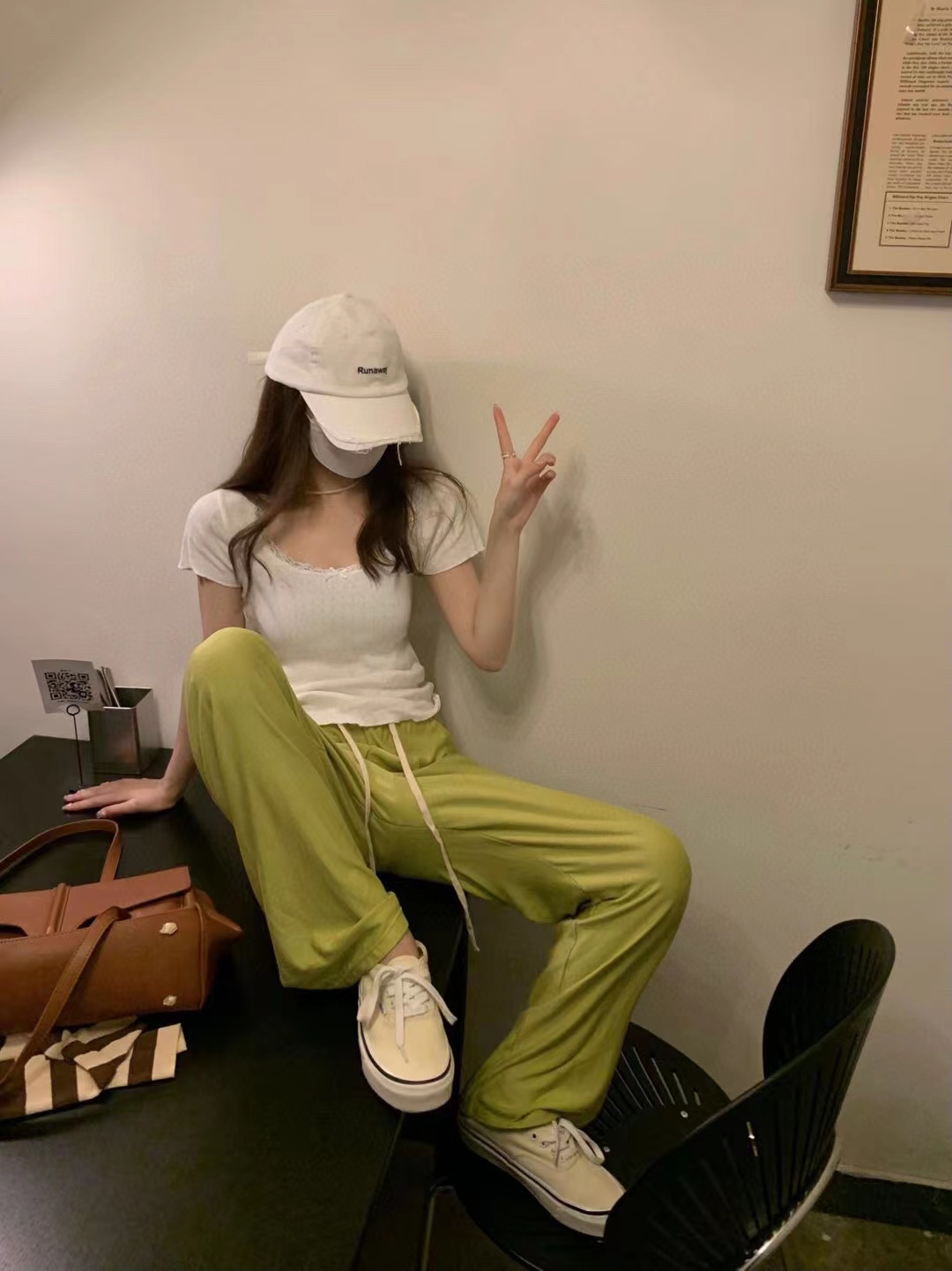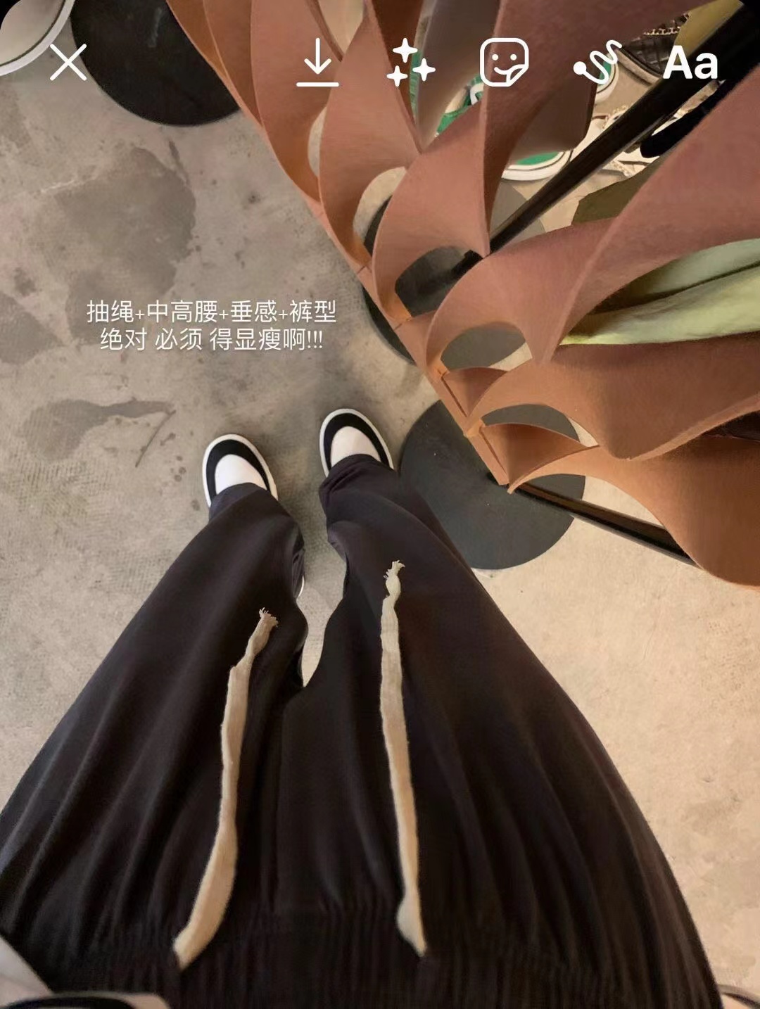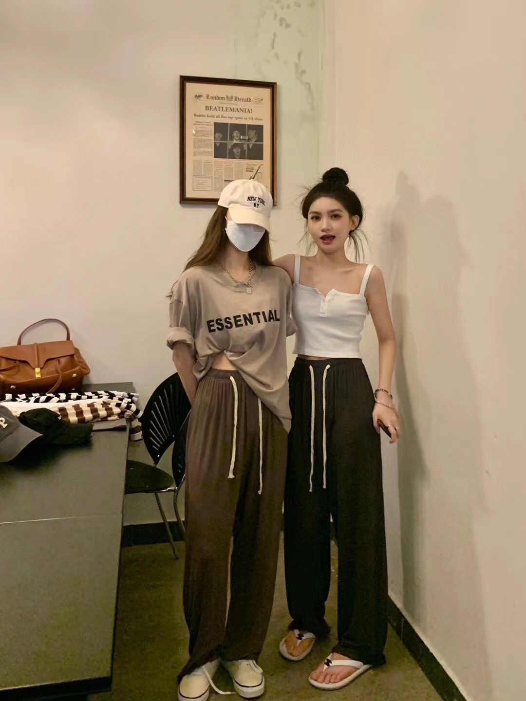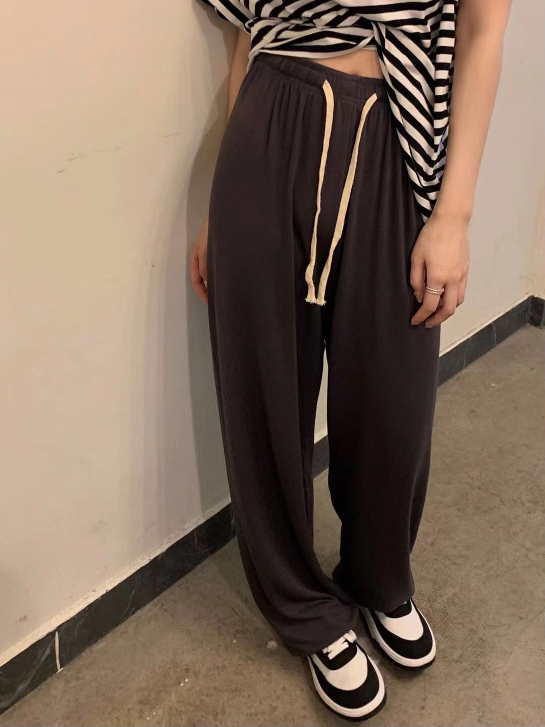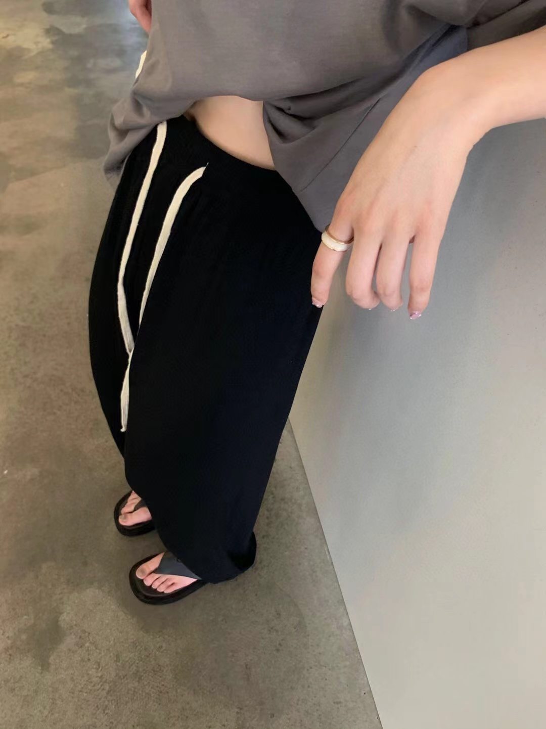 【超显瘦!自带“P”腿效果】韩国2023春秋装款抽绳下摆开叉休闲裤长裤面膜裤直筒裤侧边口袋女