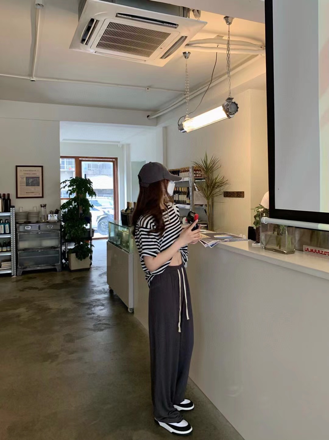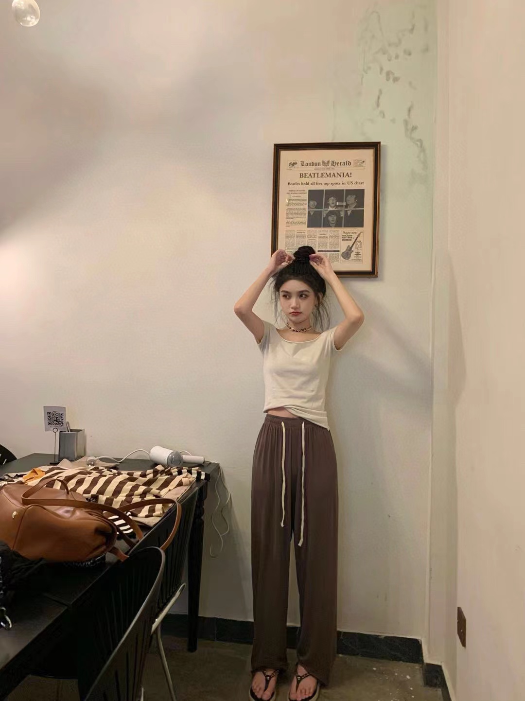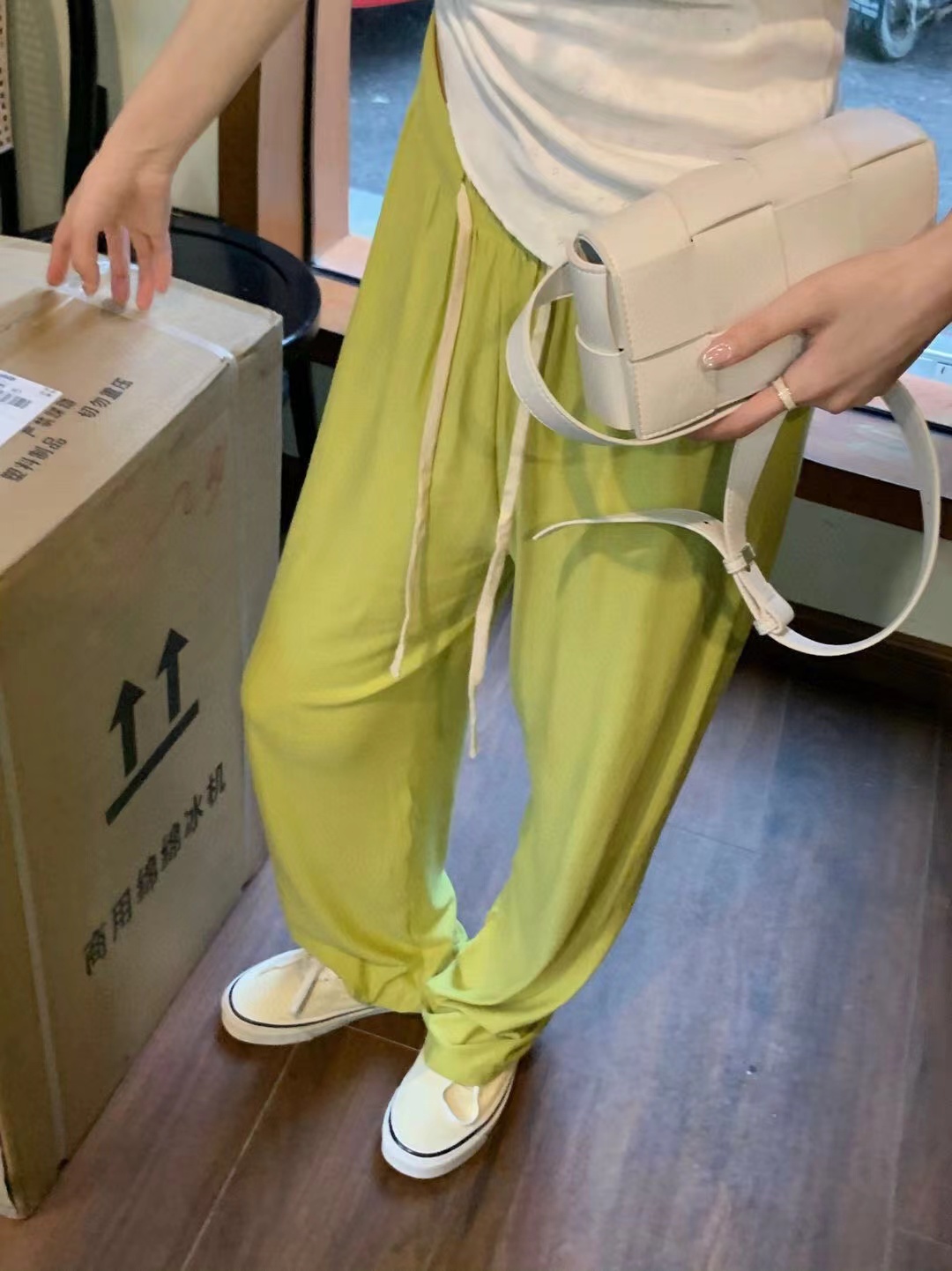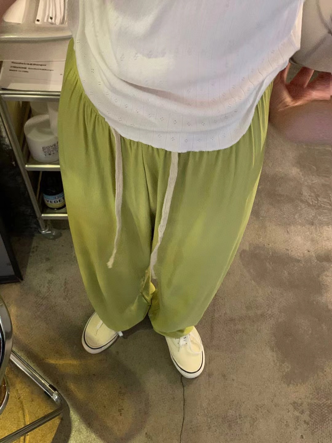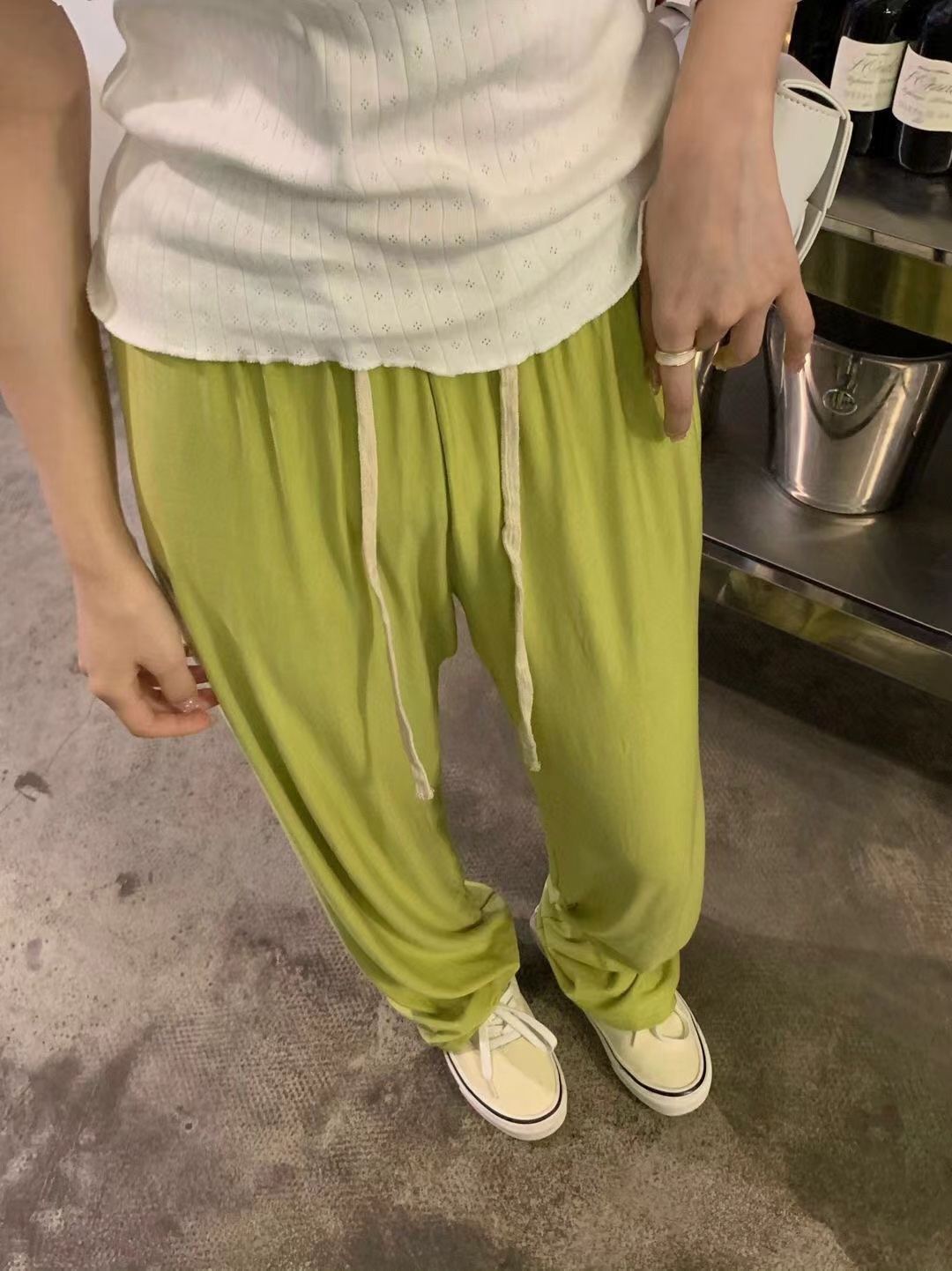 【超显瘦!自带“P”腿效果】韩国2023春秋装款抽绳下摆开叉休闲裤长裤面膜裤直筒裤侧边口袋女