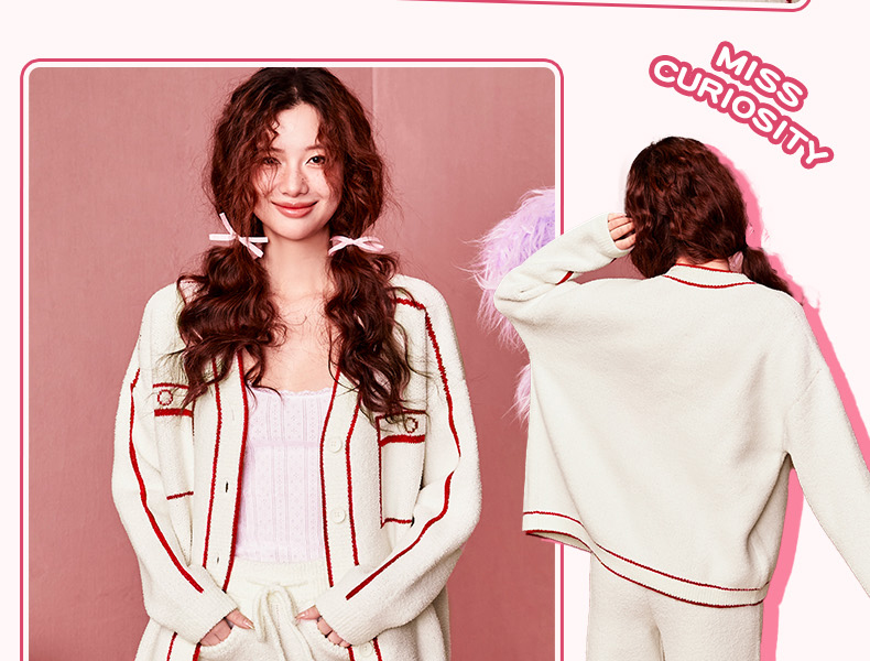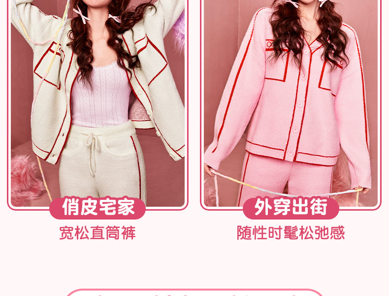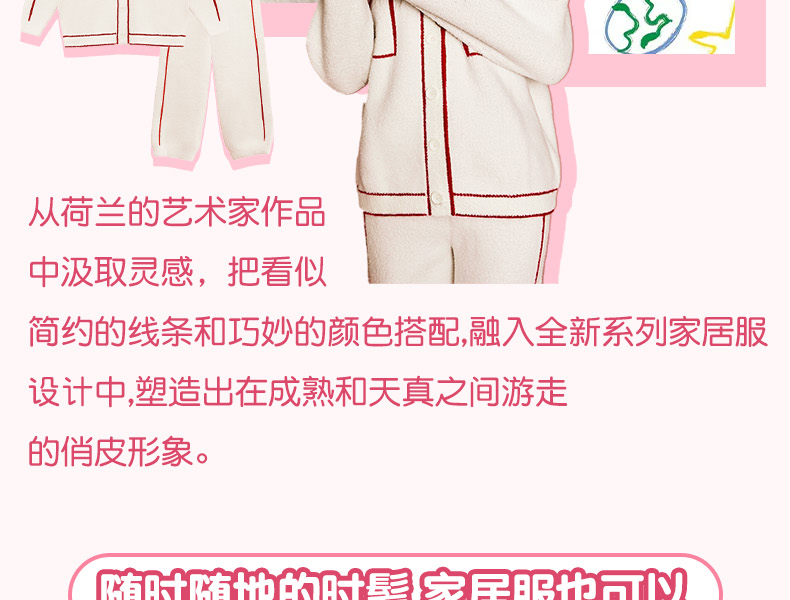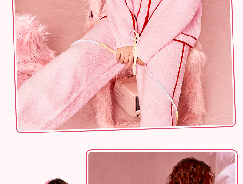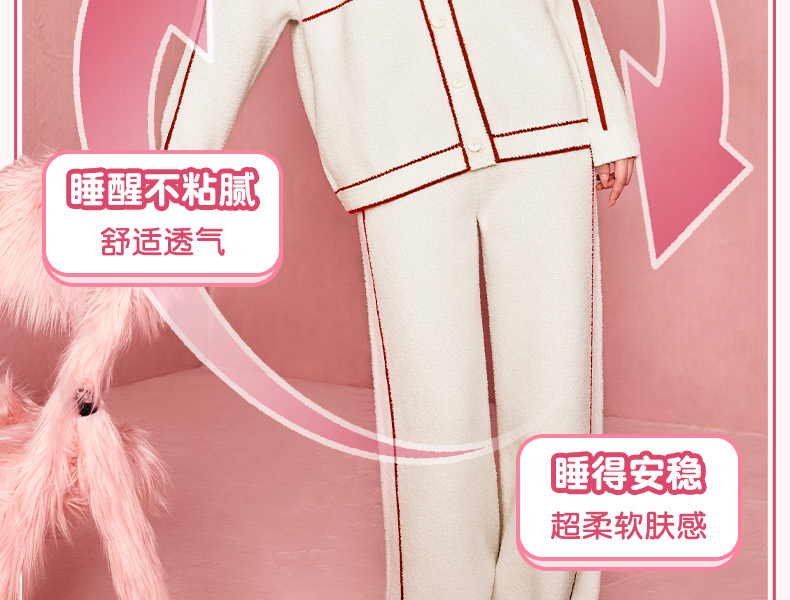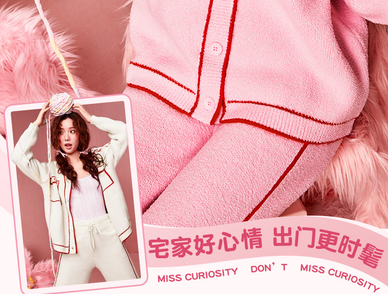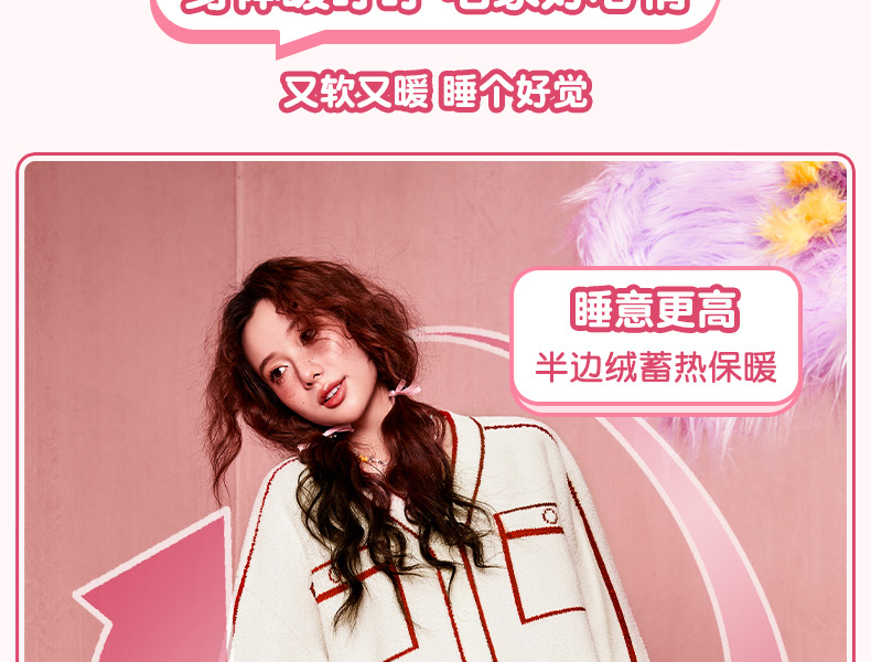 好奇蜜斯半边绒珊瑚绒秋冬家居服套装女可外穿睡衣加绒加厚新款 Danica 丹妮卡