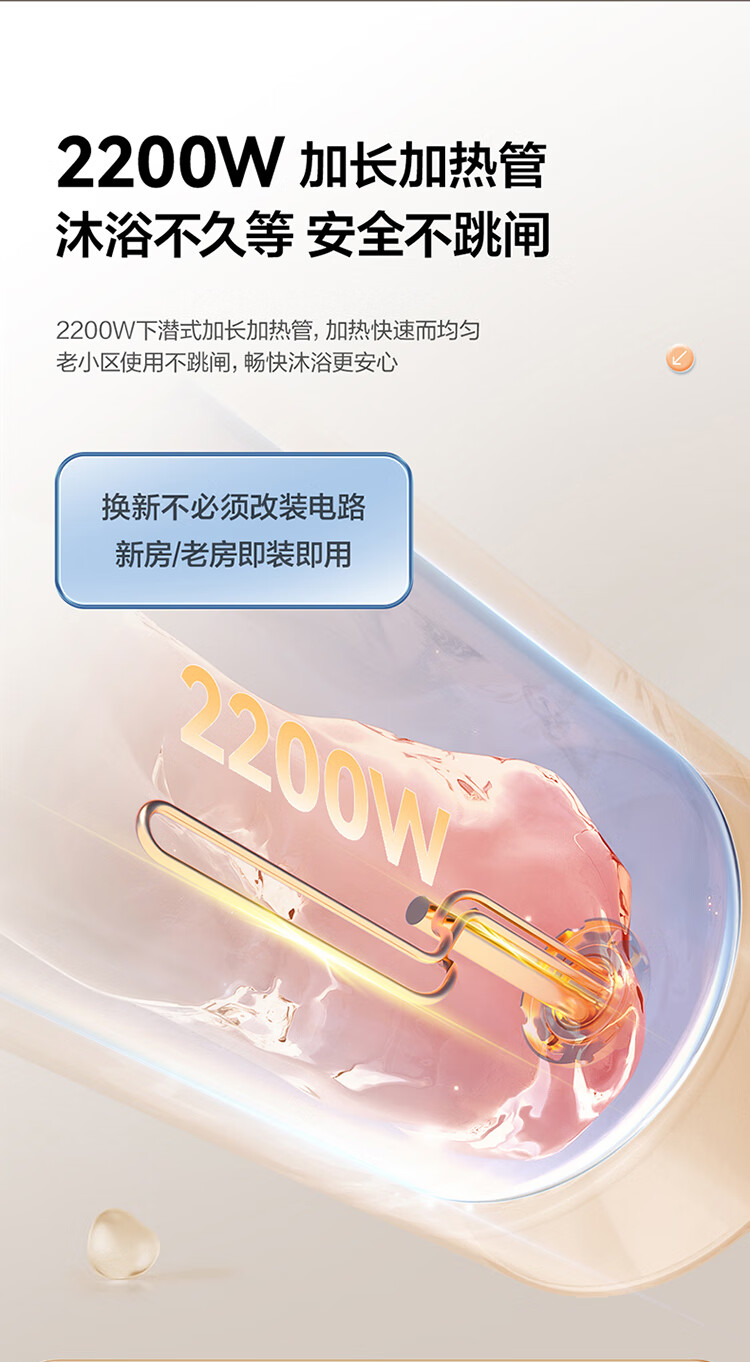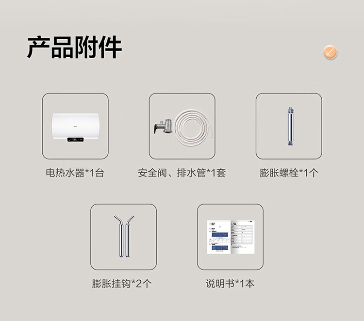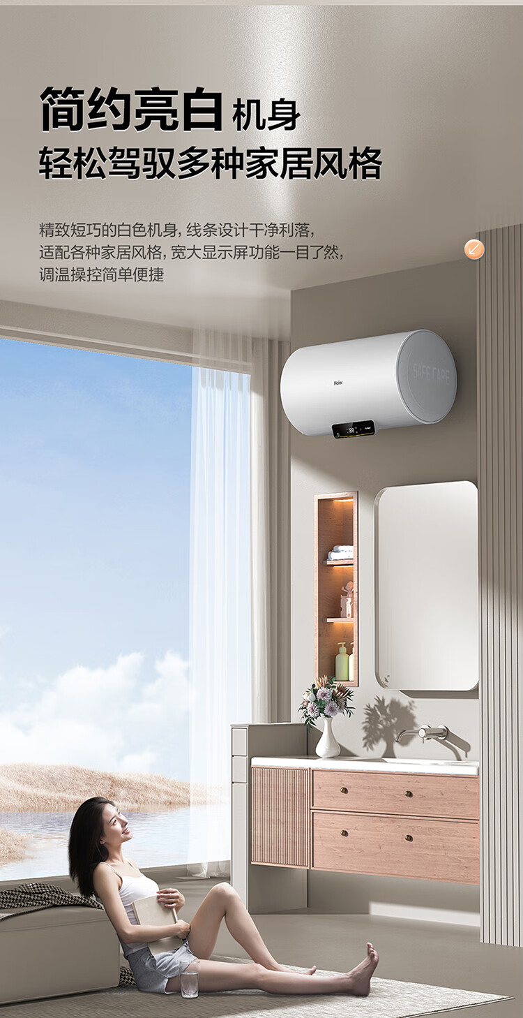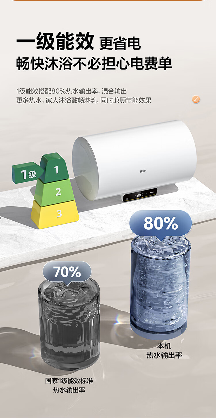 国补到手价 1039 元 海尔60升 电热水器 一级能效 2200W功率速热 EC6001H-JM *